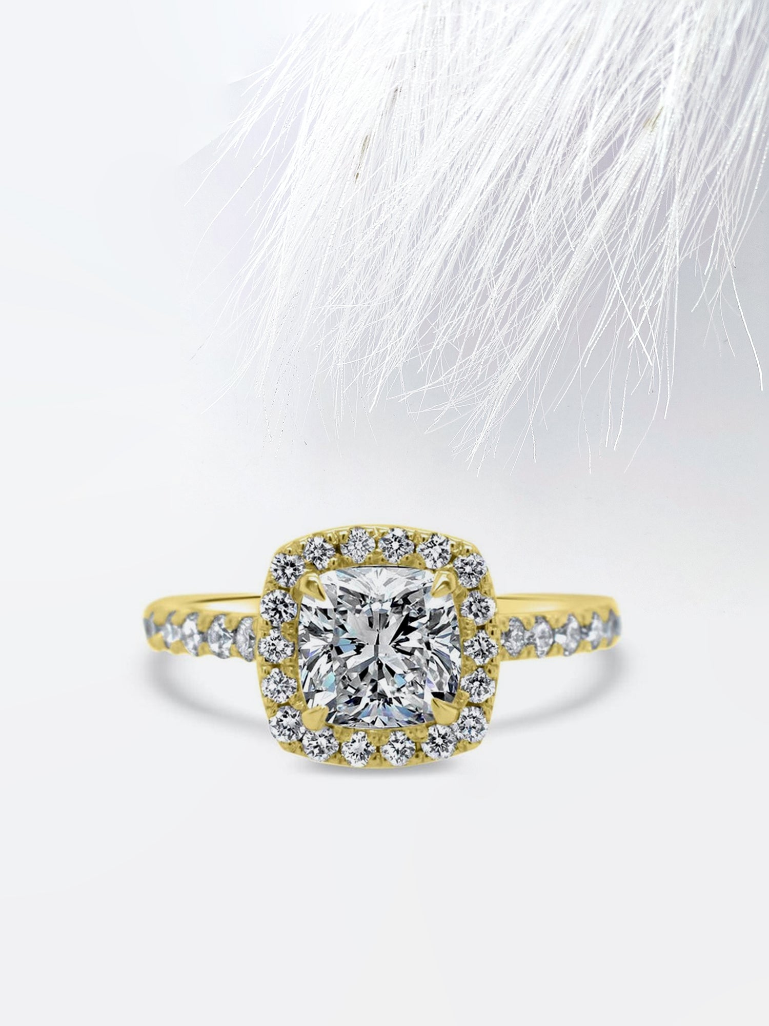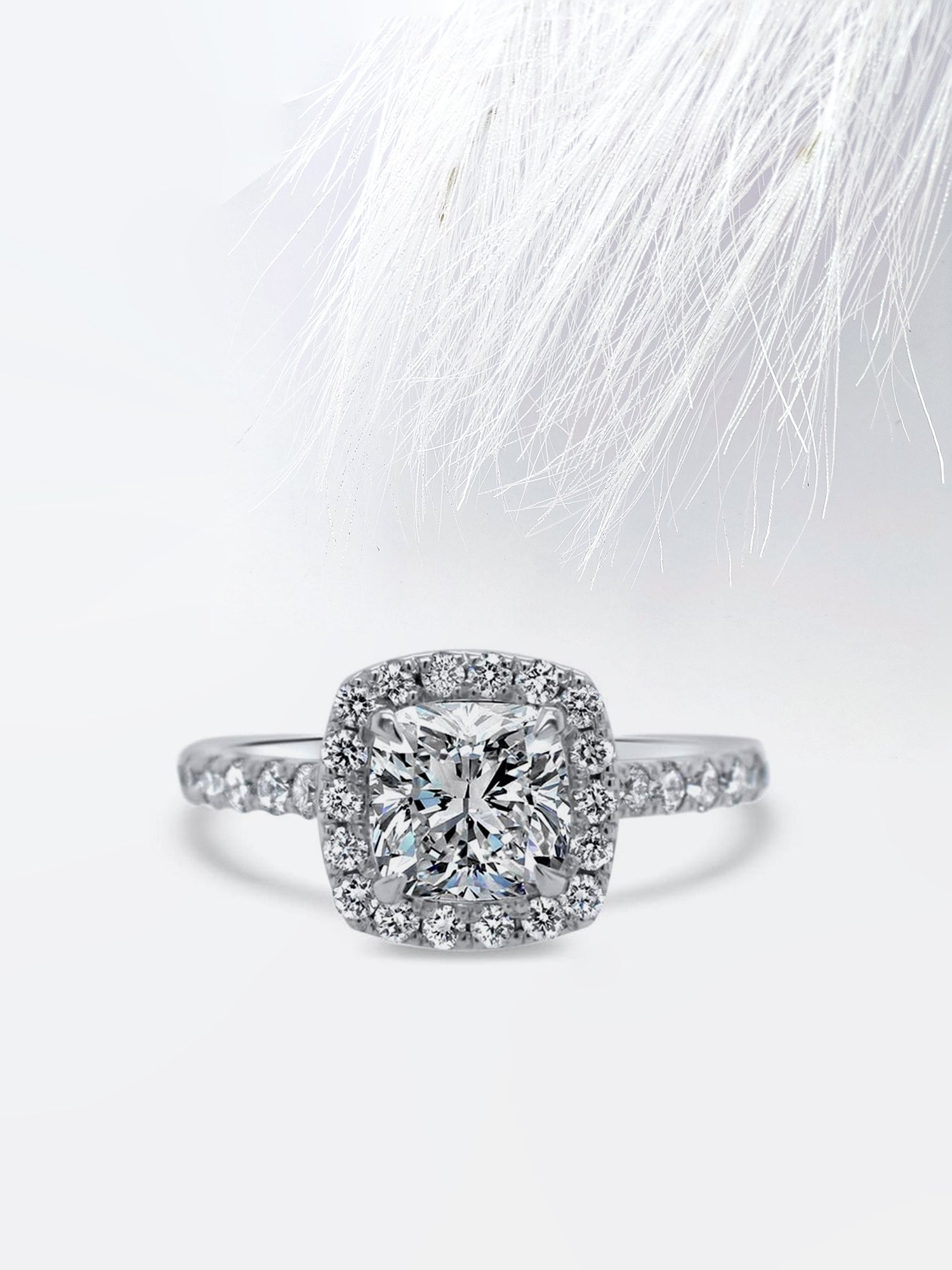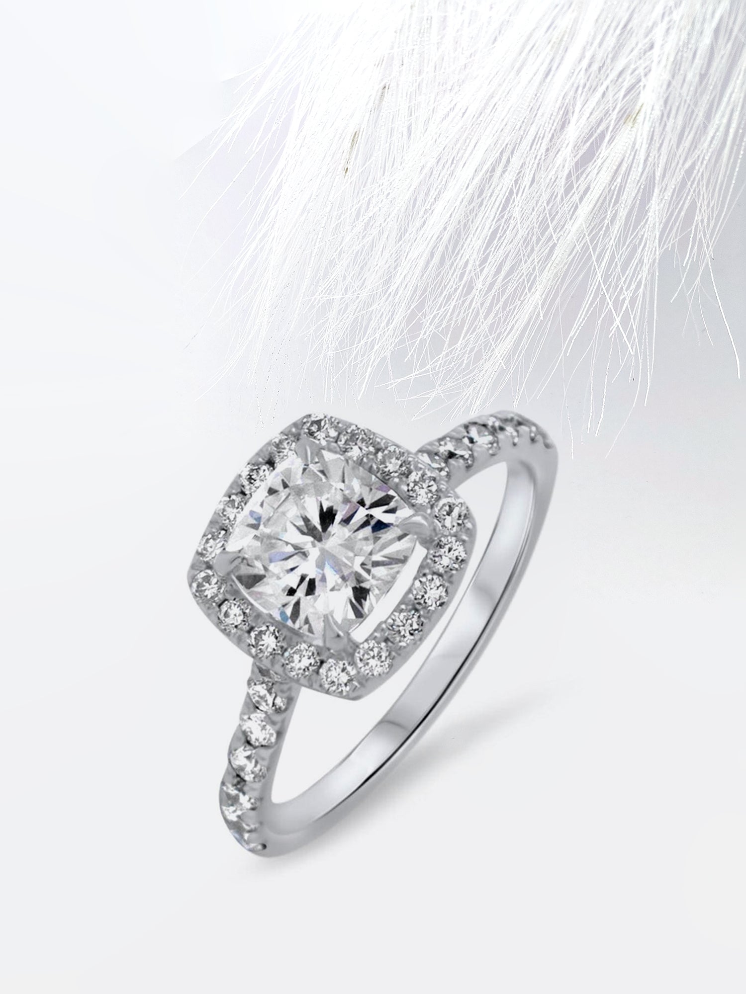 ✥ Elevate the moment she says 'yes' with our exquisite 2.0CT Cushion Cut Halo Moissanite Diamond Engagement Ring. Crafted to captivate. its brilliant center stone. set in a cushion cut. is embraced by a halo of sparkling moissanite diamonds. reflecting timeless elegance. Meticulously designed for the modern romantic. this ring exudes luxury and sophistication. symbolizing eternal love and commitment. With its dazzling allure and unparalleled craftsmanship. it's the perfect embodiment of your devotion and the promise of forever.