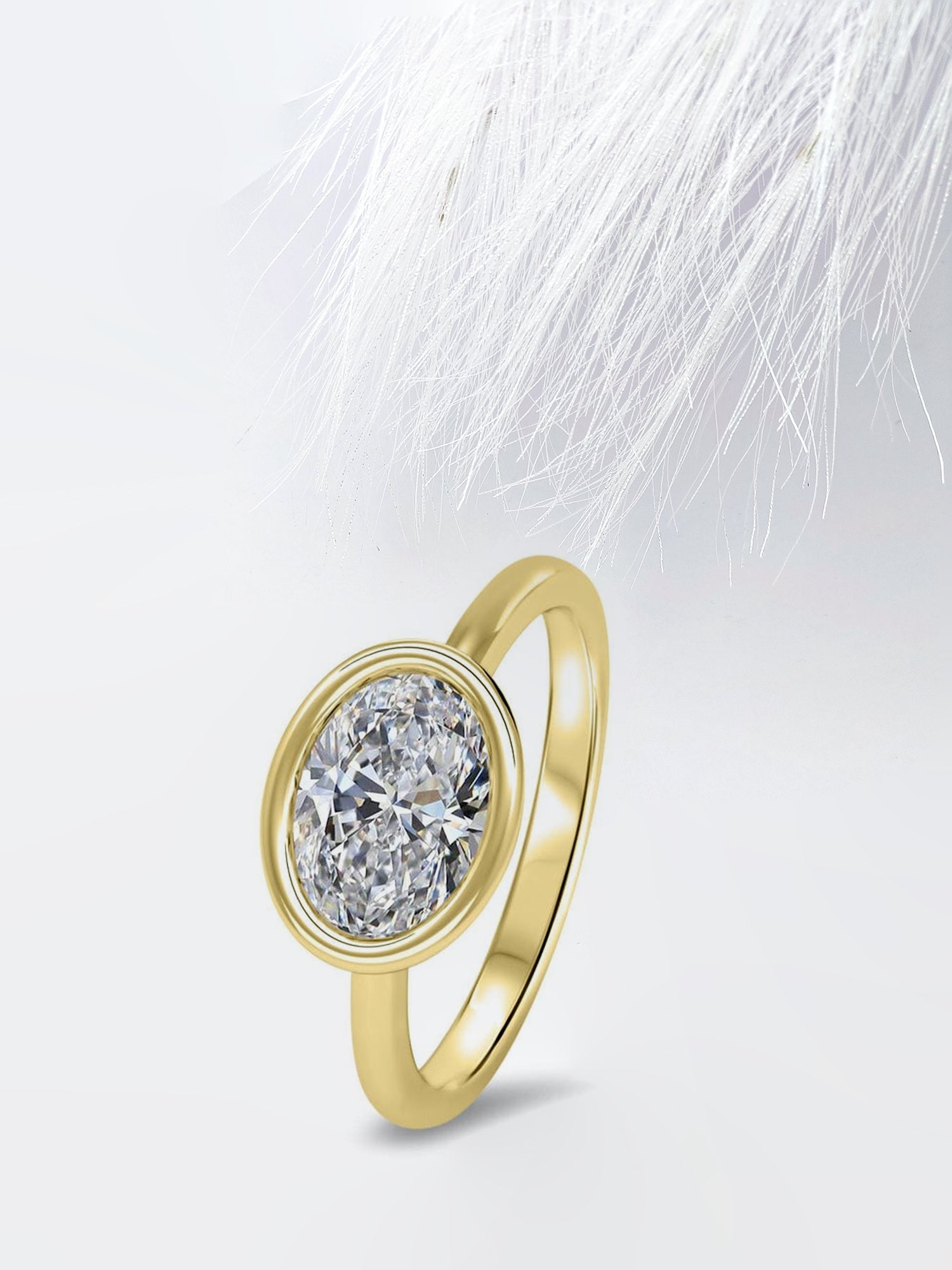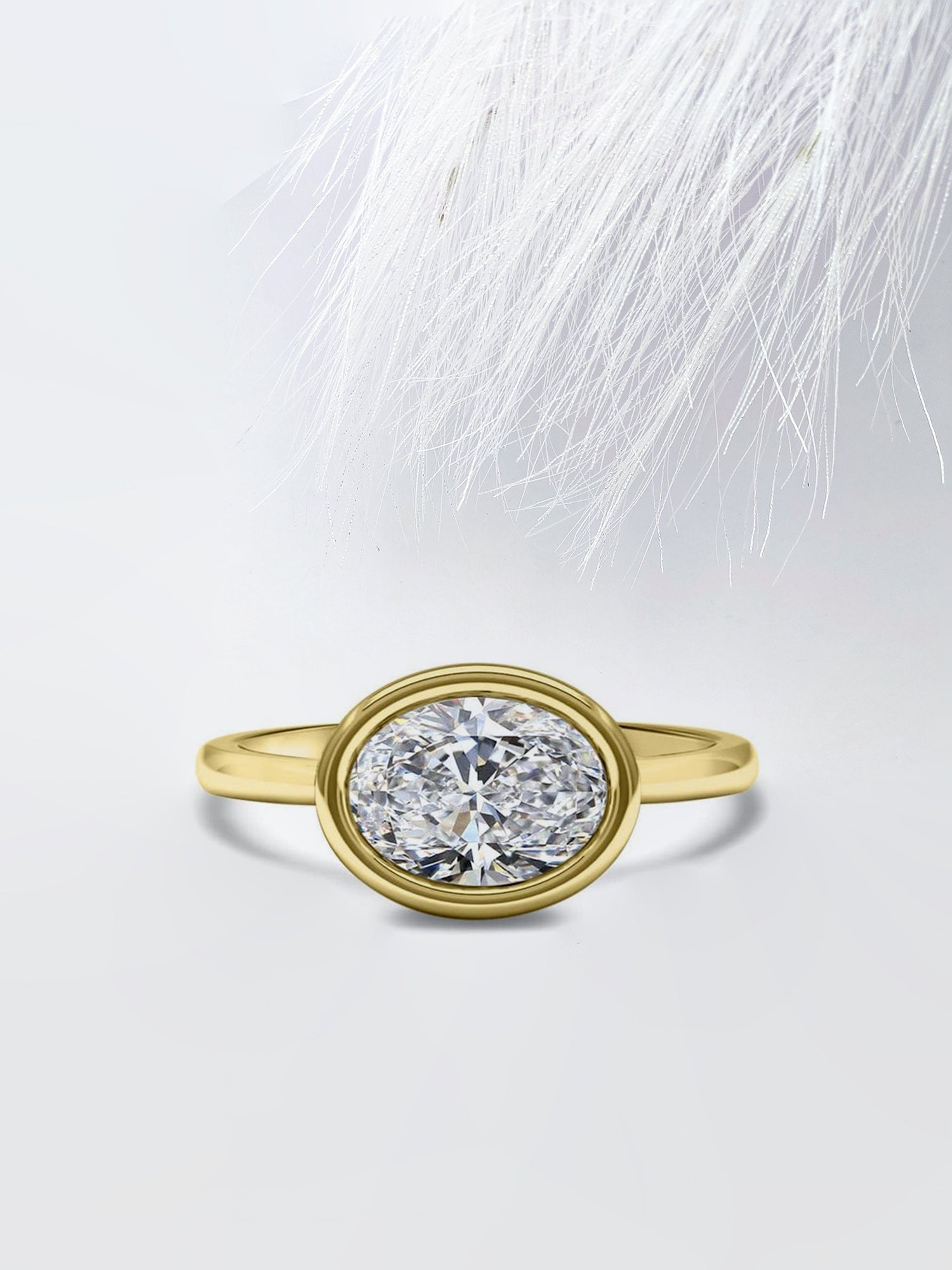 ✥ Introducing our captivating 2.0CT East West Oval Cut Bezel Moissanite Diamond Engagement Ring. a modern interpretation of timeless elegance crafted to signify your enduring love. This exquisite ring features a dazzling oval-cut center stone set horizontally. creating a chic and contemporary silhouette. Encased within a sleek bezel setting. the brilliance of the moissanite diamond shines brightly. symbolizing the depth of your commitment. Meticulously designed for the modern woman. its clean lines and sophisticated design promise a lifetime of cherished moments and unwavering devotion. Embrace the beauty of your unique love story with this enchanting piece. marking the beginning of your journey together with grace and style.