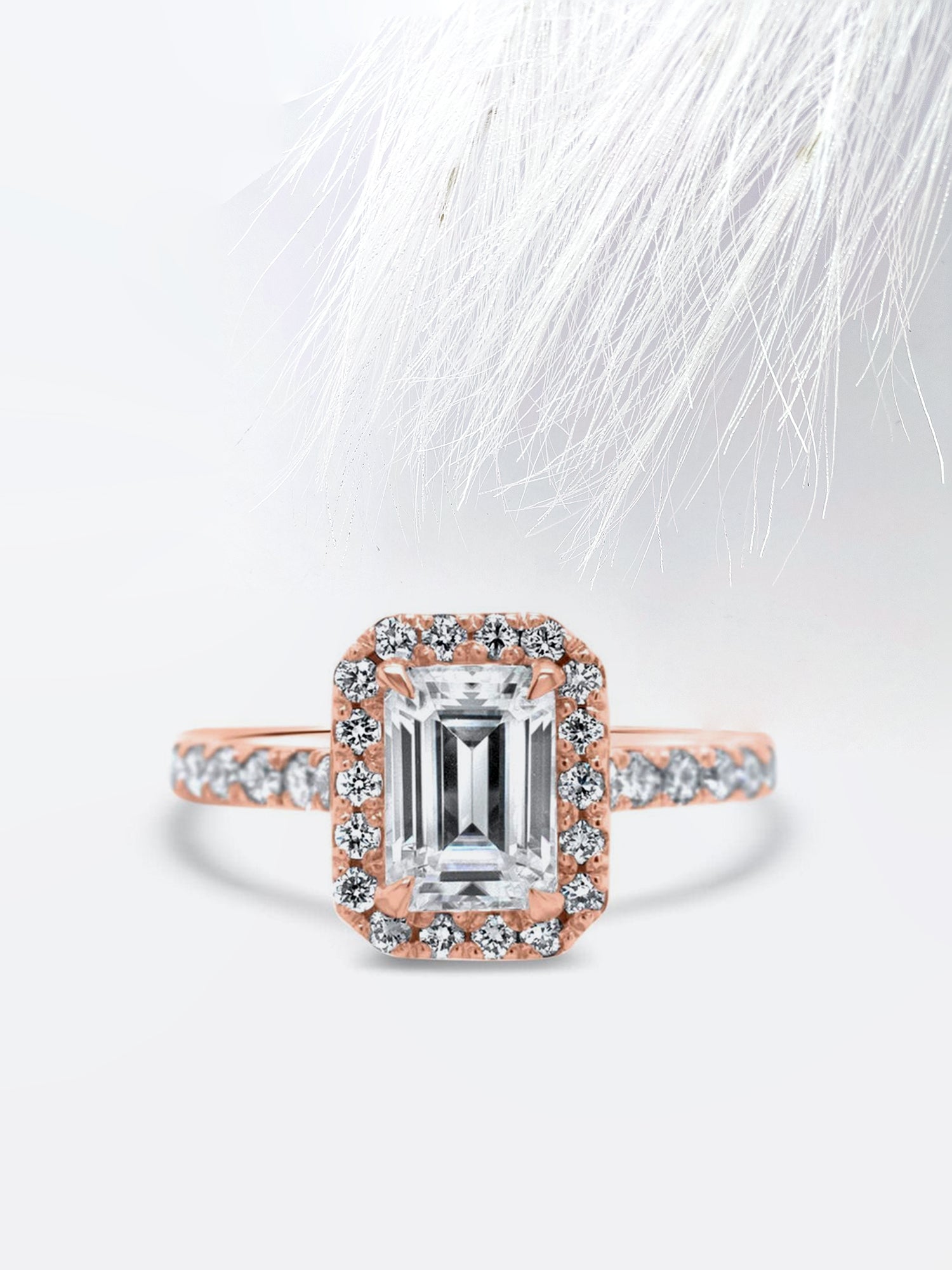 ✥ Introducing our mesmerizing 2.0CT Emerald Cut Halo Moissanite Diamond Engagement Ring. a radiant symbol of everlasting love. This stunning piece features a captivating emerald-cut center stone. surrounded by a halo of shimmering Moissanite diamonds. exuding elegance and sophistication. Meticulously crafted for her discerning taste. this ring embodies timeless beauty and modern allure. promising a lifetime of cherished moments and enduring devotion. Make her heart skip a beat with this exquisite expression of your eternal commitment.