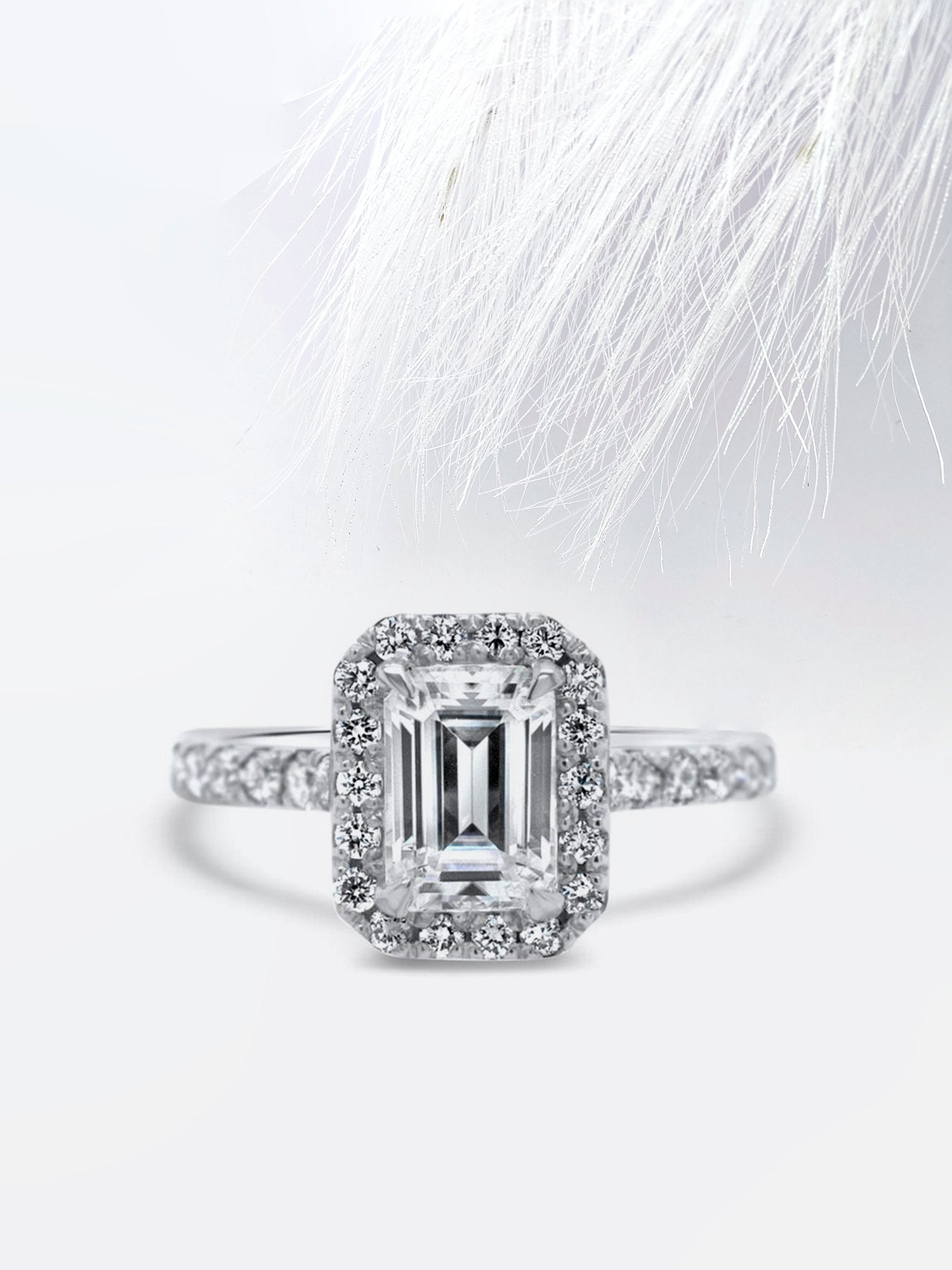 2.0CT Emerald Cut Halo Moissanite Diamond Engagement Ring For Her