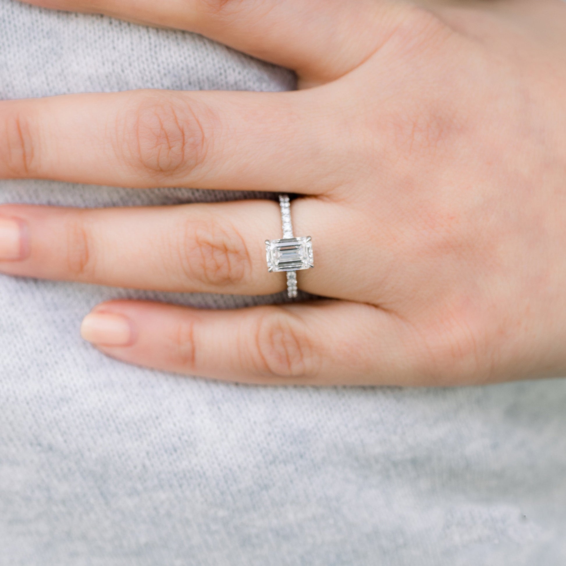 2.0CT Emerald Cut Moissanite Classic Pave Diamond Engagement Ring