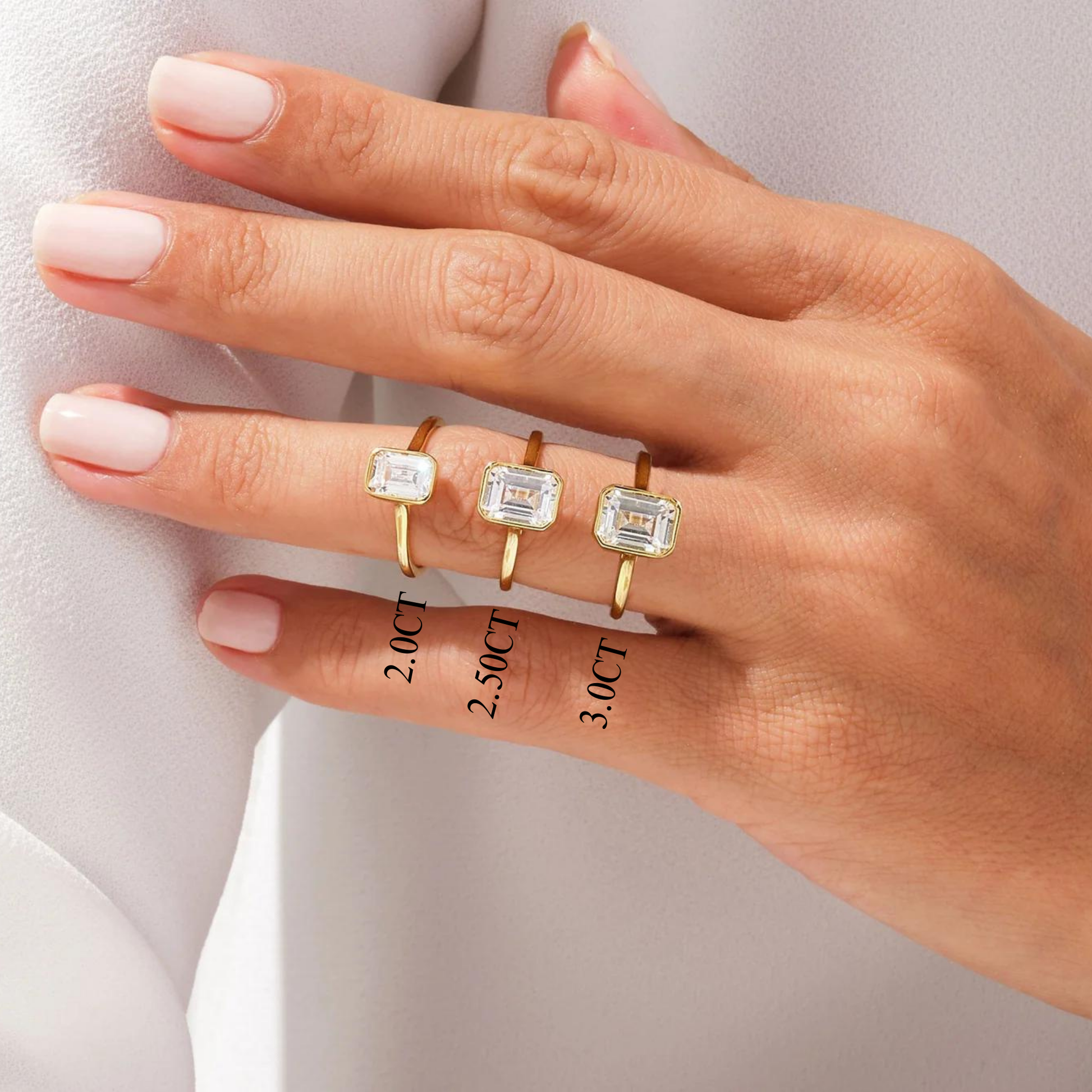 2.0CT Emerald Diamond Bezel Setting Solitaire Moissanite Engagement Ring
