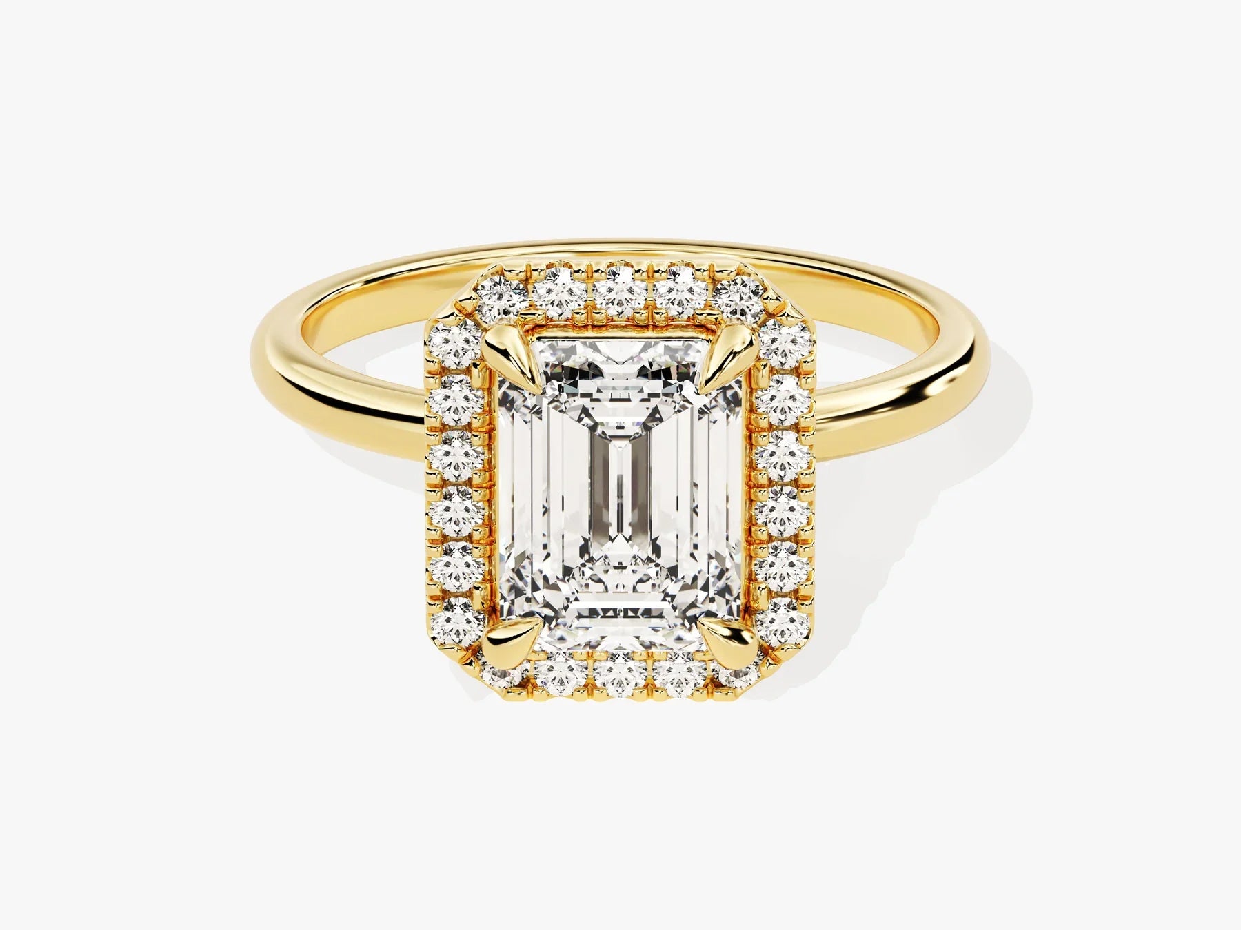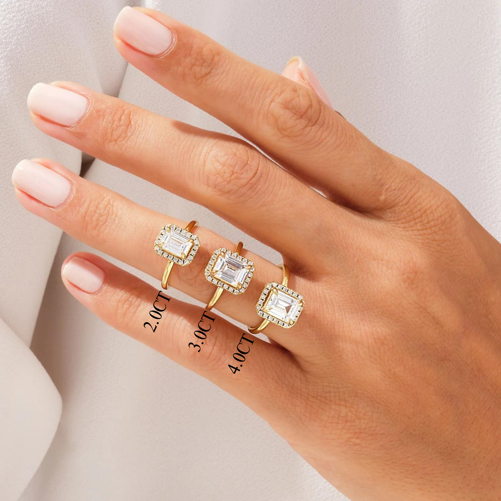 2.0CT Emerald Diamond Halo Moissanite Engagement Ring