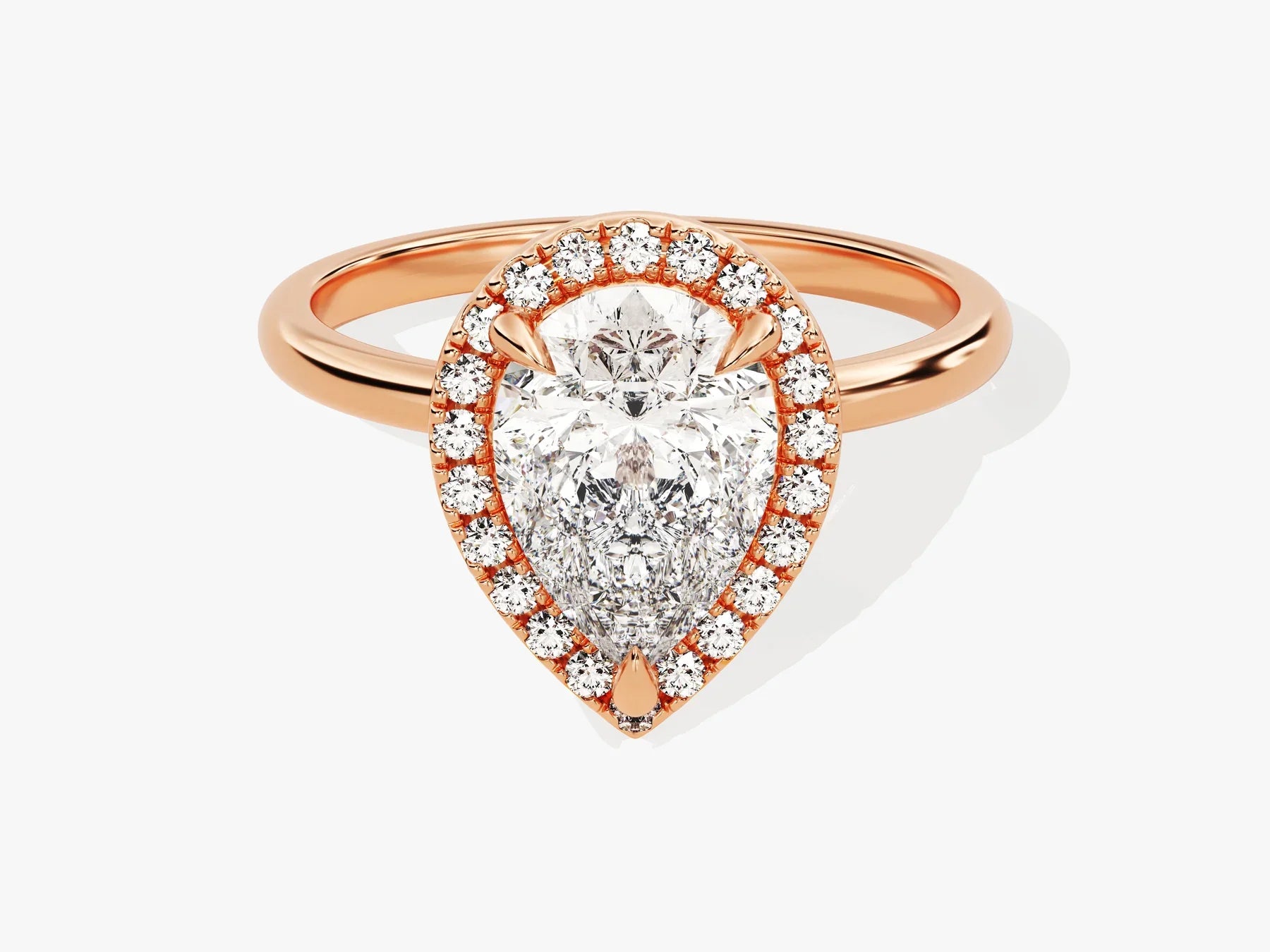 2.0CT Pear Diamond Halo Moissanite Engagement Ring