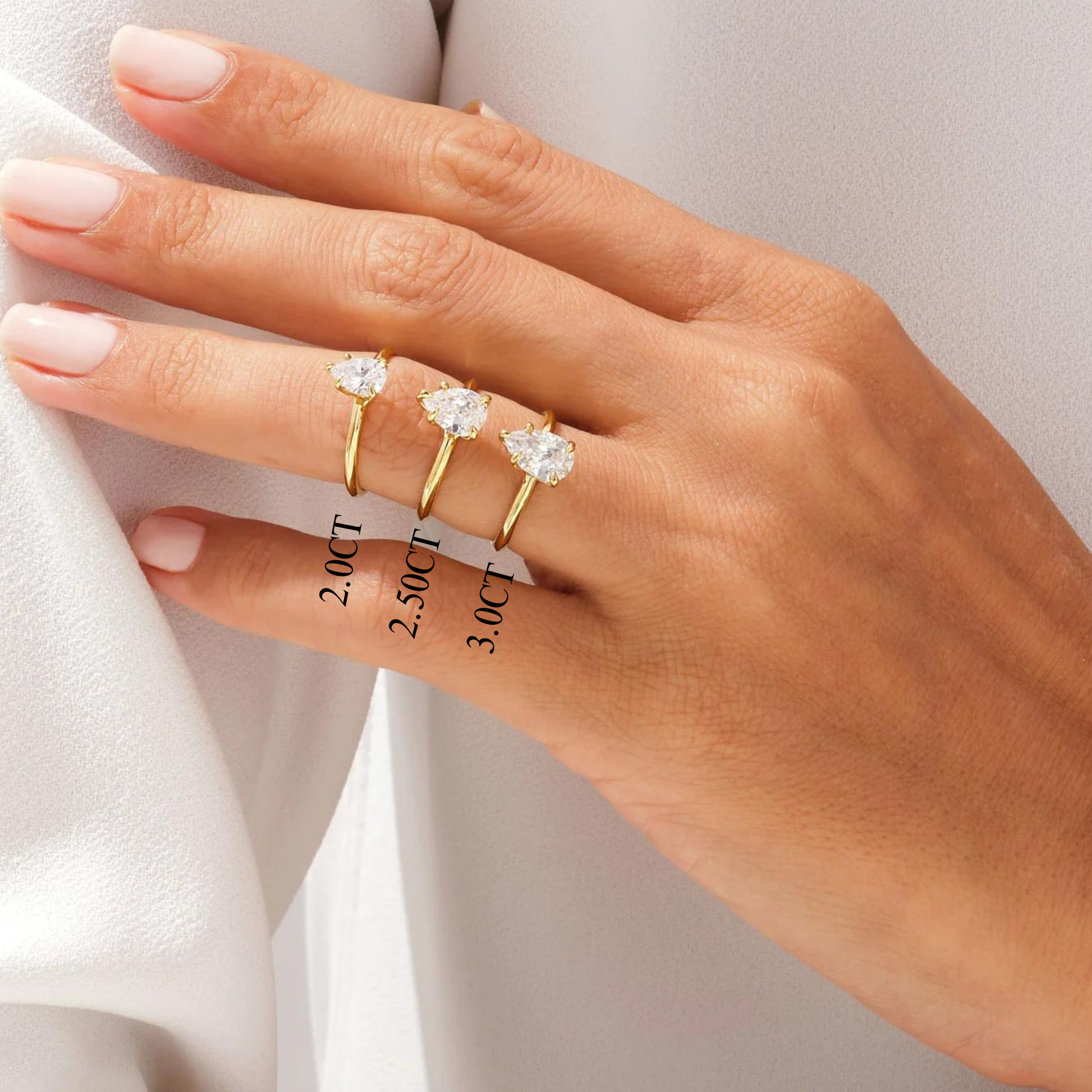 2.0CT Pear Diamond Kinfe Edge Solitaire Moissanite Engagement Ring