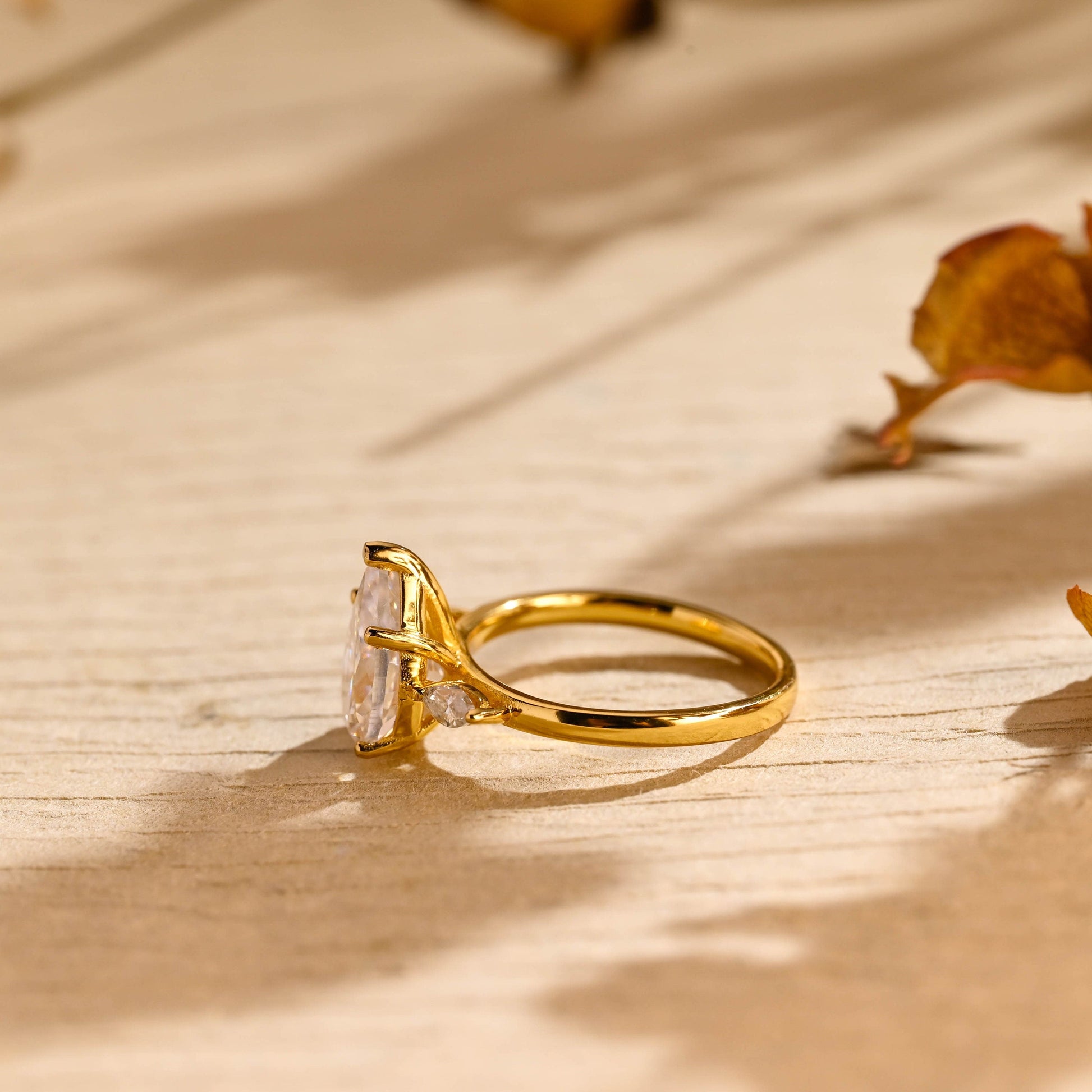 ✥The 2.0 CT Pear Diamond Three Stone Moissanite Engagement Ring features a stunning pear-shaped moissanite as the focal point. flanked by two sparkling diamonds on either side. This three-stone design symbolizes the past. present. and future of a love story. offering a timeless yet modern feel. The diamonds enhance the brilliance of the center stone. creating a dazzling display of light and fire. Set in high-quality metal. this ring is the perfect choice for those who seek a meaningful and elegant symbol of commitment.