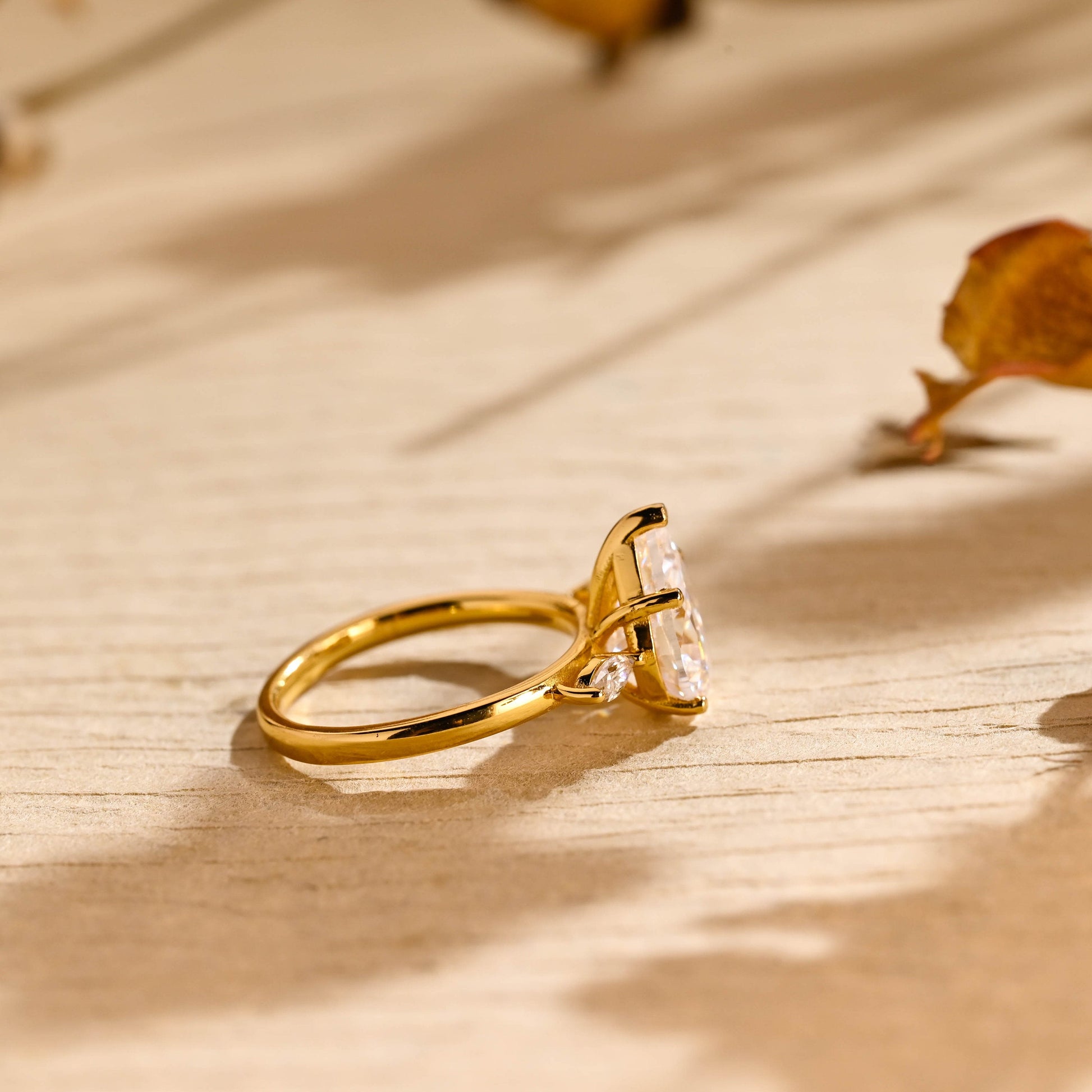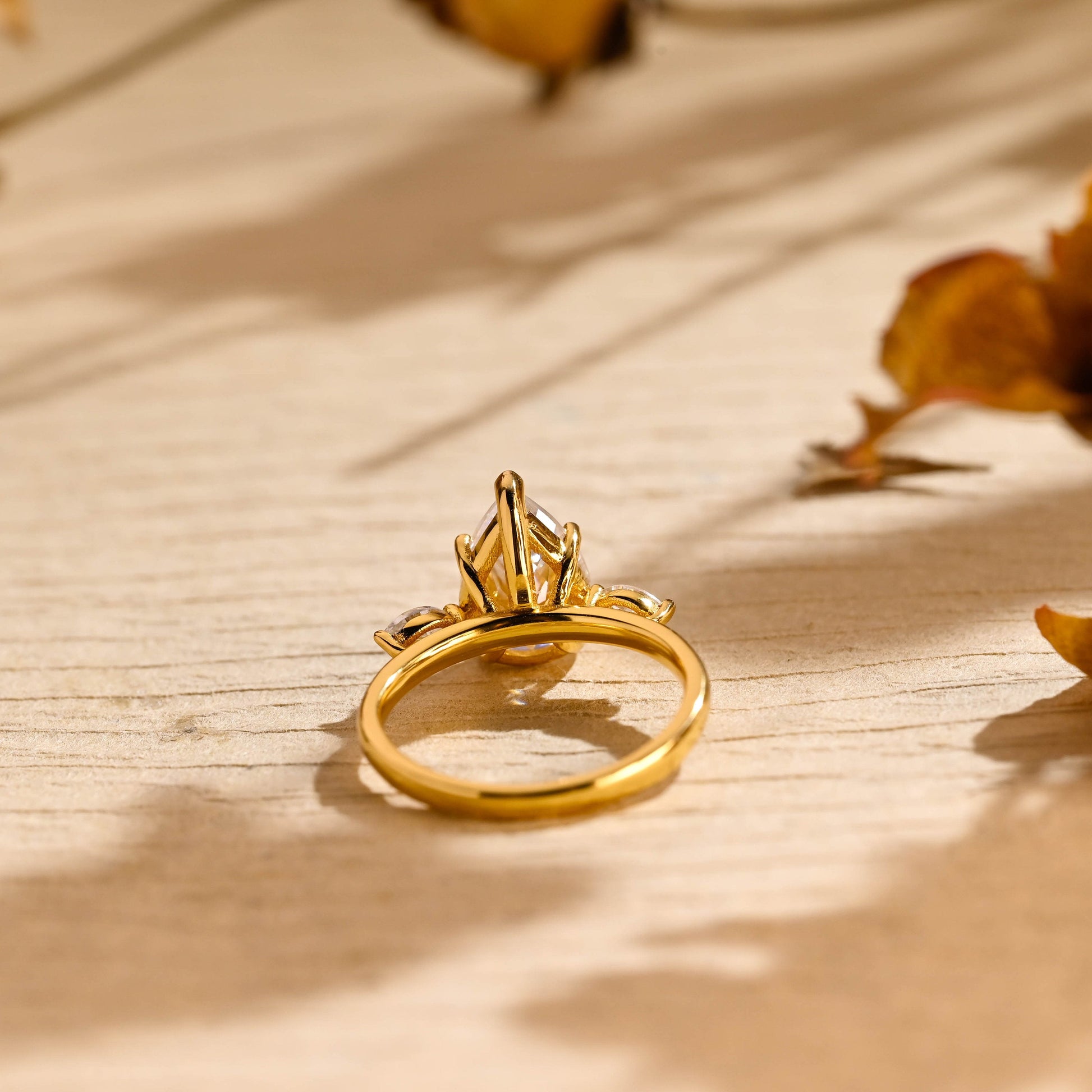 2.0CT Pear Diamond Three Stone Moissanite Engagement Ring