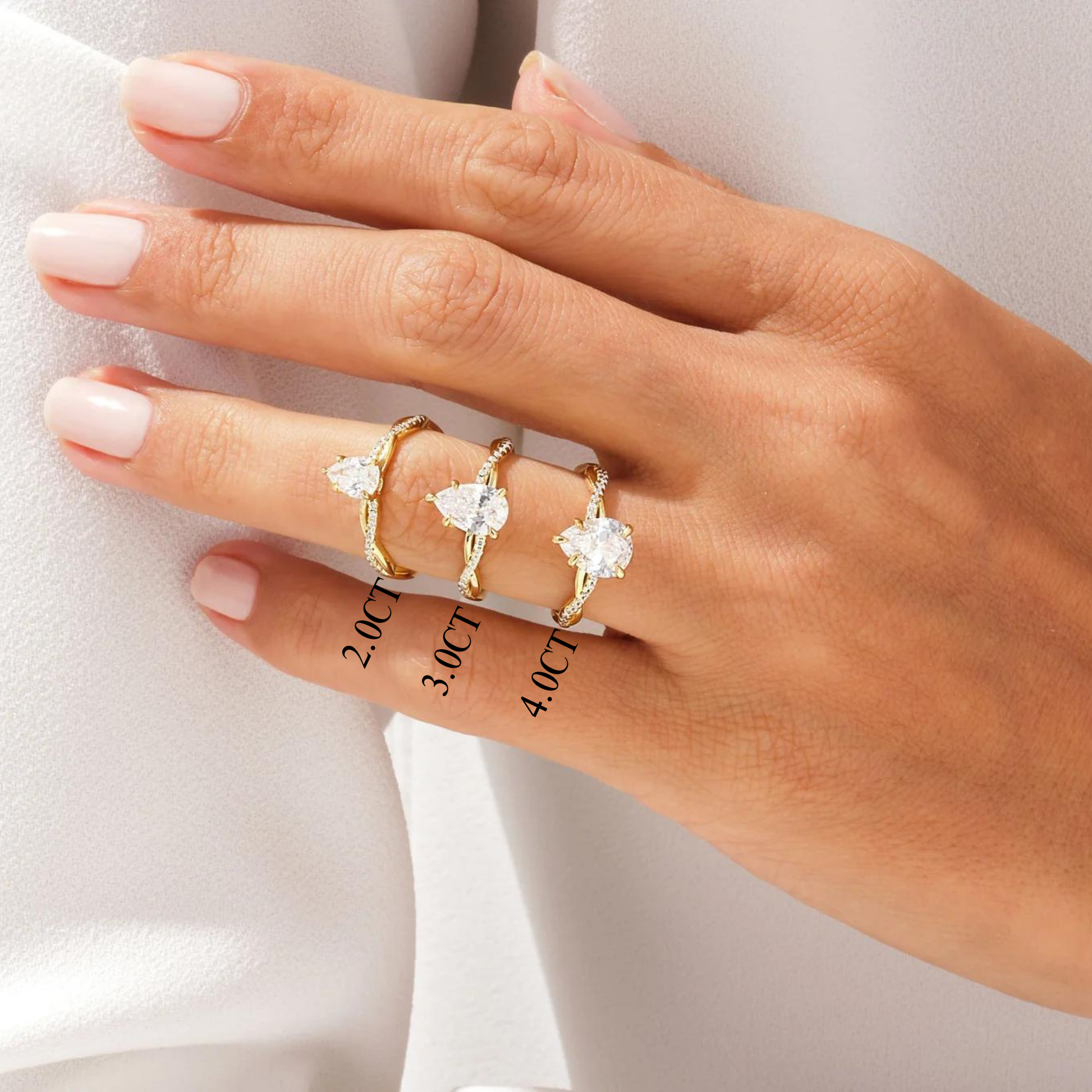 2.0CT Pear Diamond Twisted Pave Setting Moissanite Engagement Ring