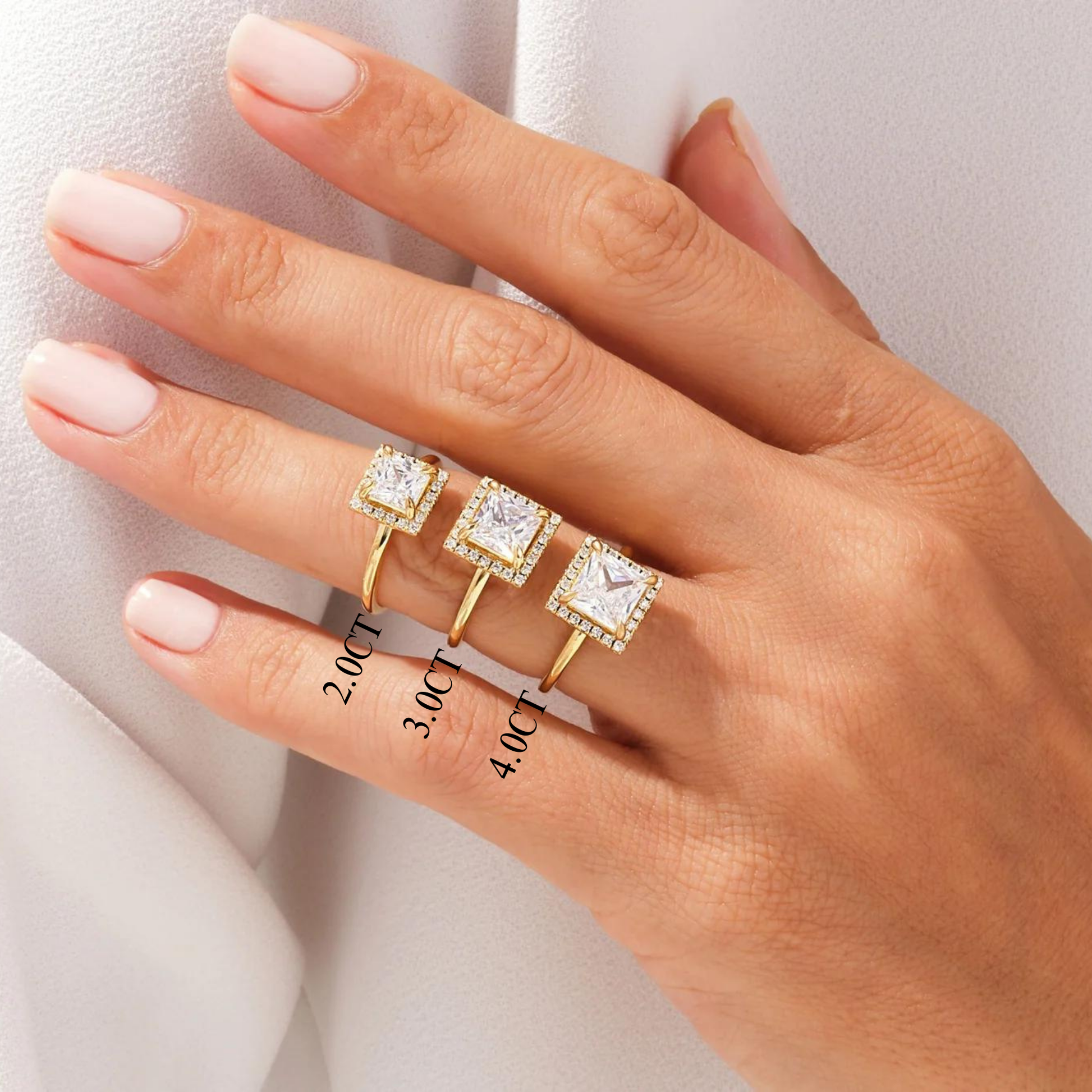 2.0CT Princess Diamond Halo Moissanite Engagement Ring