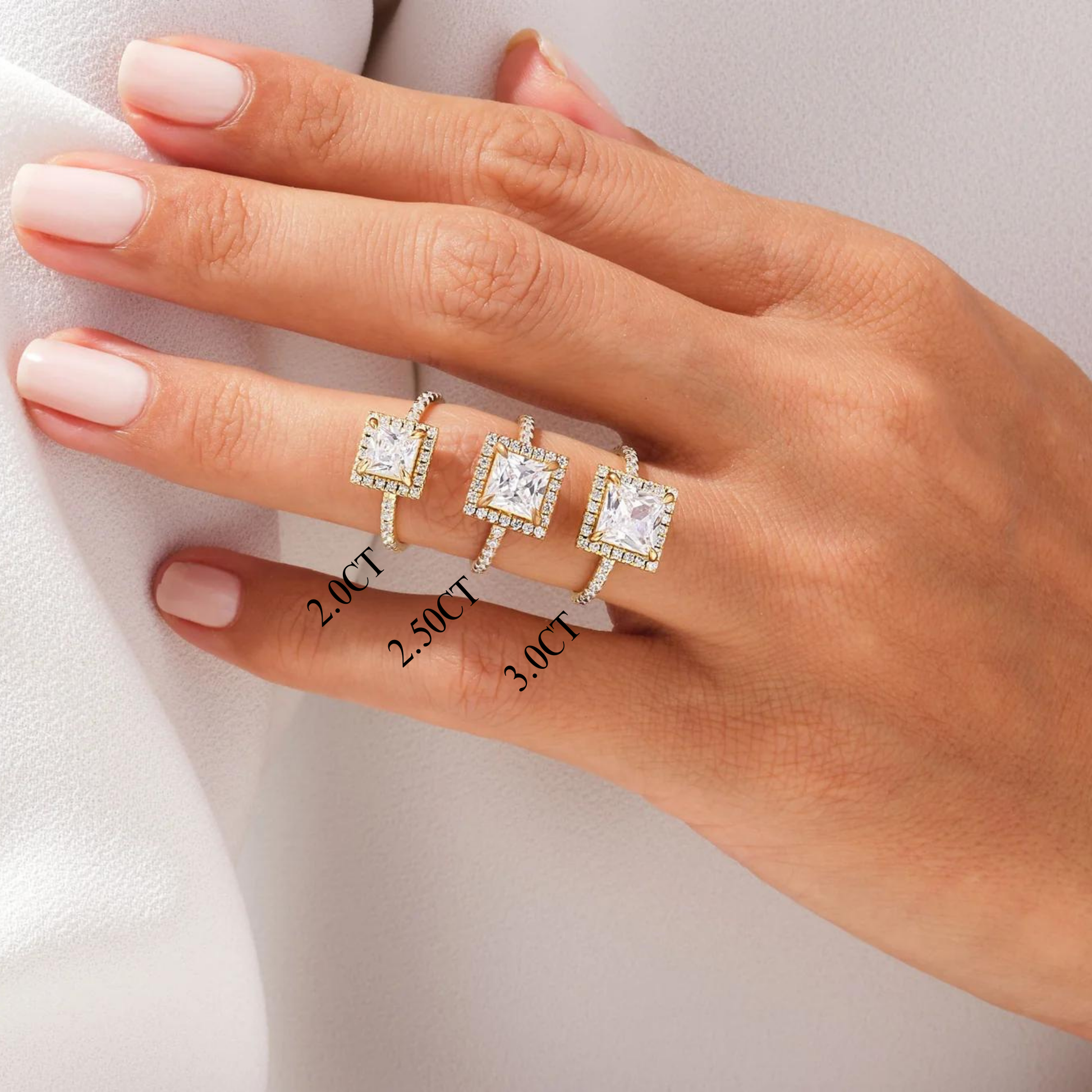 2.0CT Princess Diamond Halo Pave Setting Moissanite Engagement Ring