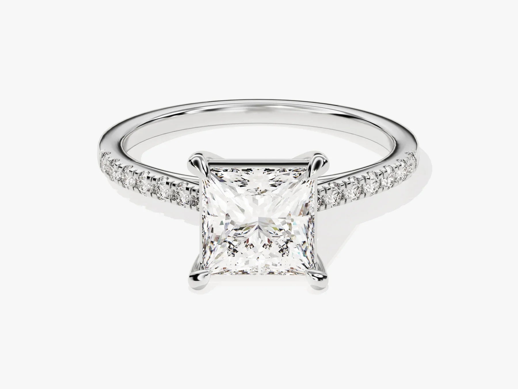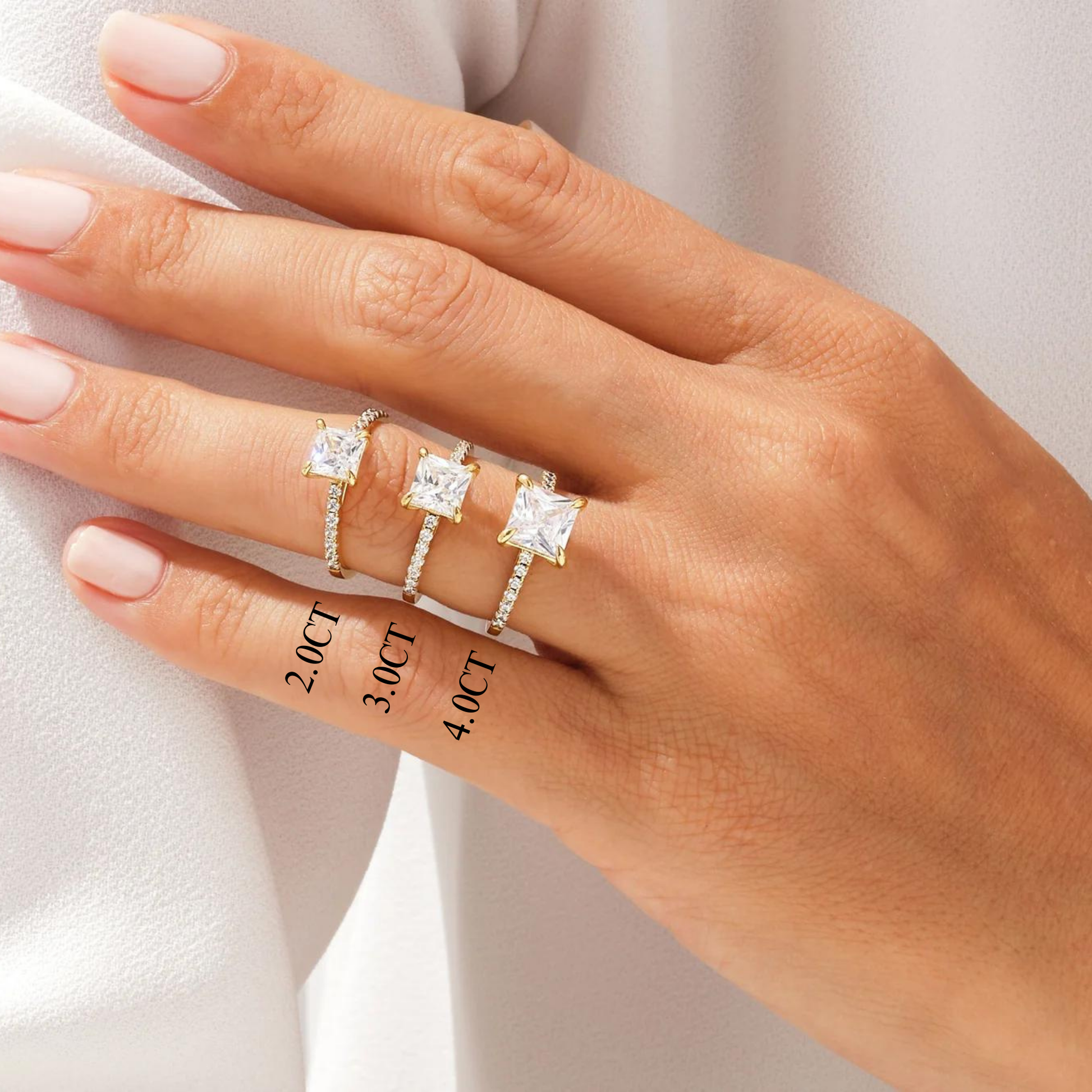 2.0CT Princess Diamond Pave Setting Moissanite Engagement Ring