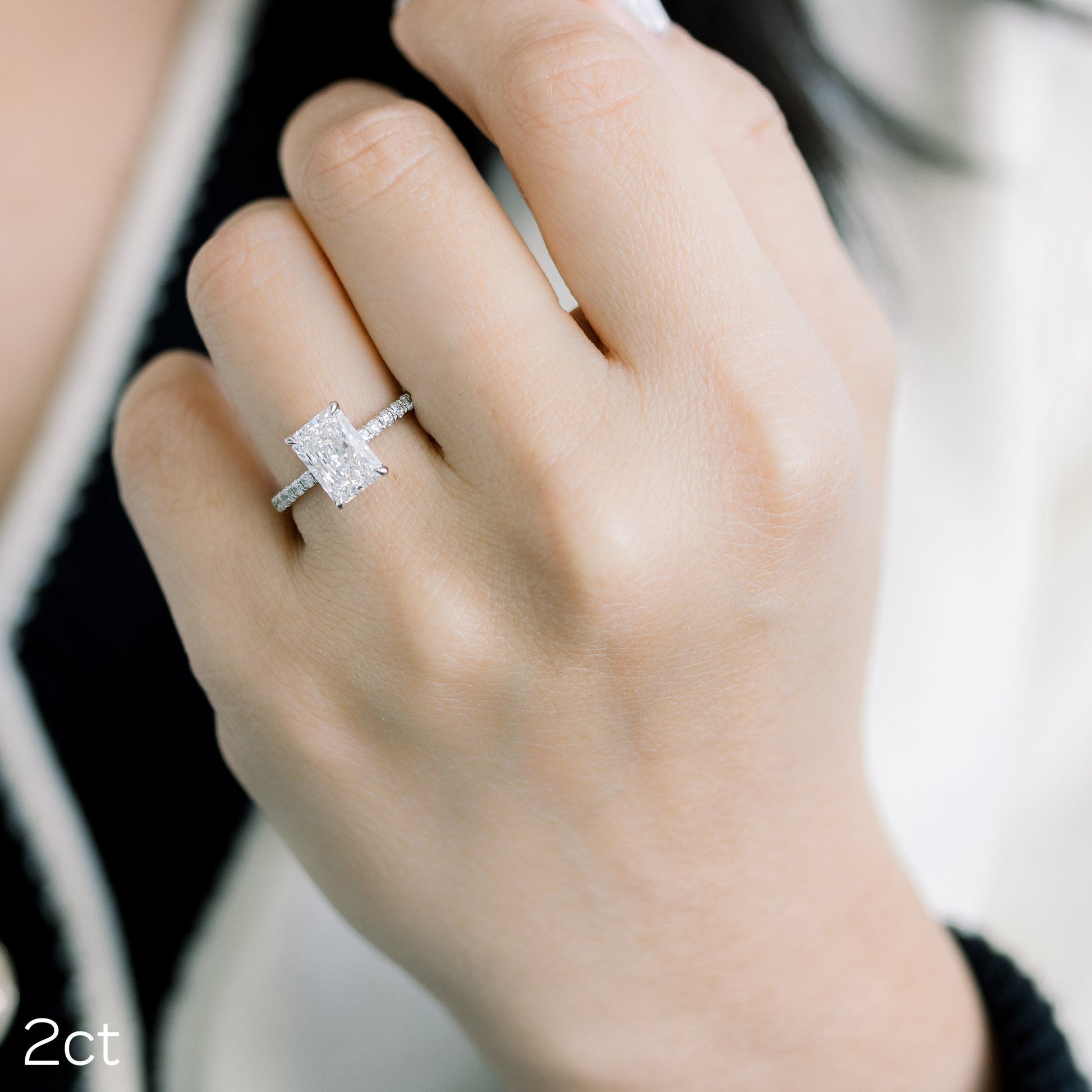 2.0CT Radiant Cut Moissanite Classic Pave Diamond Engagement Ring