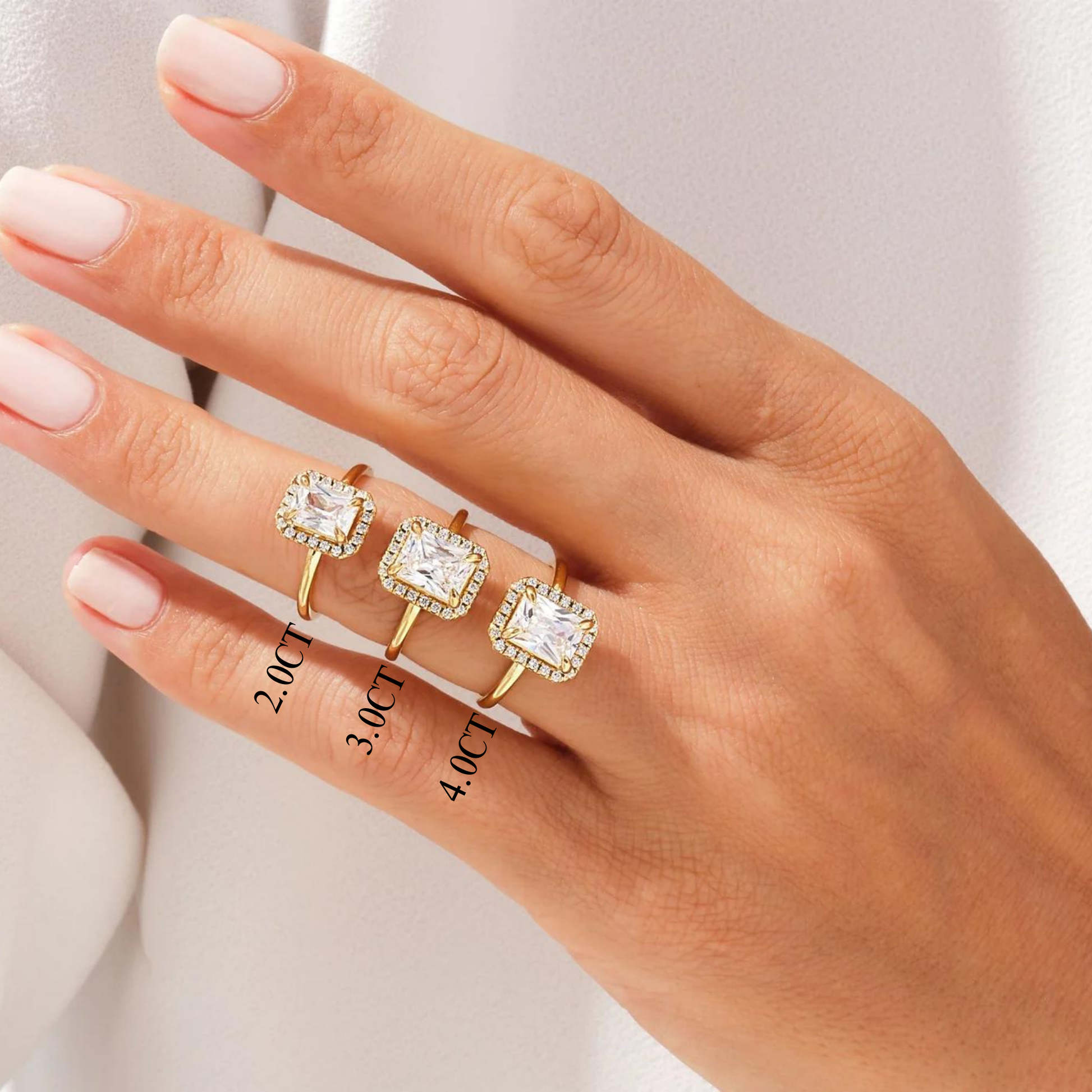 2.0CT Radiant Diamond Halo Moissanite Engagement Ring