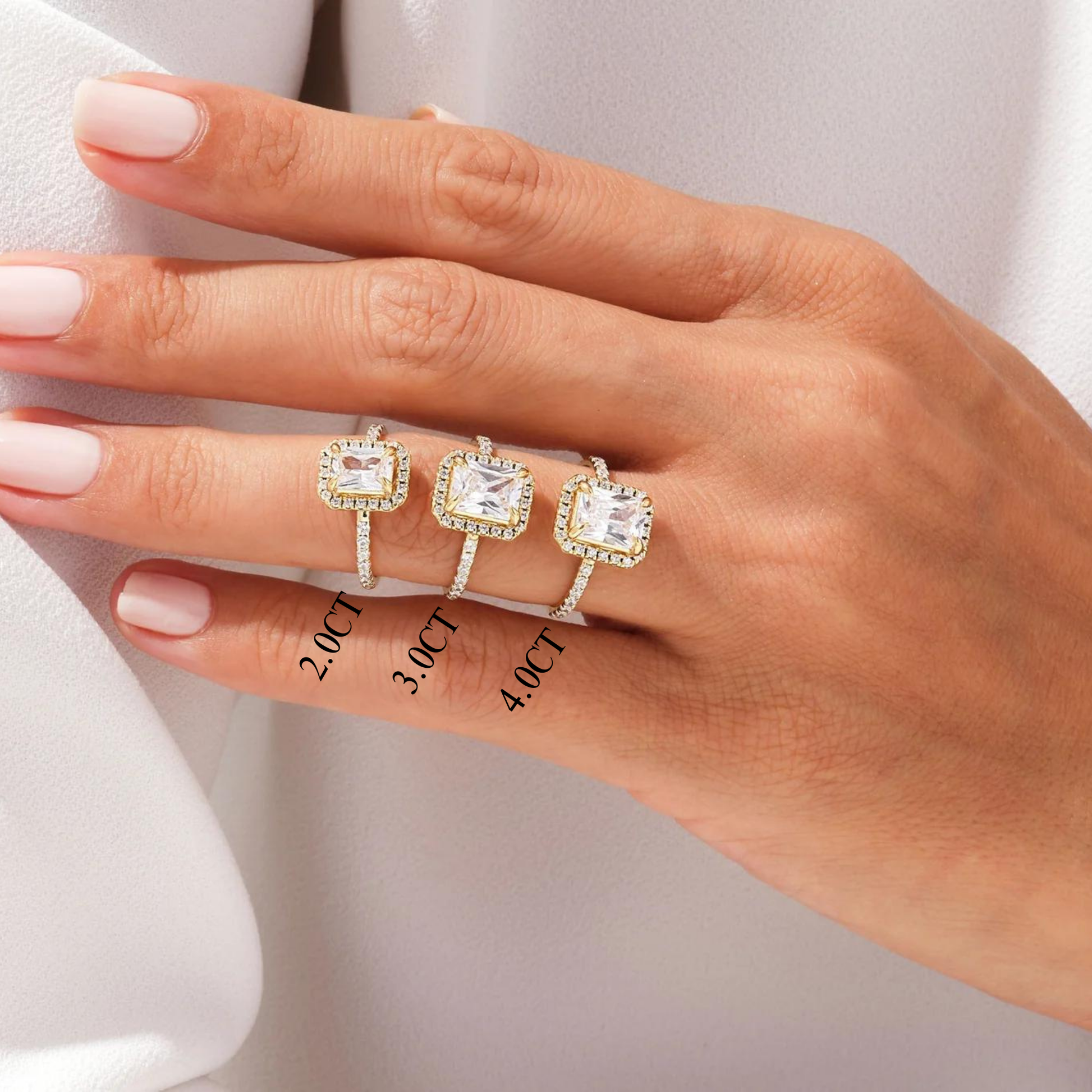 2.0CT Radiant Diamond Halo Pave Setting Moissanite Engagement Ring