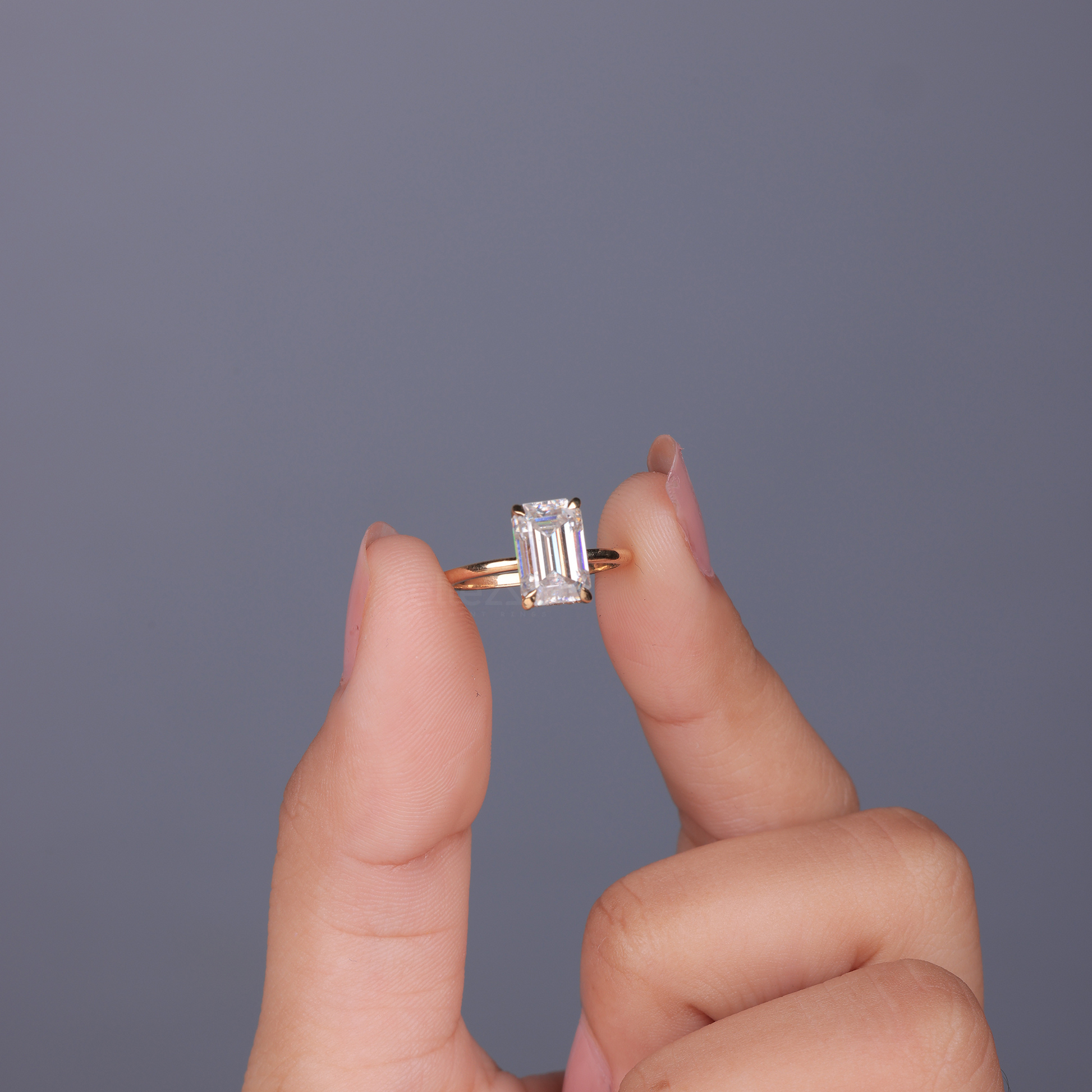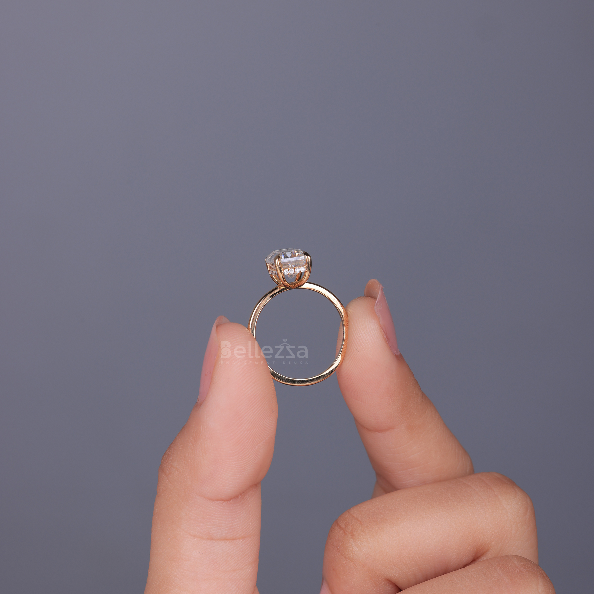 2.25CT Emerald Cut Hidden Halo Moissanite Engagement Ring - Ready to Ship