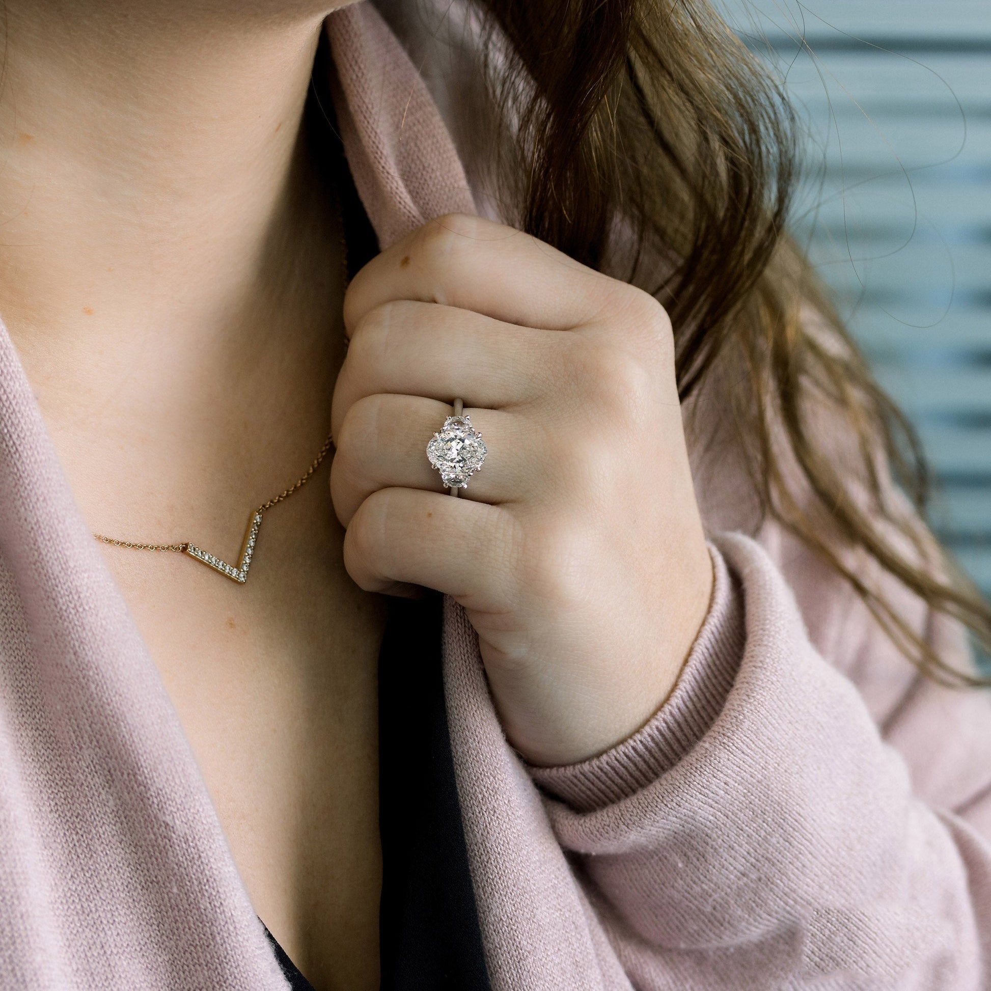 2.25CT Oval Cut Moissanite Half Moon Diamond Engagement Ring