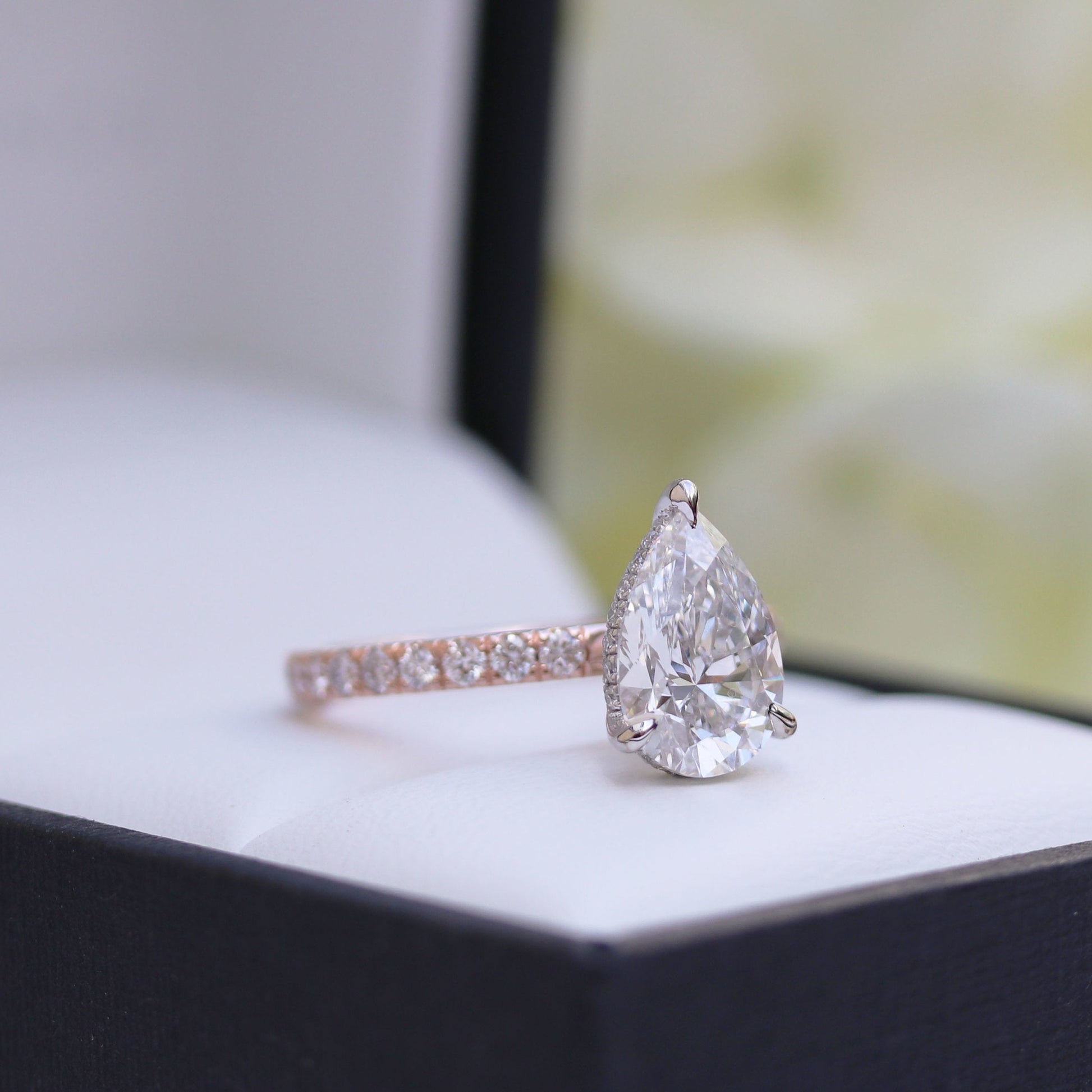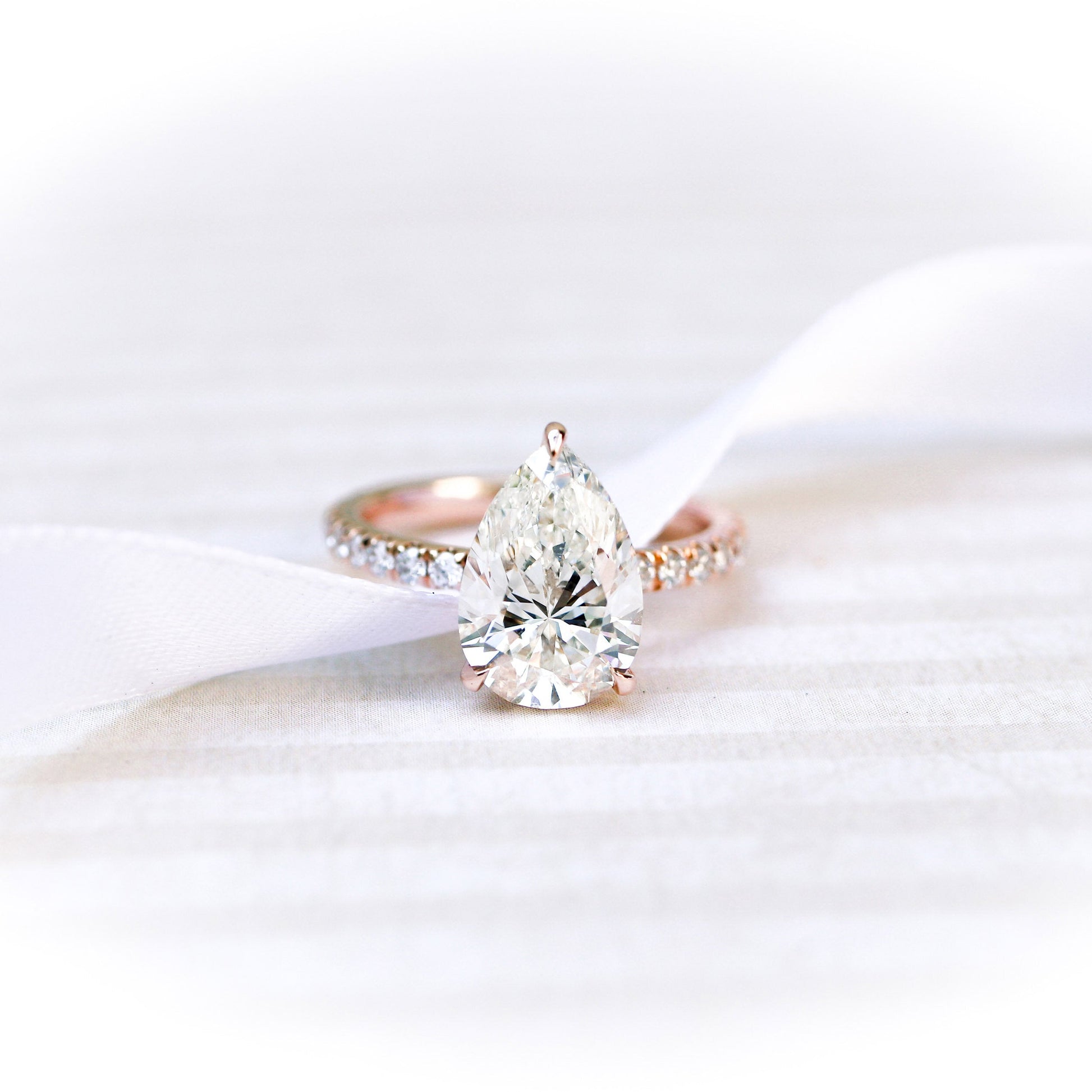 2.25CT Pear Cut Moissanite Petite Pave Diamond Engagement Ring