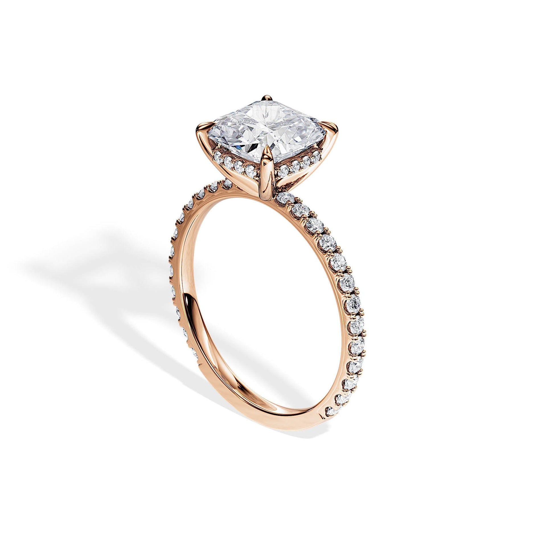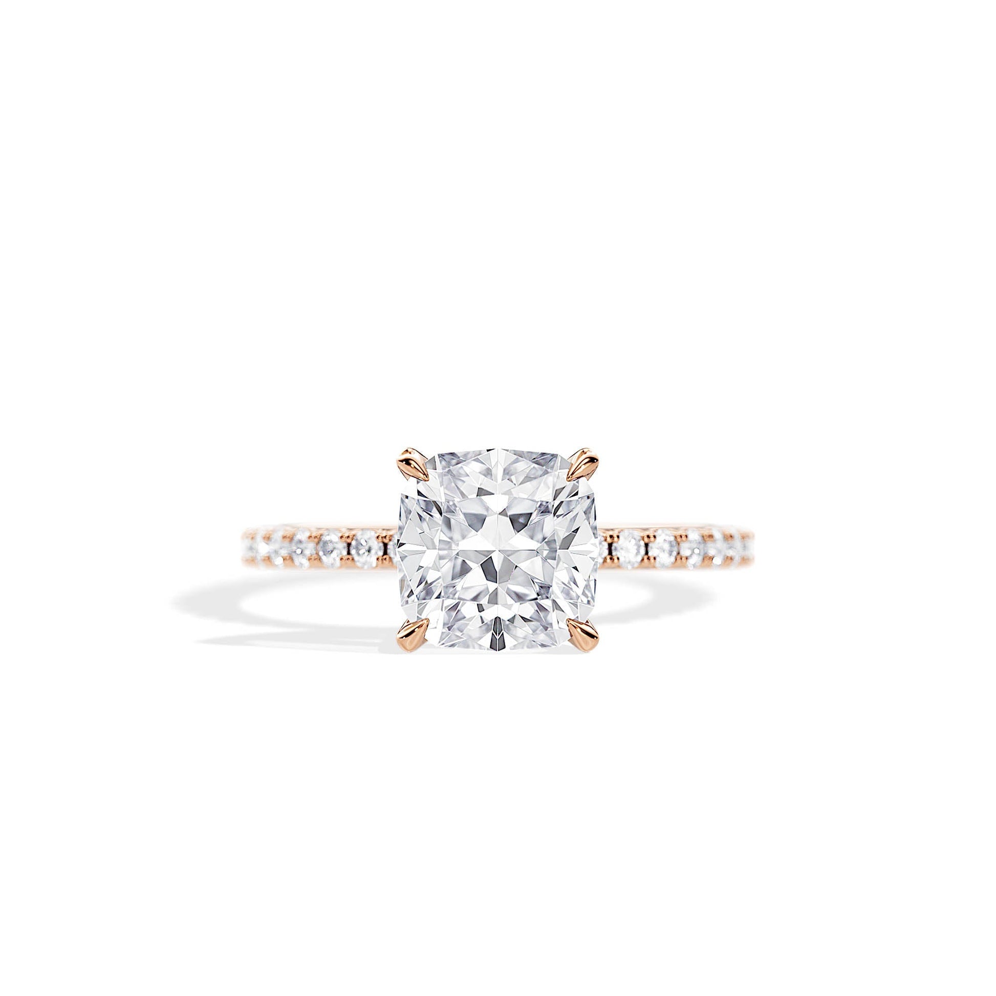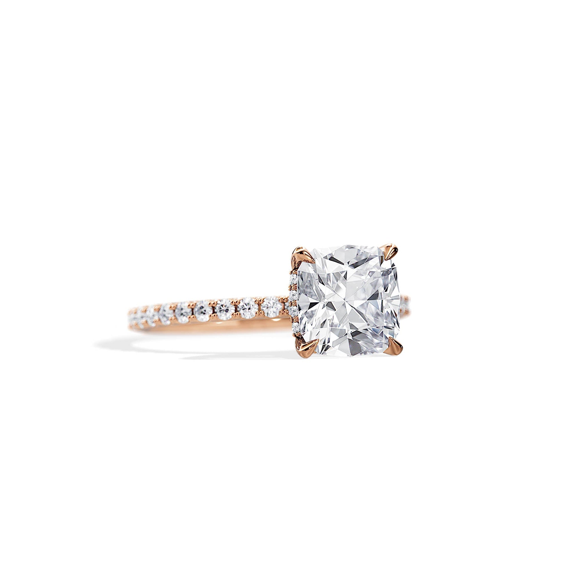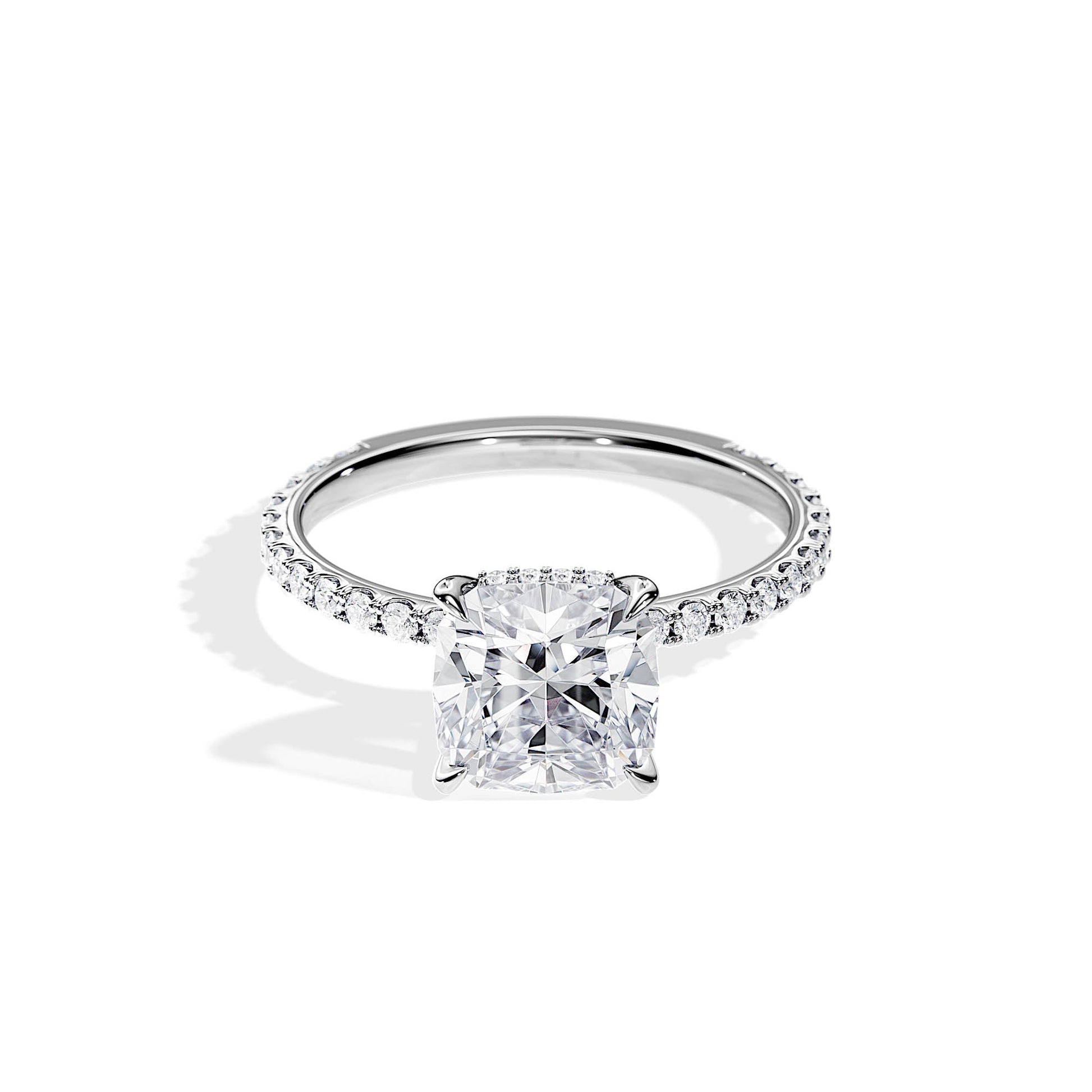 2.40 CT Cushion Cut Moissanite Hidden Halo & Pave Engagement Ring