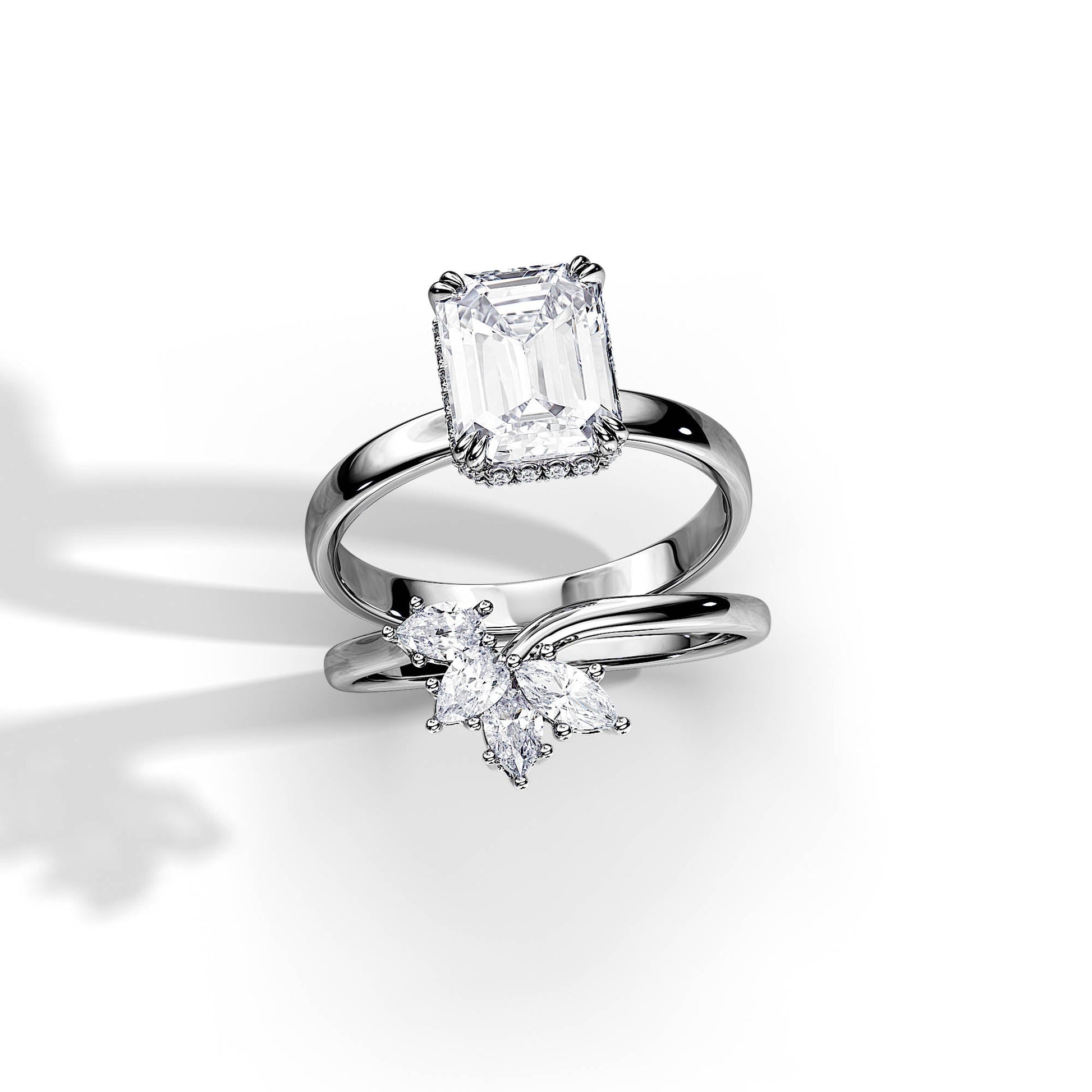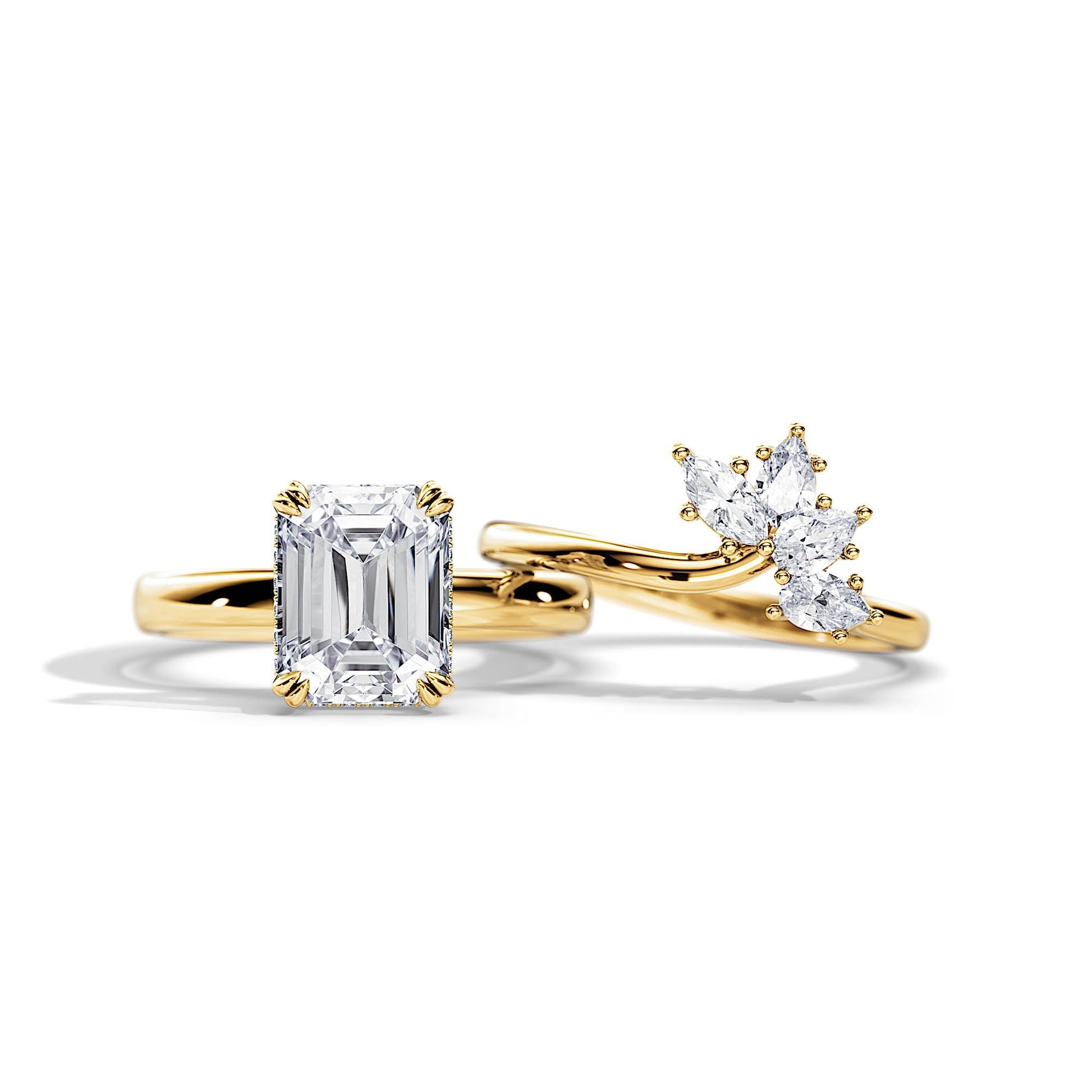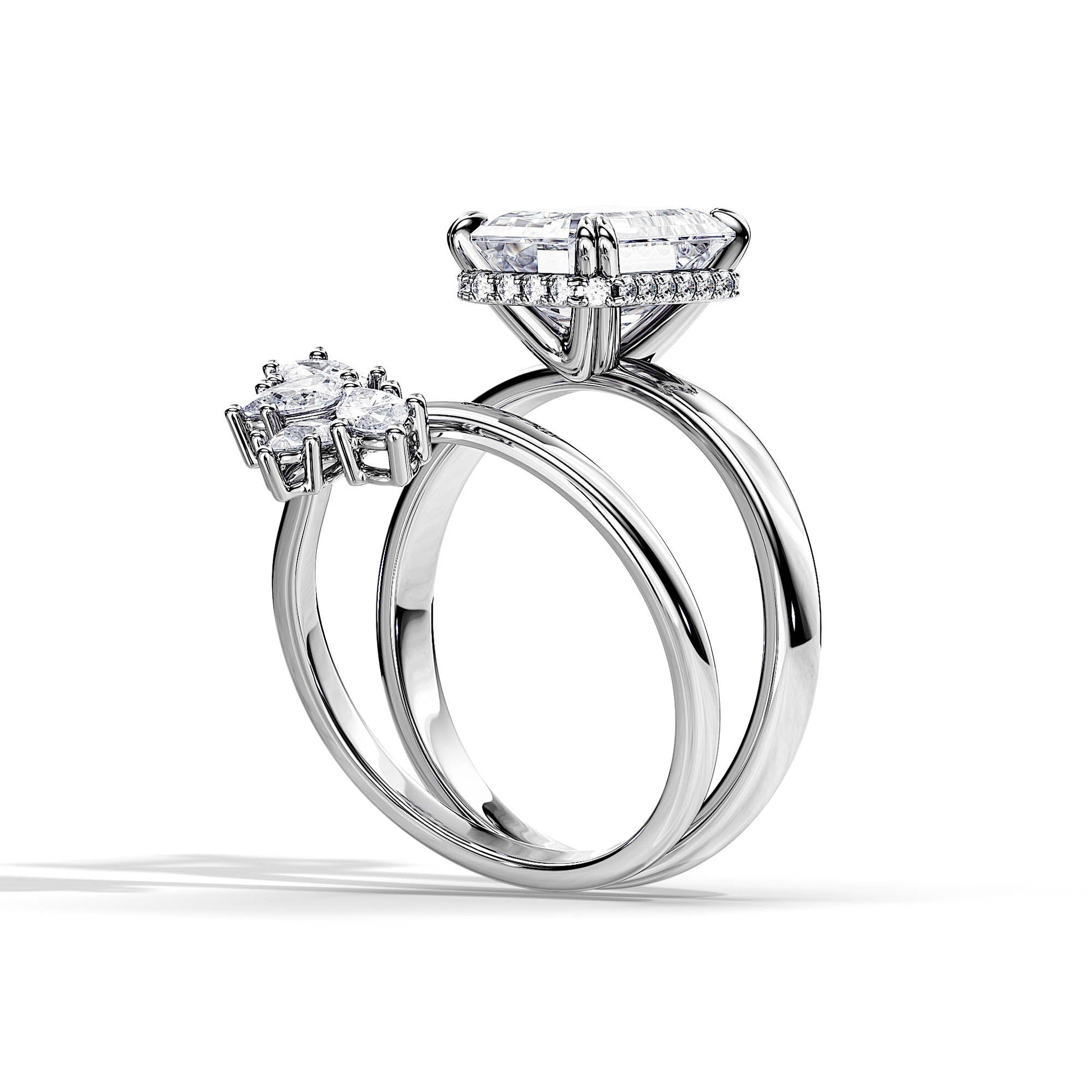 2.5 CT Emerald Moissanite Hidden Halo Bridal Ring Set