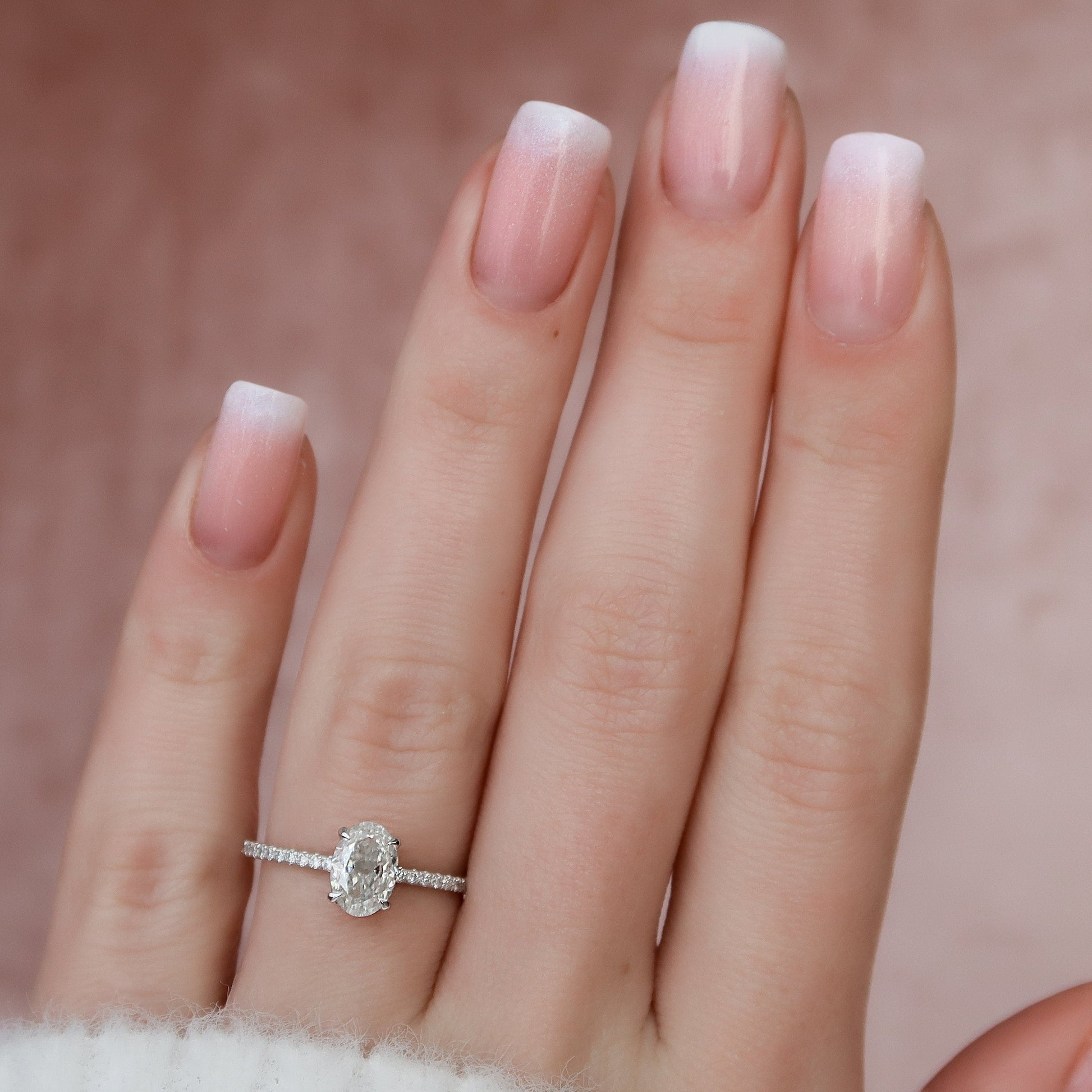 1.0CT Oval Cut Moissanite Hidden Halo Diamond Engagement Ring