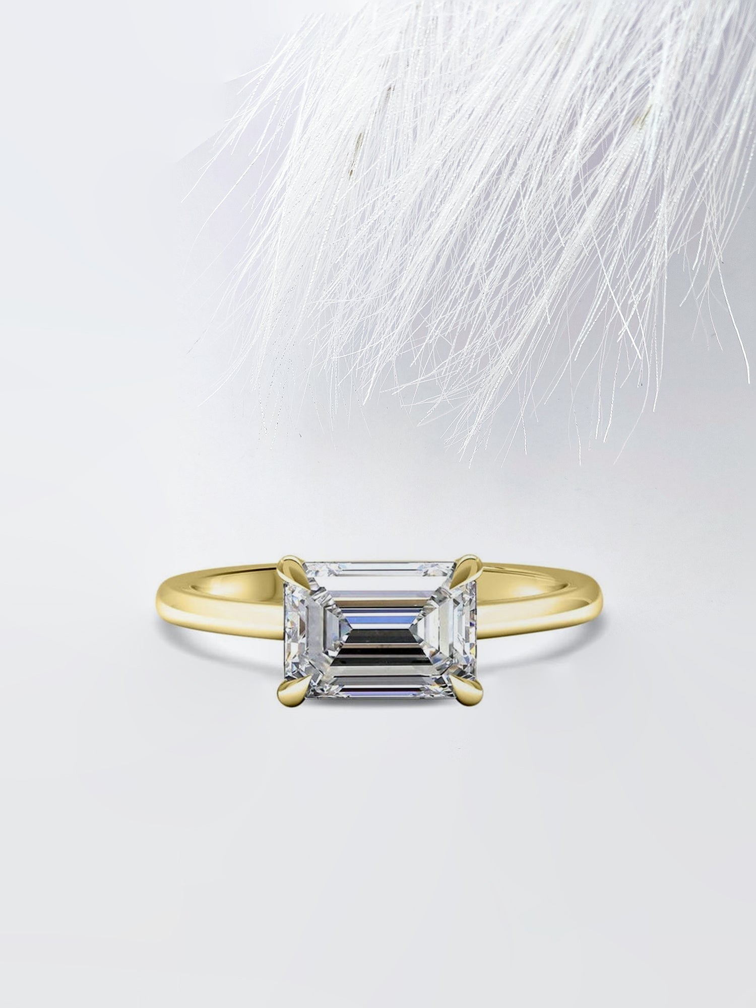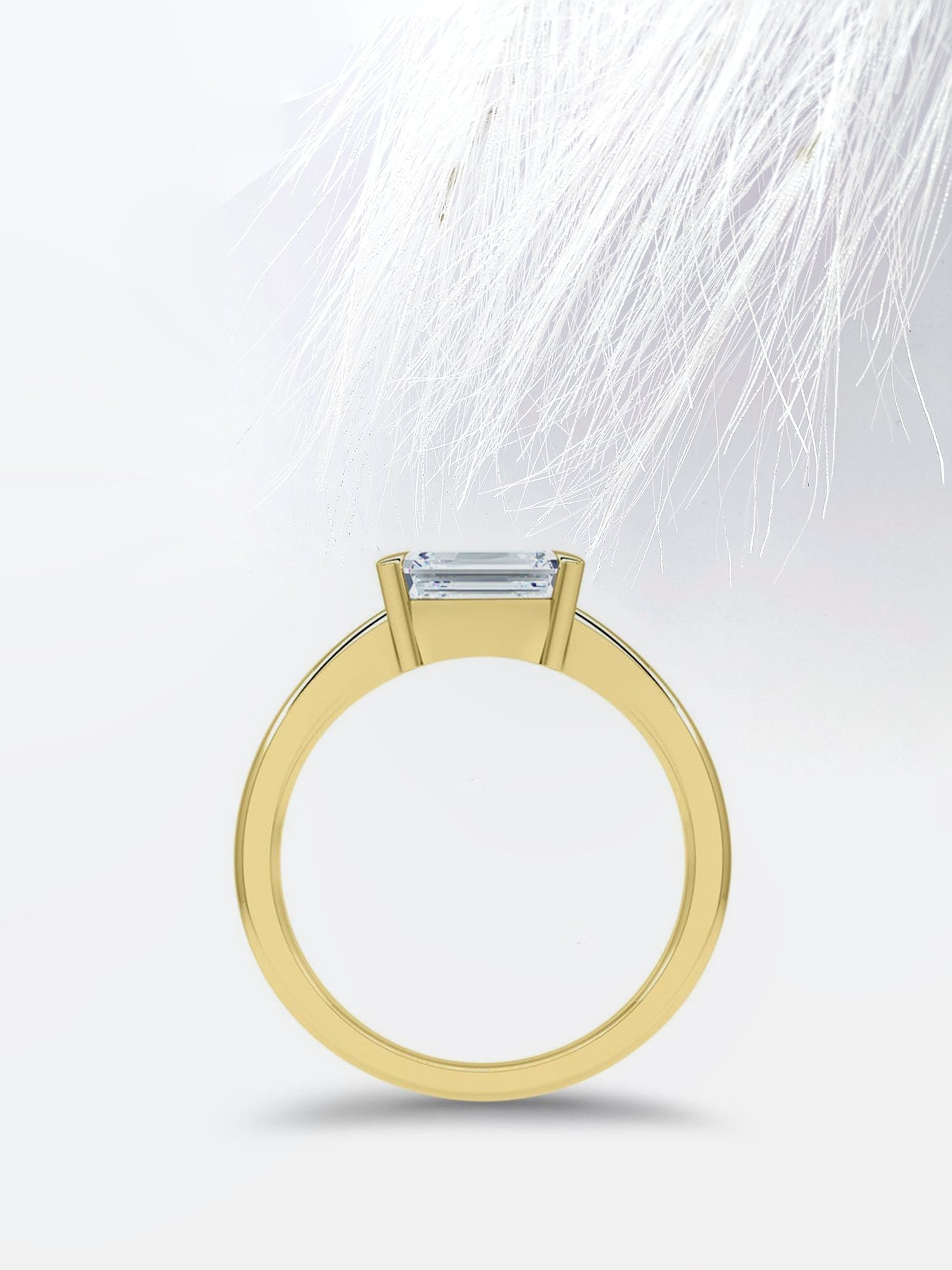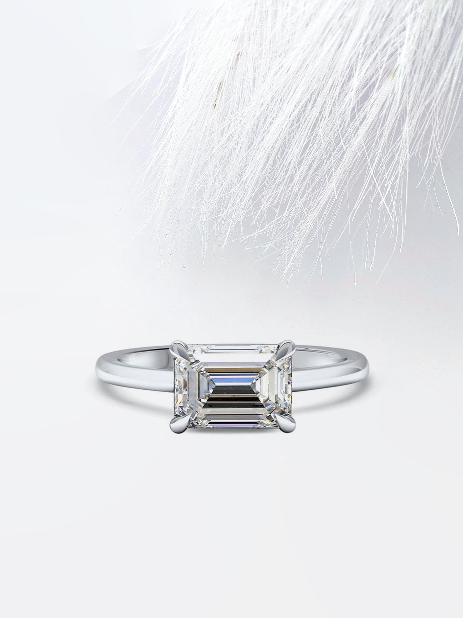 ✥ Introducing our captivating 2.5CT East West Emerald Cut Solitaire Moissanite Diamond Engagement Ring. a modern masterpiece designed to symbolize eternal love and sophistication. Crafted with meticulous attention to detail. this ring features a mesmerizing emerald-cut center stone set horizontally. creating a unique and contemporary look. As a solitaire. the brilliance of the moissanite diamond takes center stage. radiating elegance and timeless beauty. Meticulously designed for the modern woman. its clean lines and impeccable craftsmanship promise a lifetime of cherished moments and enduring devotion. Celebrate your love story with this enchanting piece. as you embark on a journey filled with love. happiness. and shared dreams.