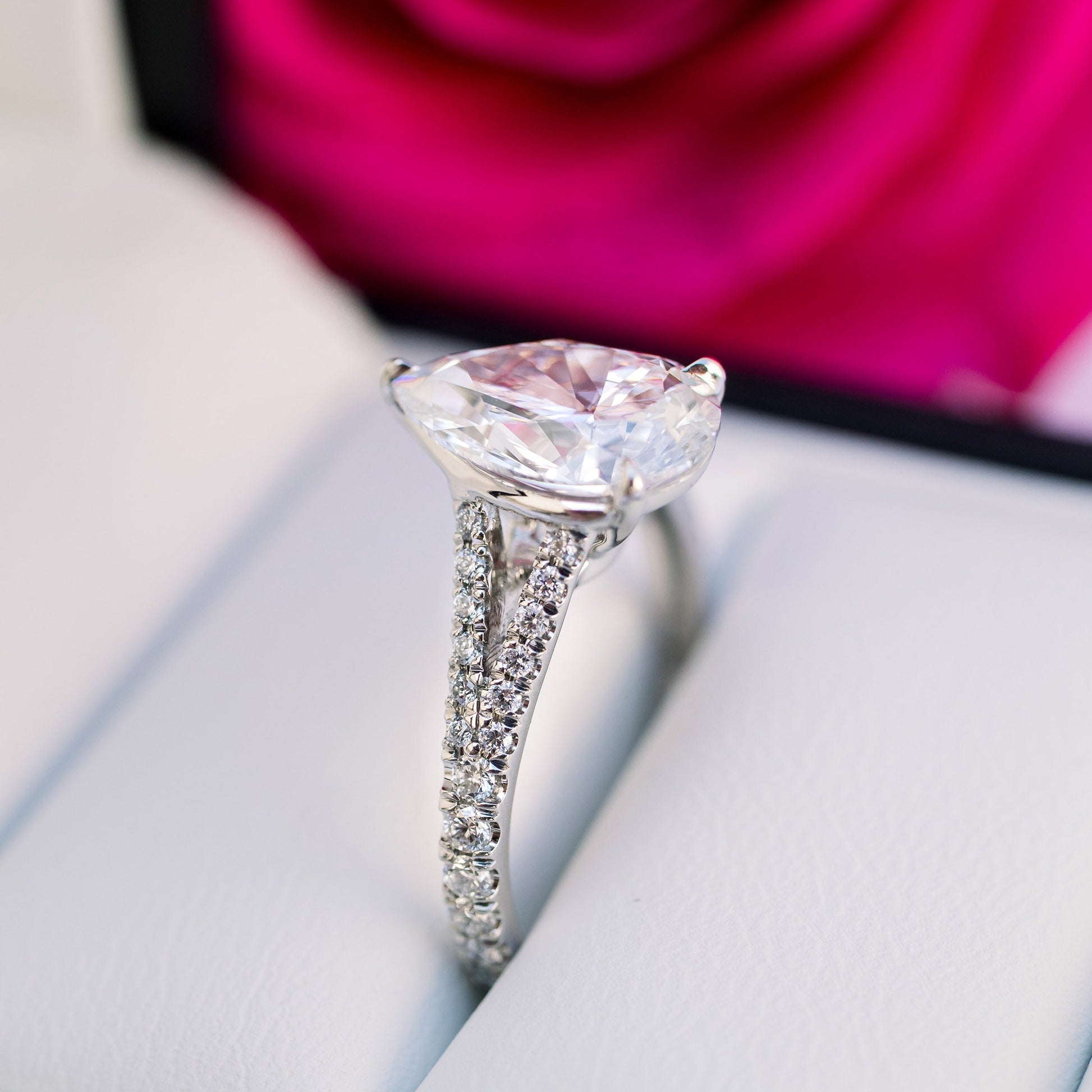 2.50CT Pear Cut Moissanite Trellis Split Shank Diamond Engagement Ring