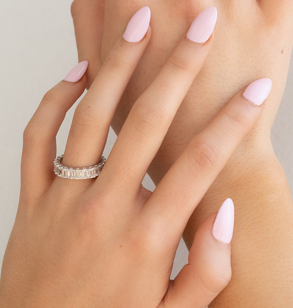2.91ct Emerald Cut Full Eternity Moissanite Diamond Wedding Band