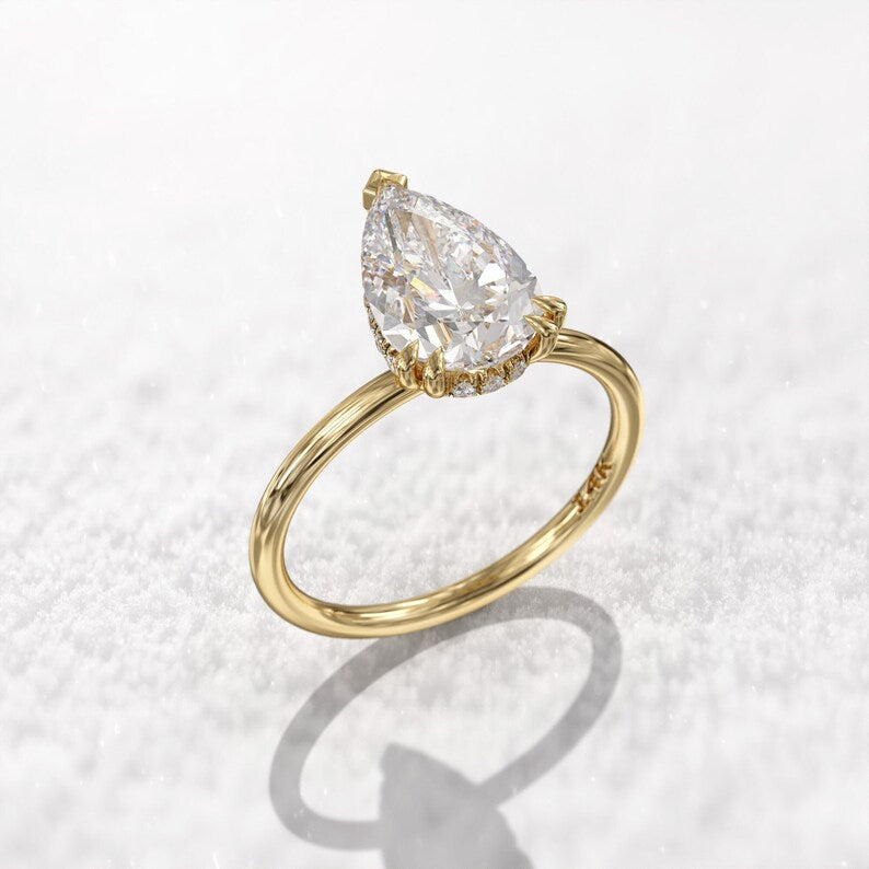 2CT Pear Diamond Hidden Halo Moissanite Engagement Ring
