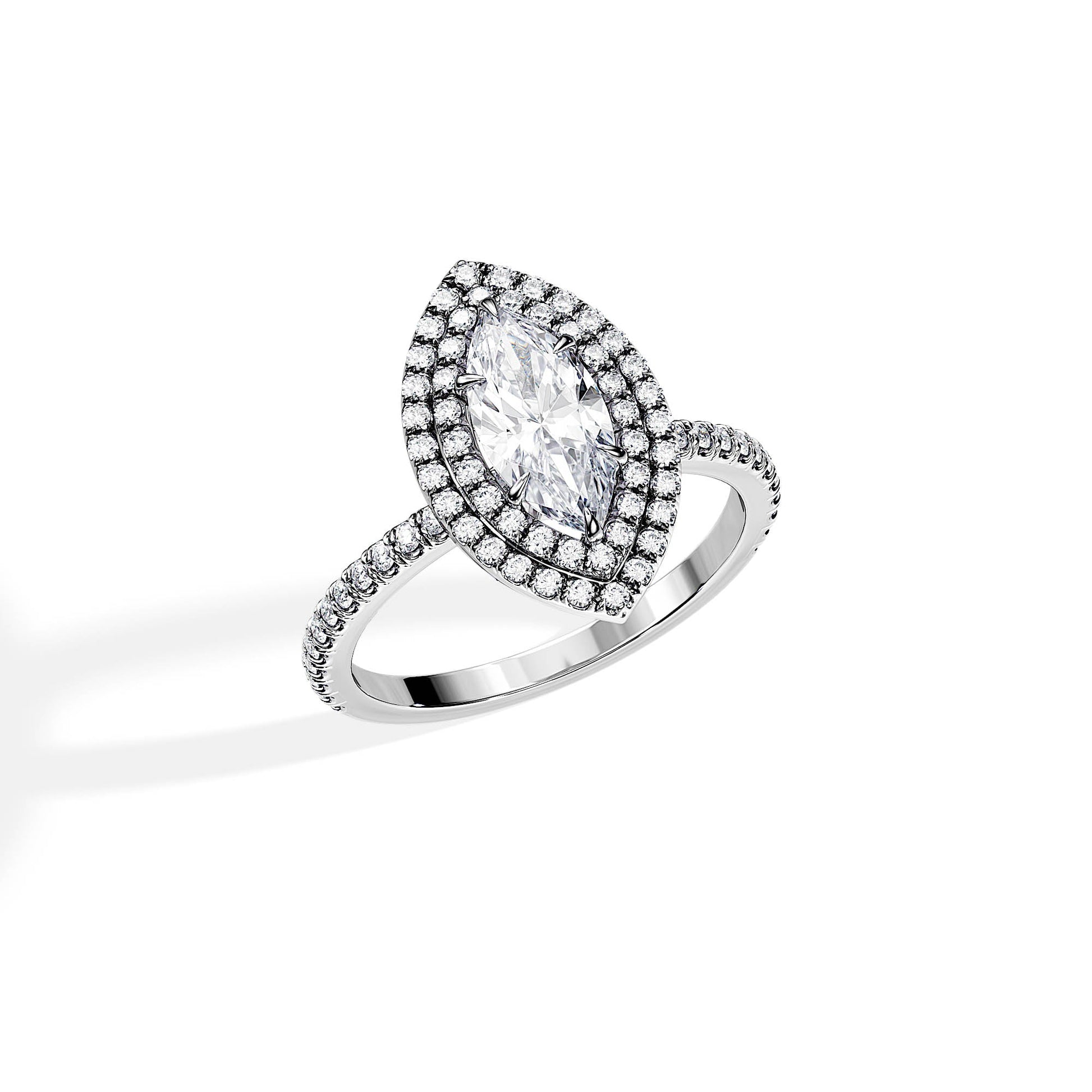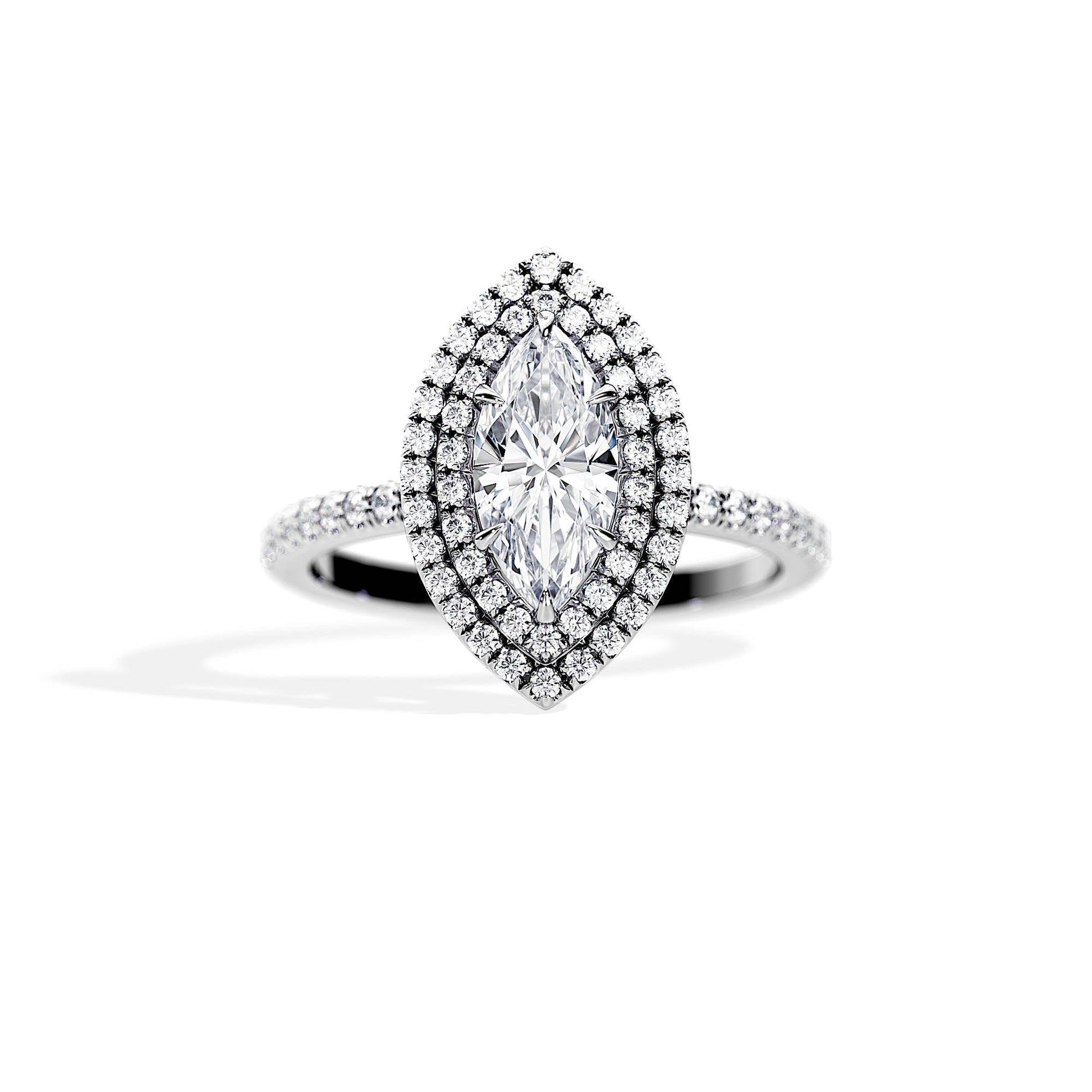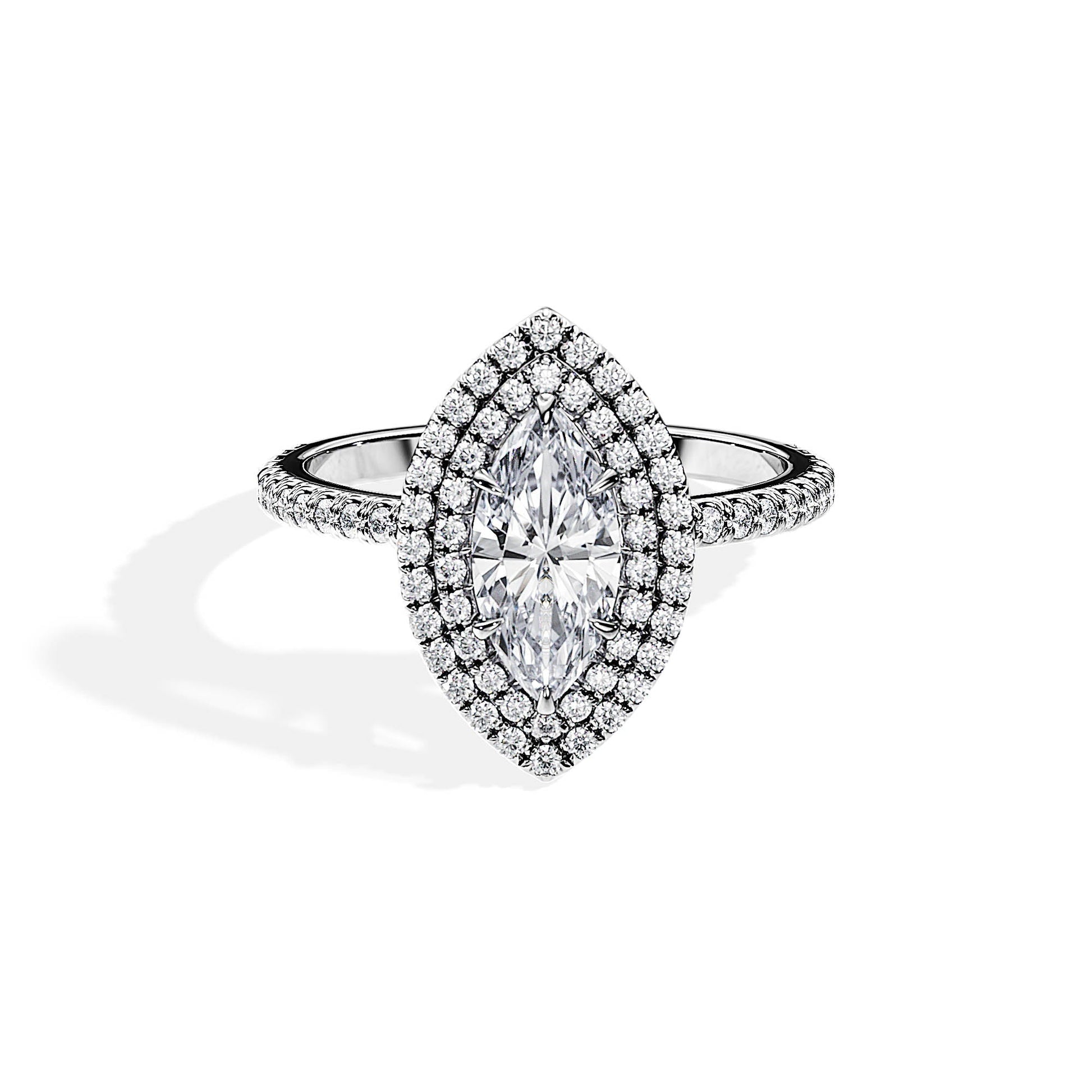 3.0 CT Marquise Cut Moissanite Double Halo & Pave Engagement Ring