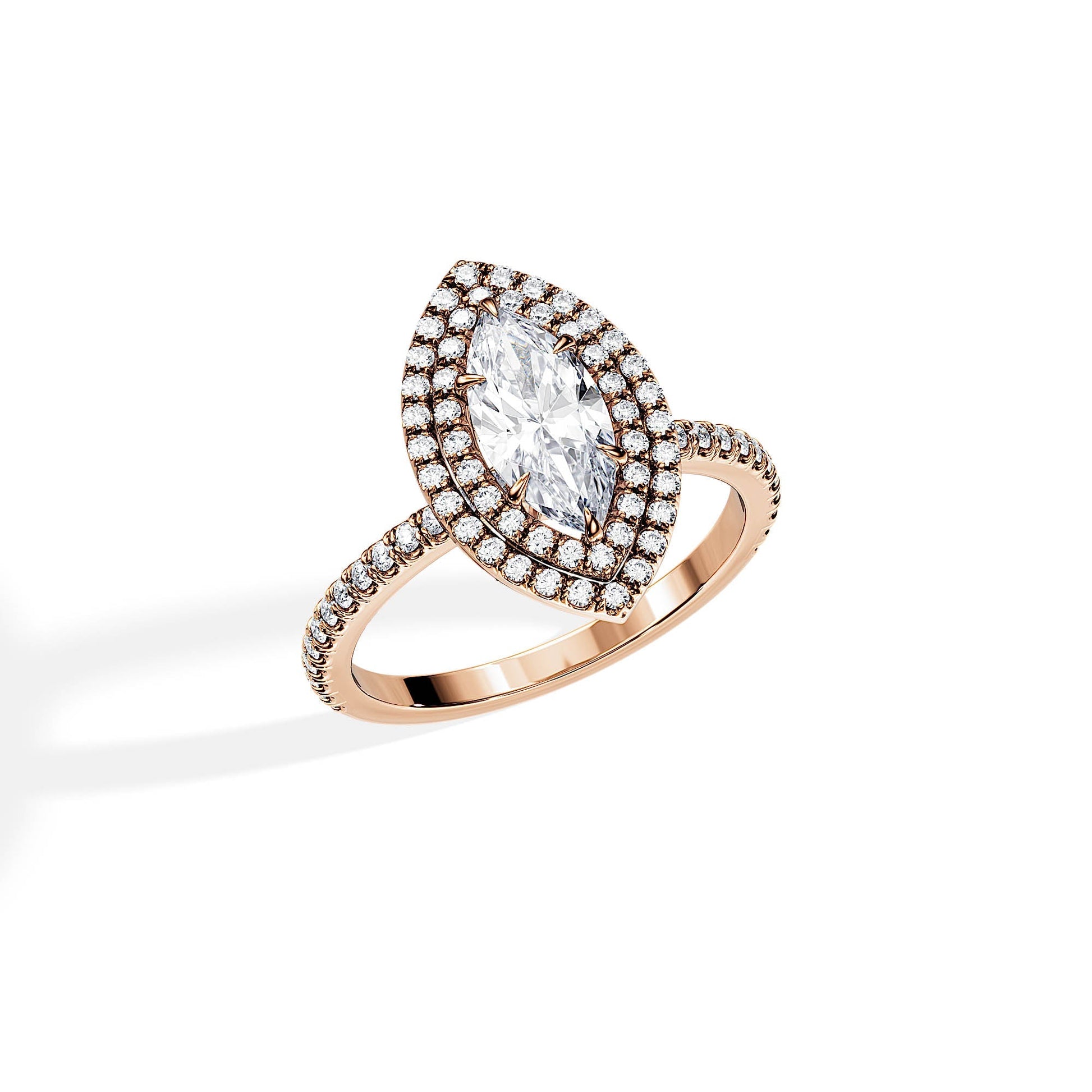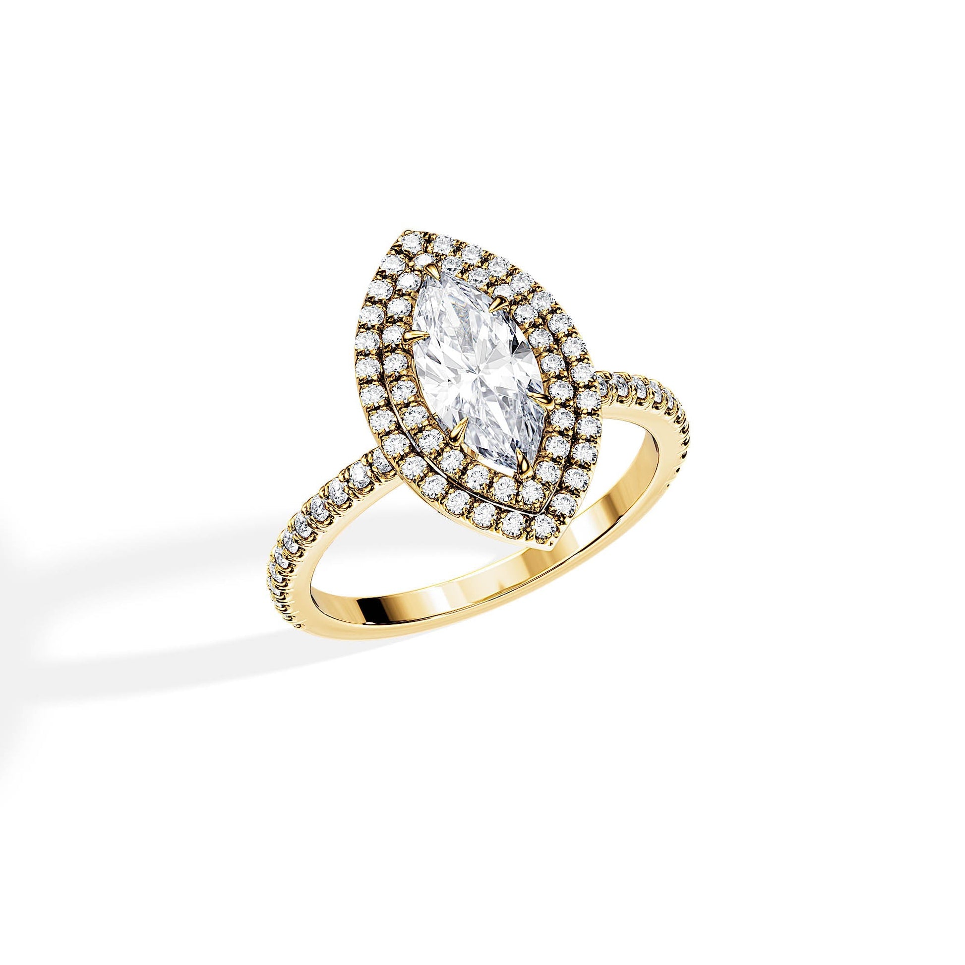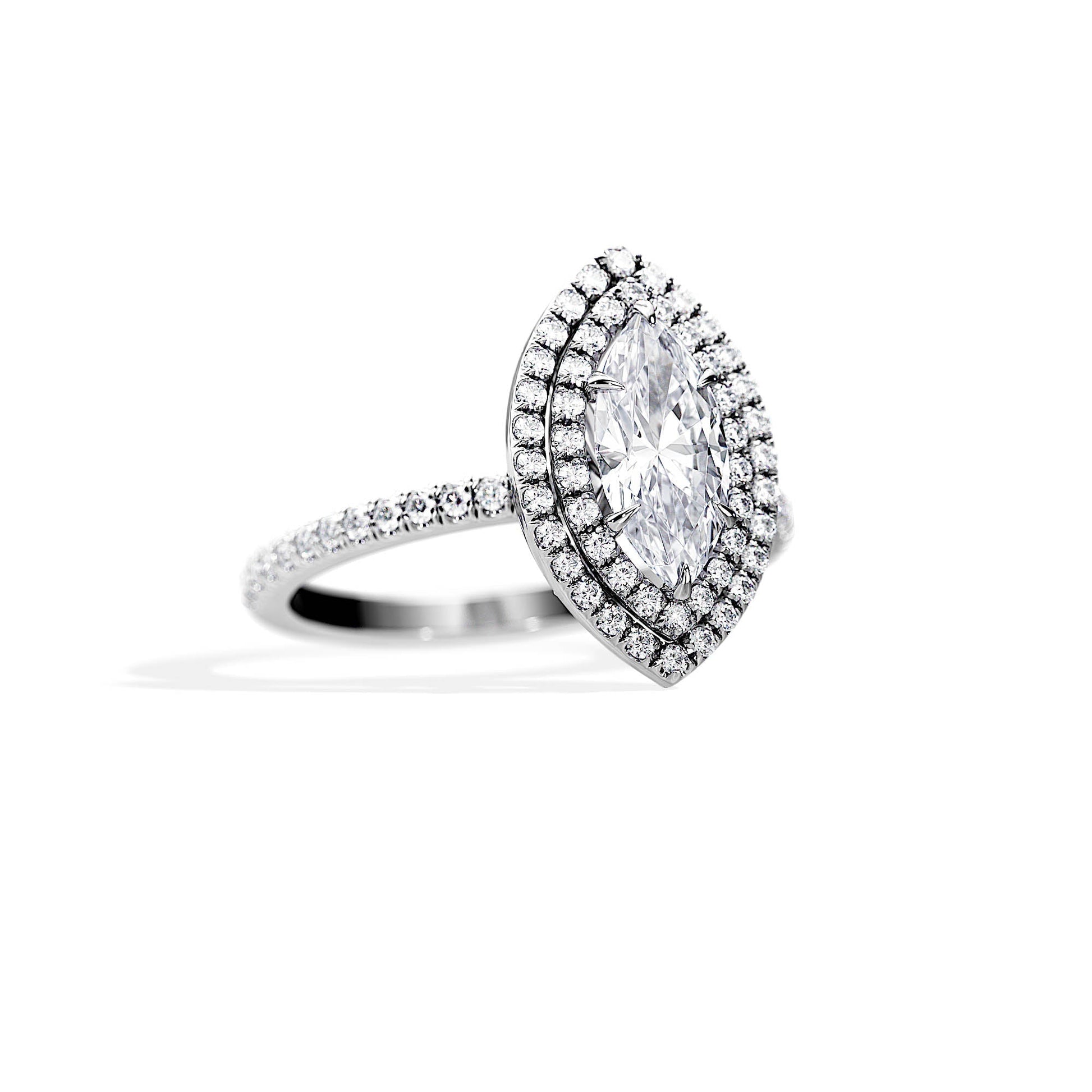 3.0 CT Marquise Cut Moissanite Double Halo & Pave Engagement Ring