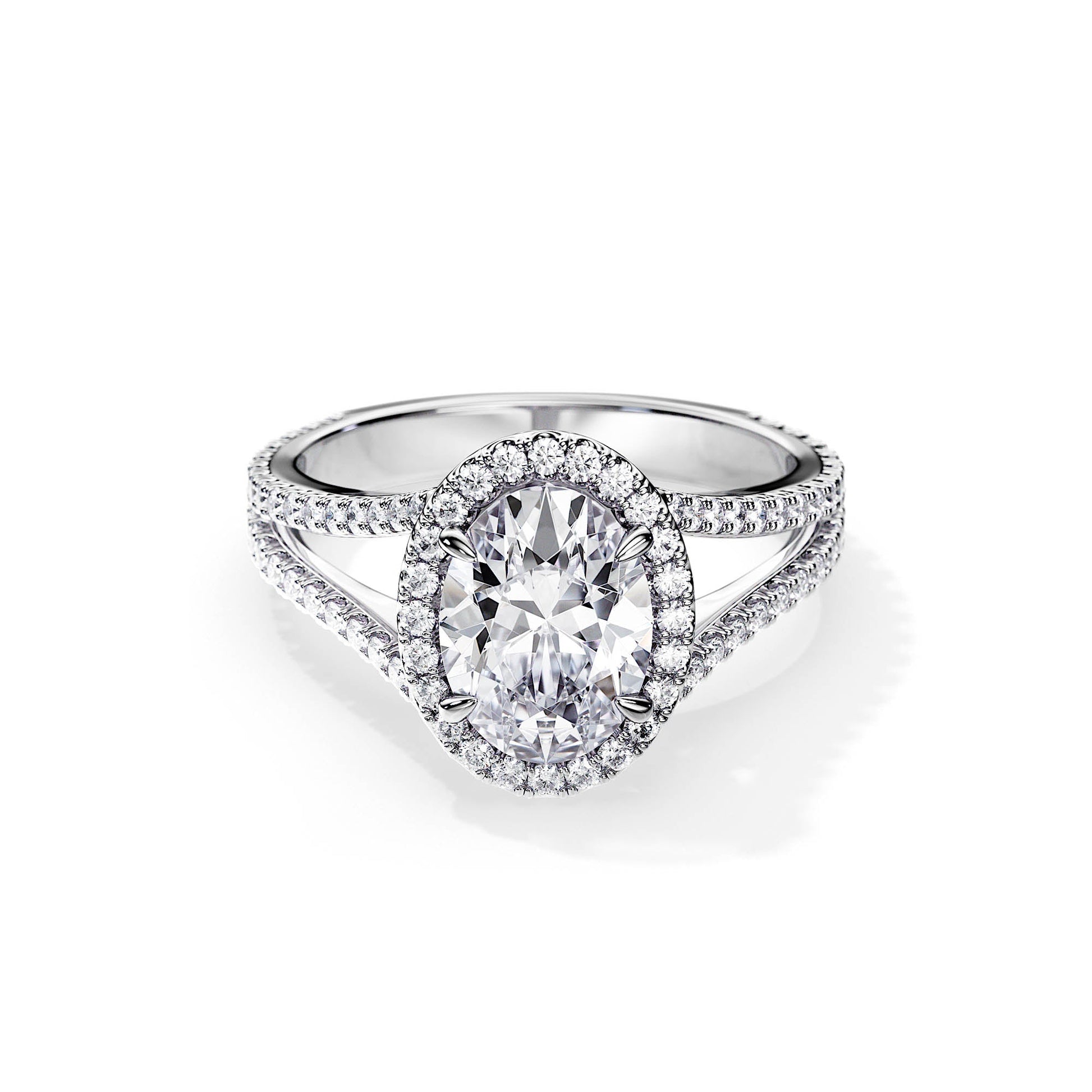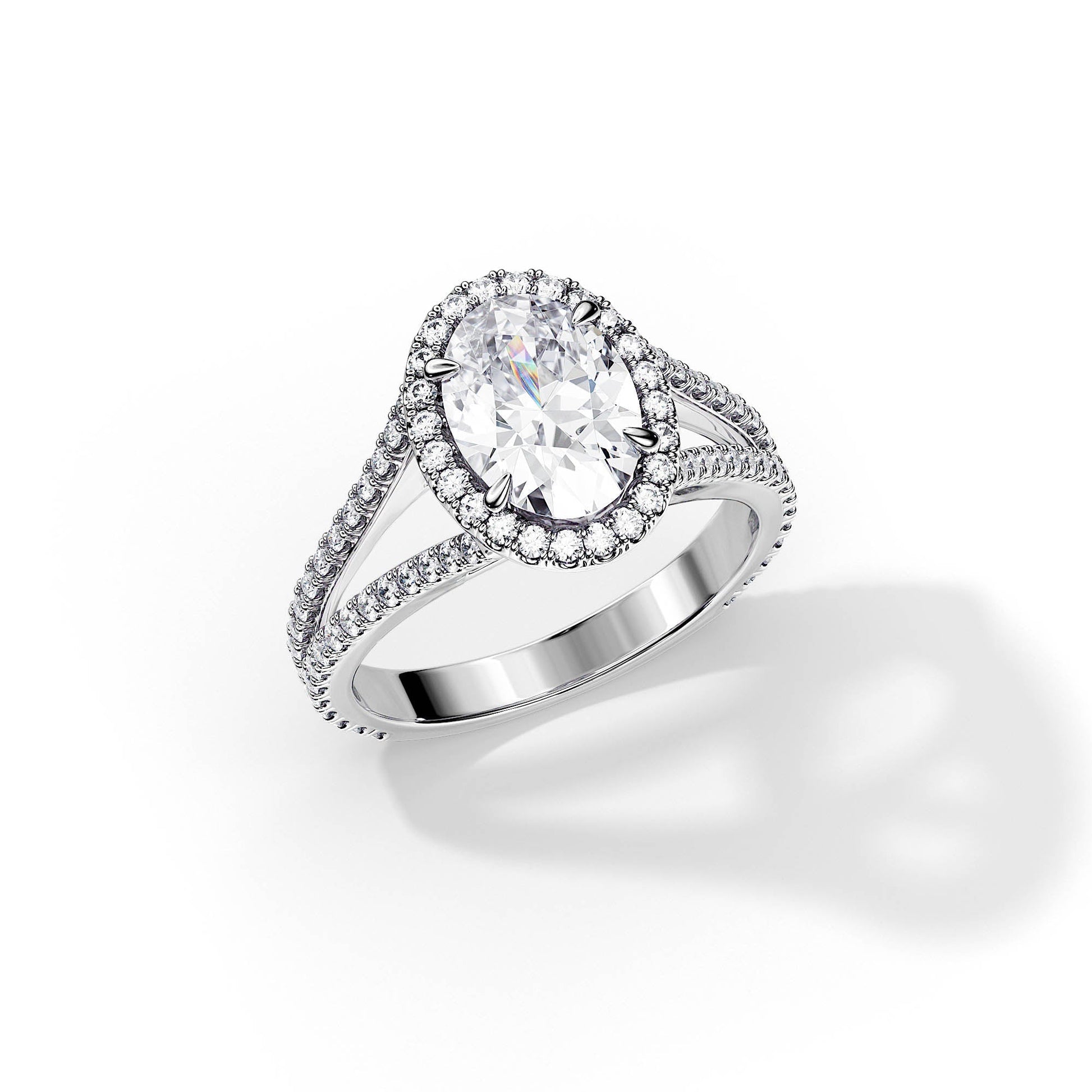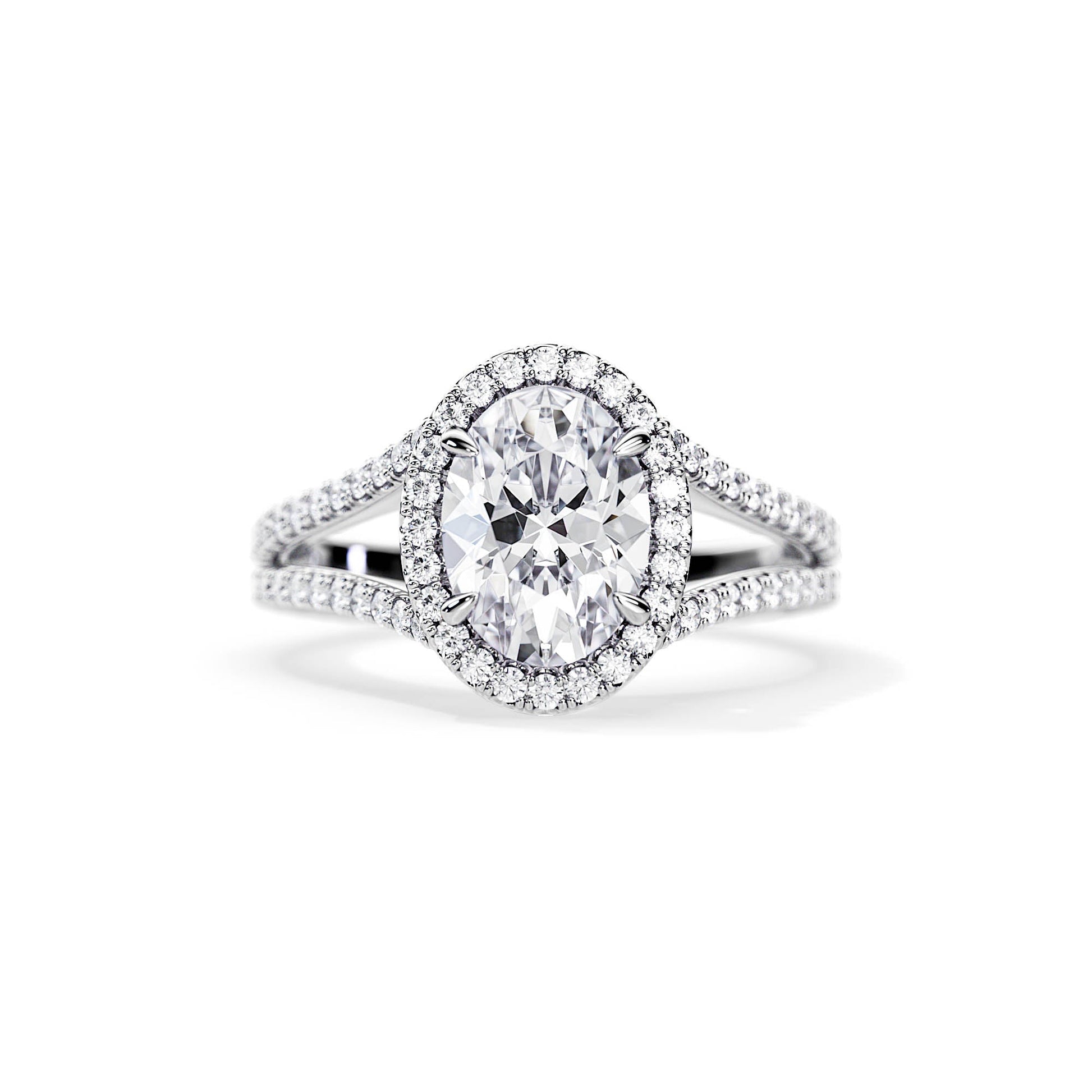 3.0 CT Oval Cut Moissanite Halo Split Shank Pave Engagement Ring