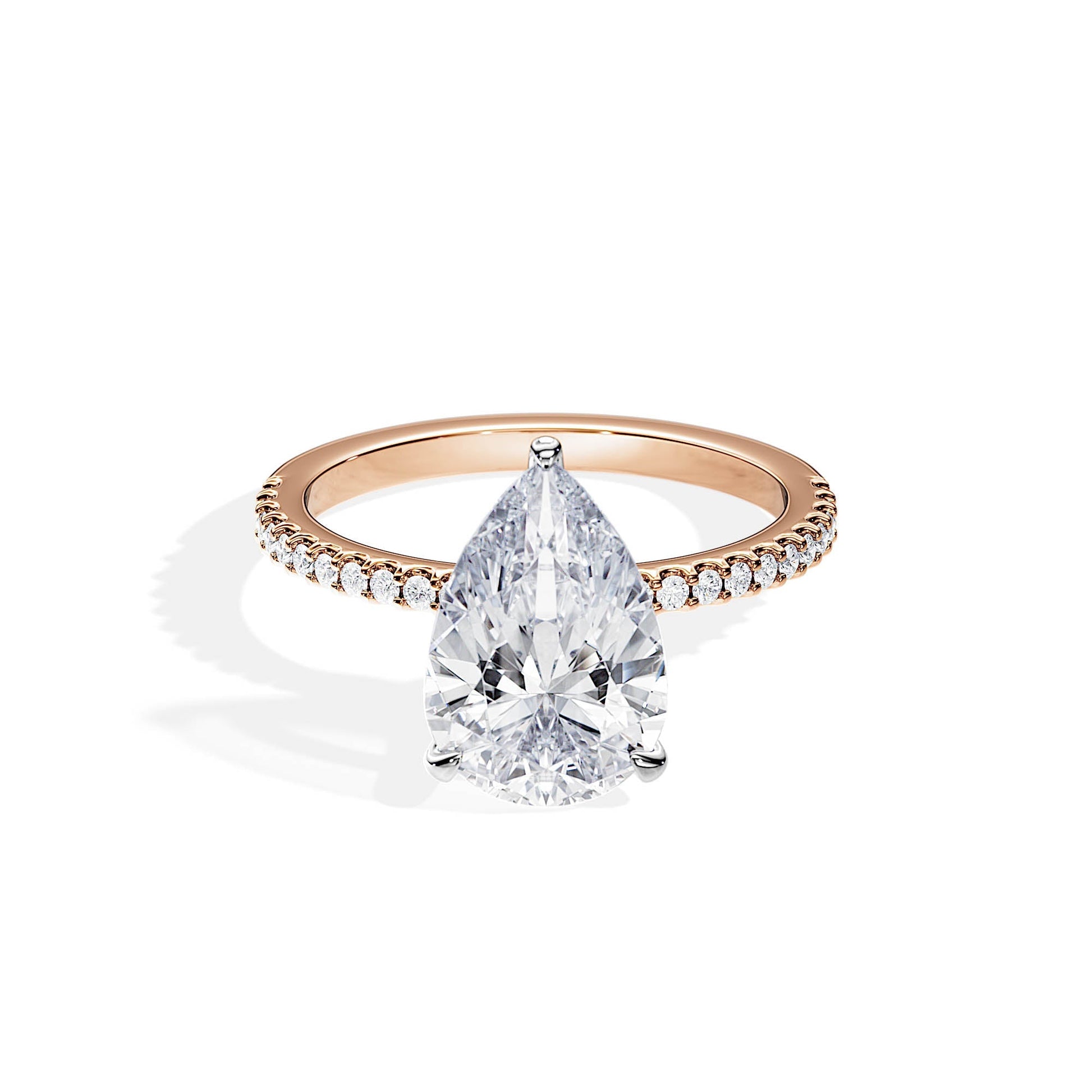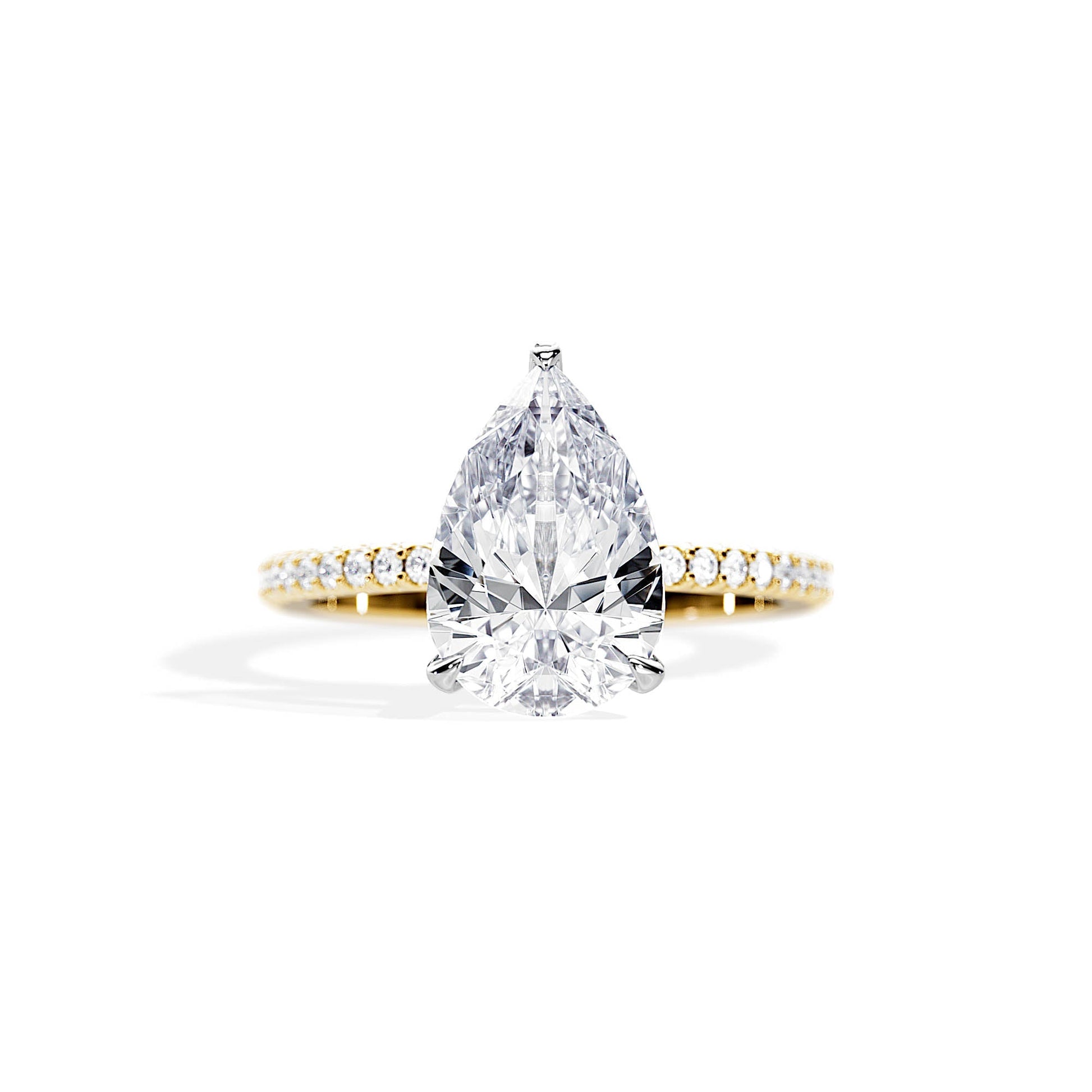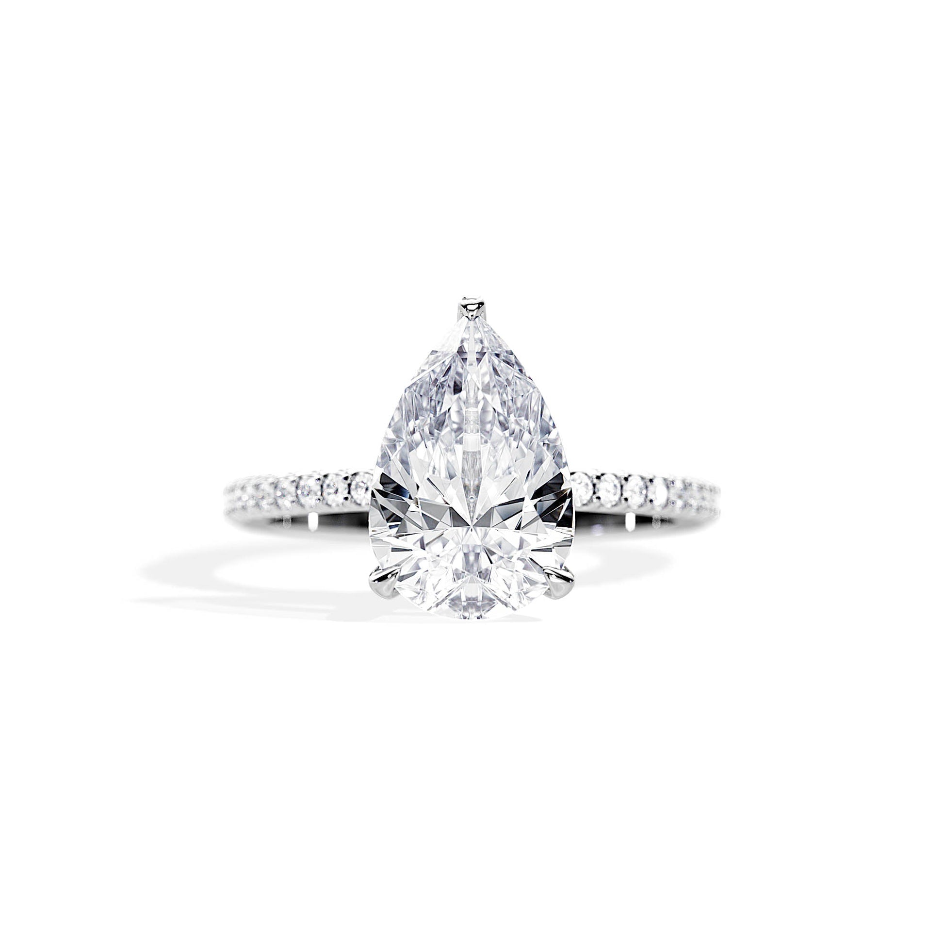 3.0 CT Pear Cut Moissanite Hidden Halo & Pave Setting Engagement Ring