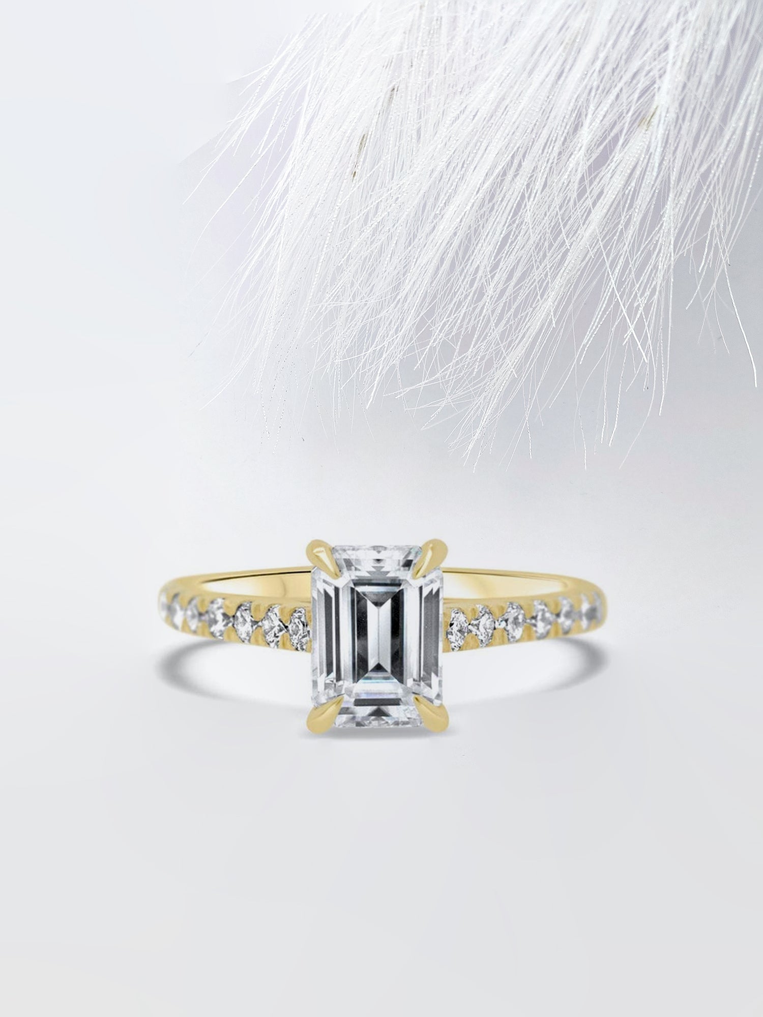 ✥ Introducing our enchanting 3.0CT Emerald Cut Pave Moissanite Diamond Engagement Ring. elegantly set in radiant yellow gold to symbolize your eternal bond. This stunning ring features a dazzling emerald-cut center stone adorned with a pave setting of shimmering moissanite diamonds. creating a mesmerizing display of sophistication and allure. Meticulously crafted to perfection. its timeless design embodies the depth of your commitment and the beauty of your love. Let the warmth of yellow gold accentuate the brilliance of this ring. promising a lifetime of cherished moments and enduring devotion. Illuminate your journey together with the captivating beauty of this stunning piece. marking the beginning of your forever.