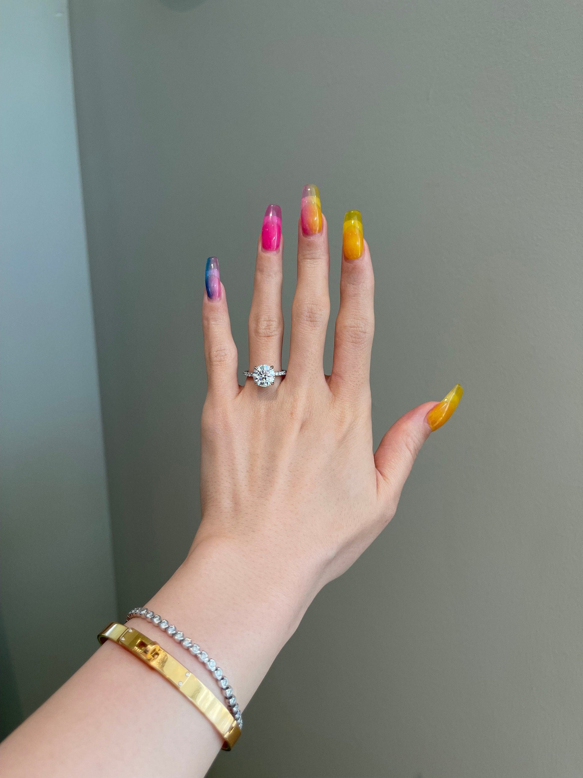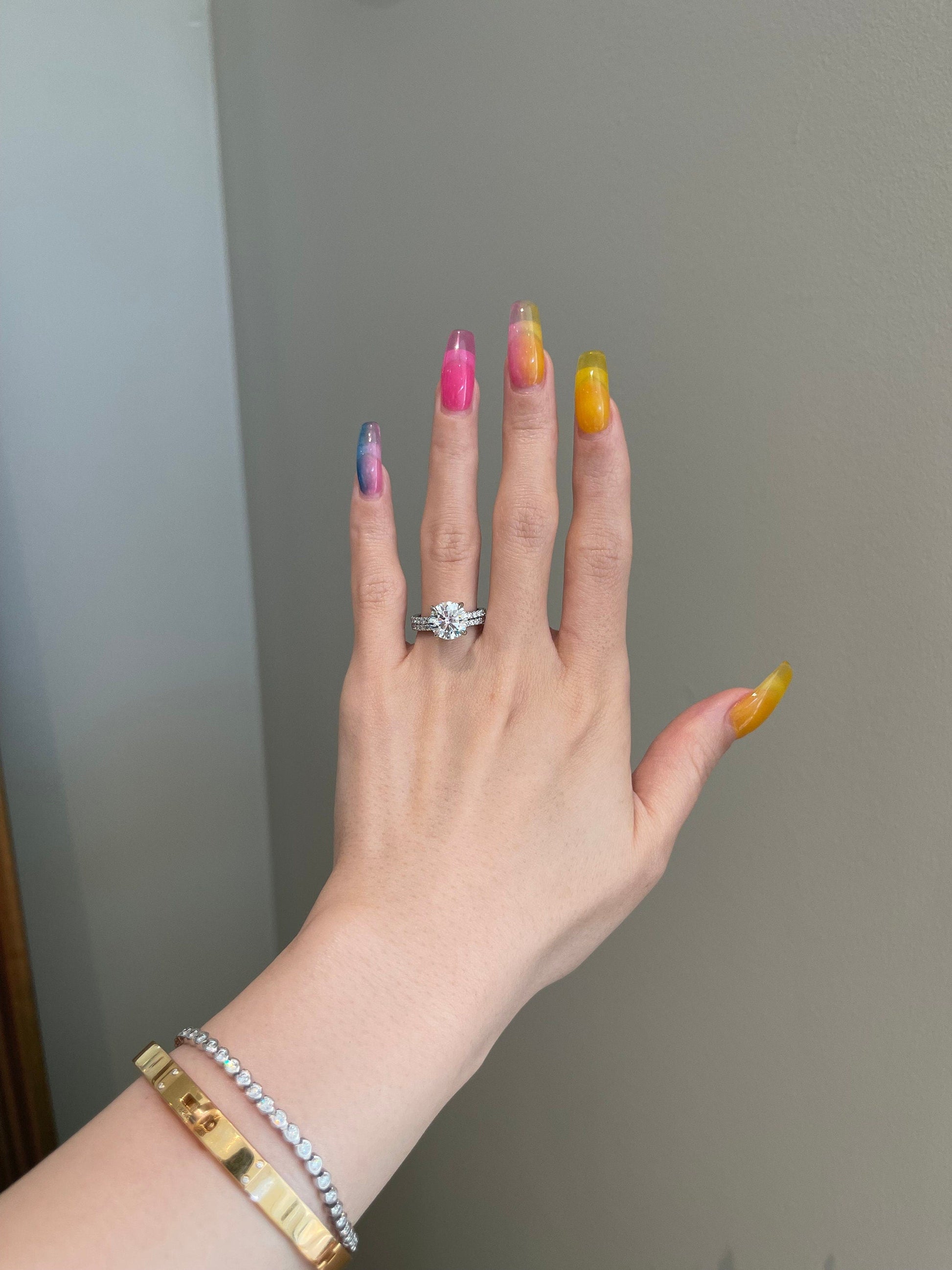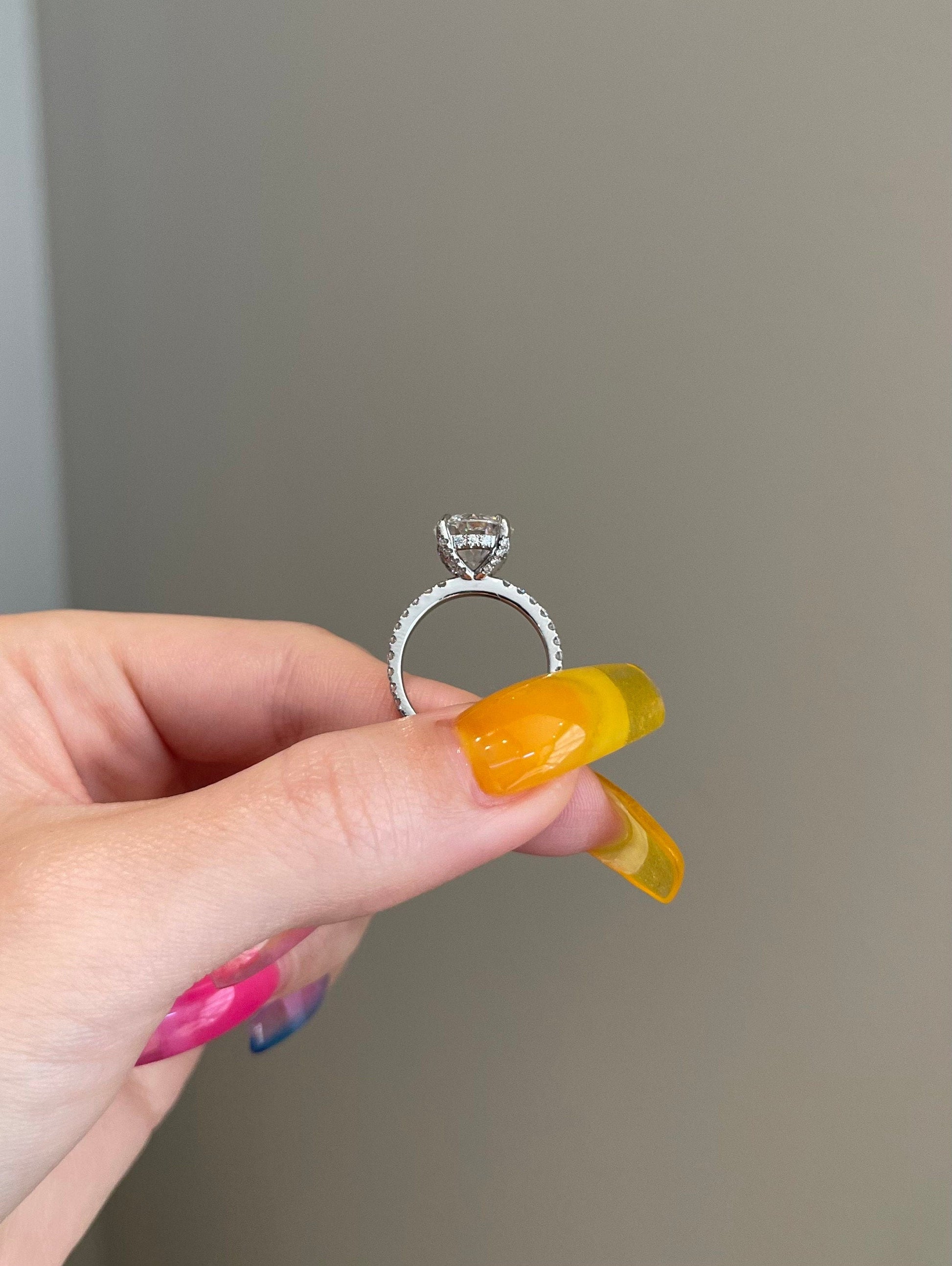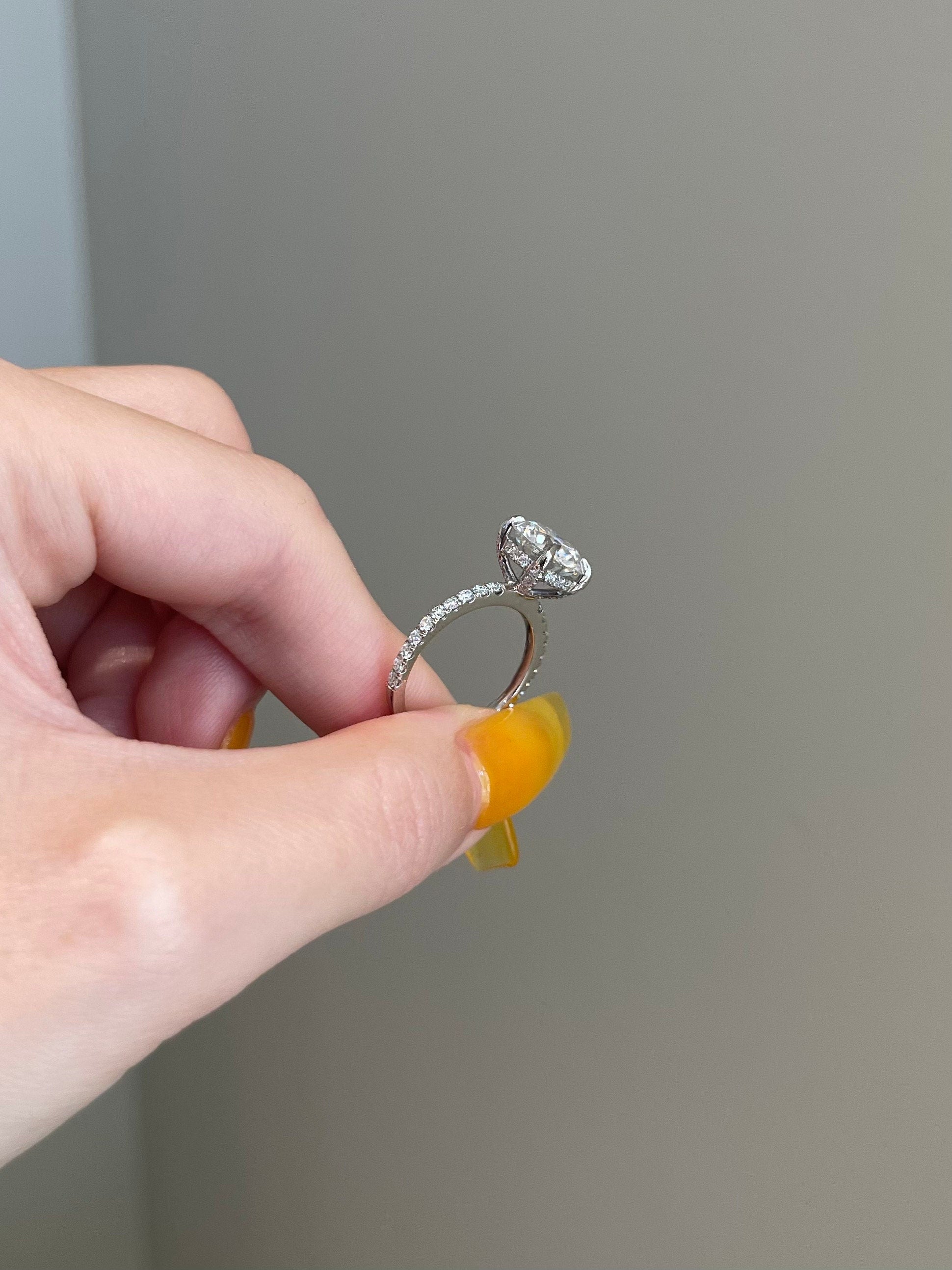 3.0ct Round Cut Hidden Halo Moissanite Diamond Pave Engagement Ring