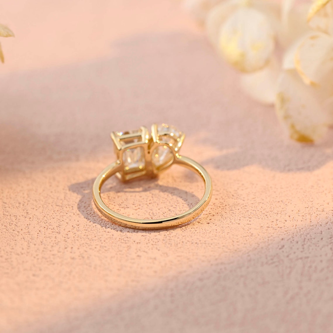 3.5 CT Emerald & Pear Moissanite Two Stone Engagement Ring