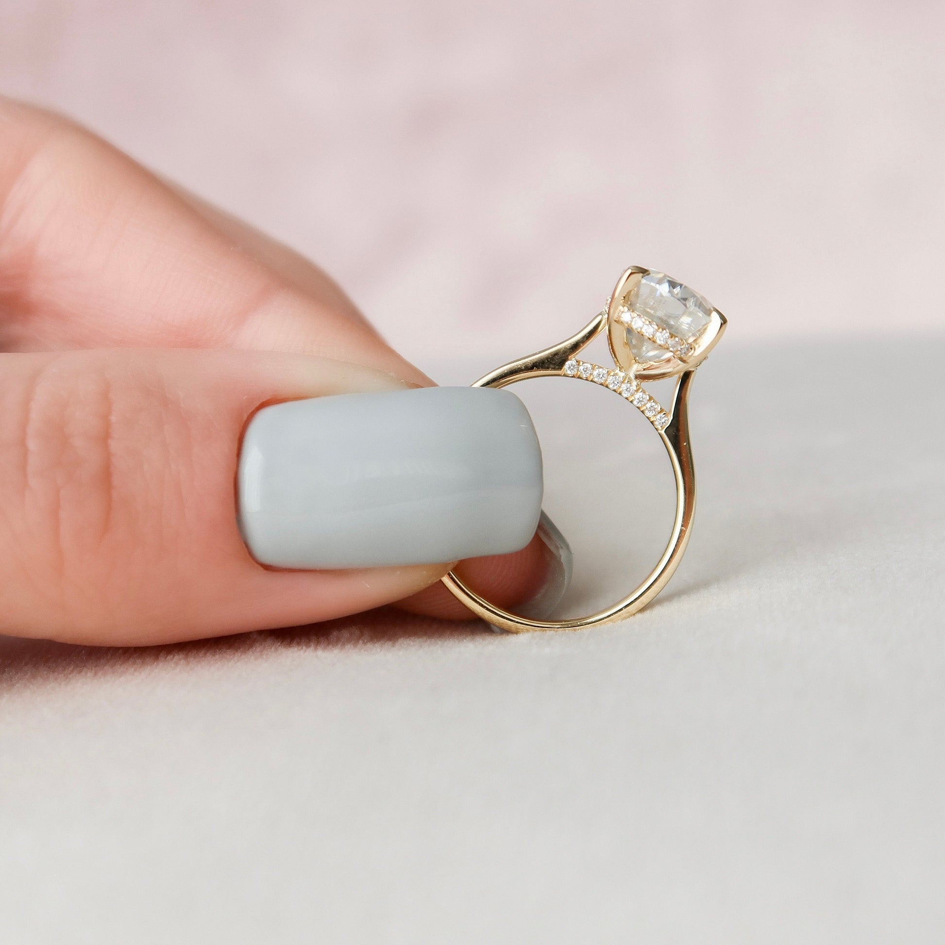 3.50CT Oval Cut Hidden Halo Moissanite Engagement Ring