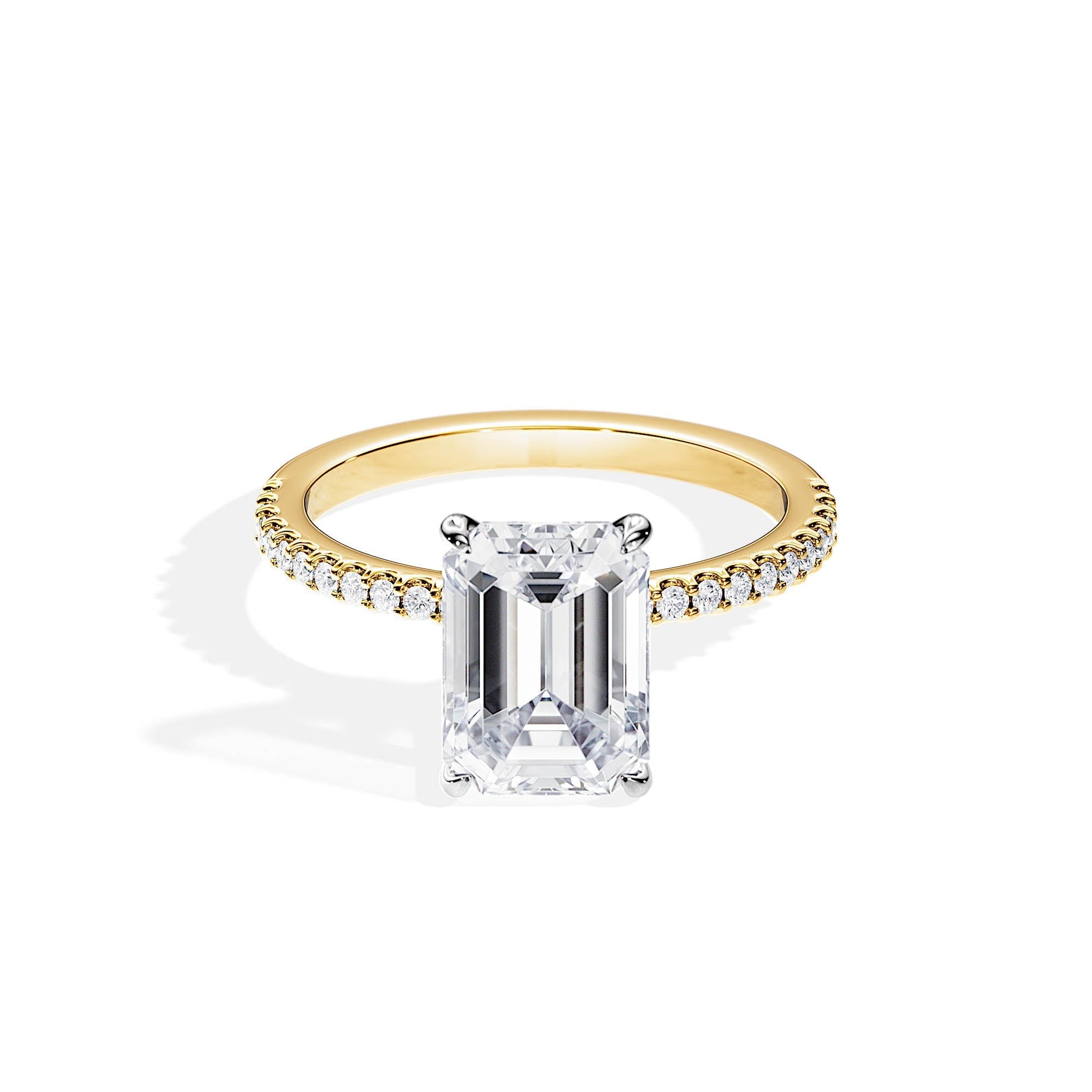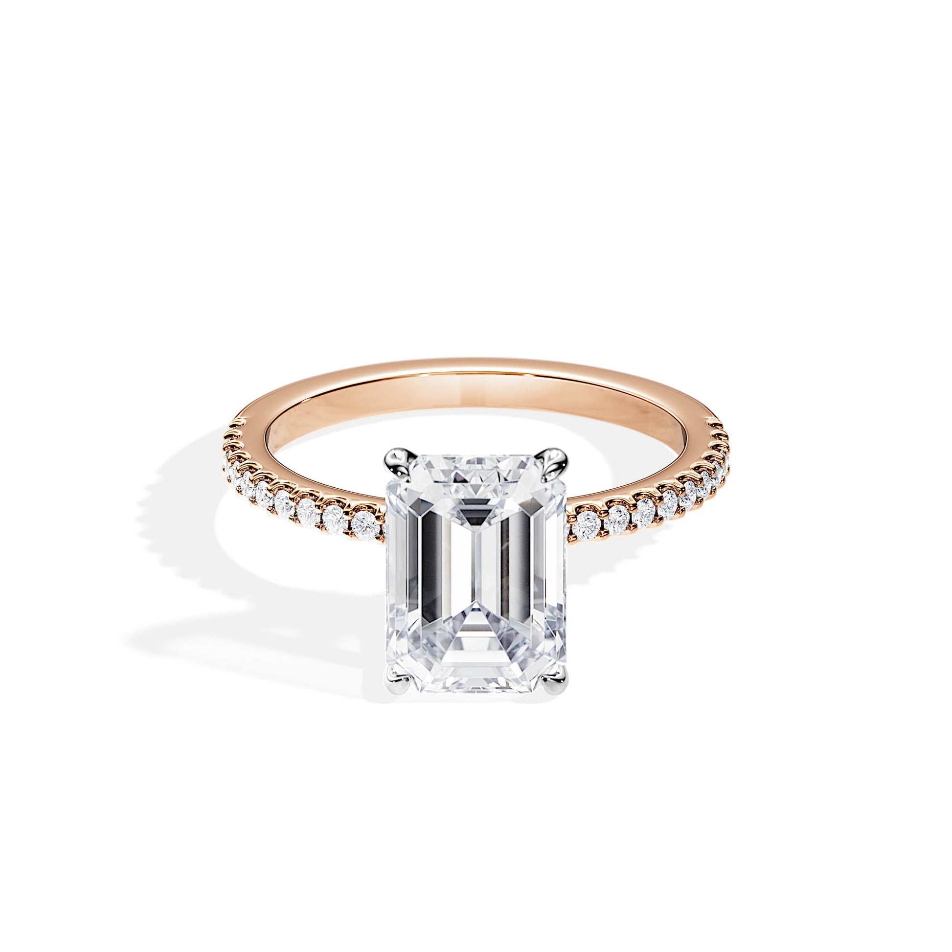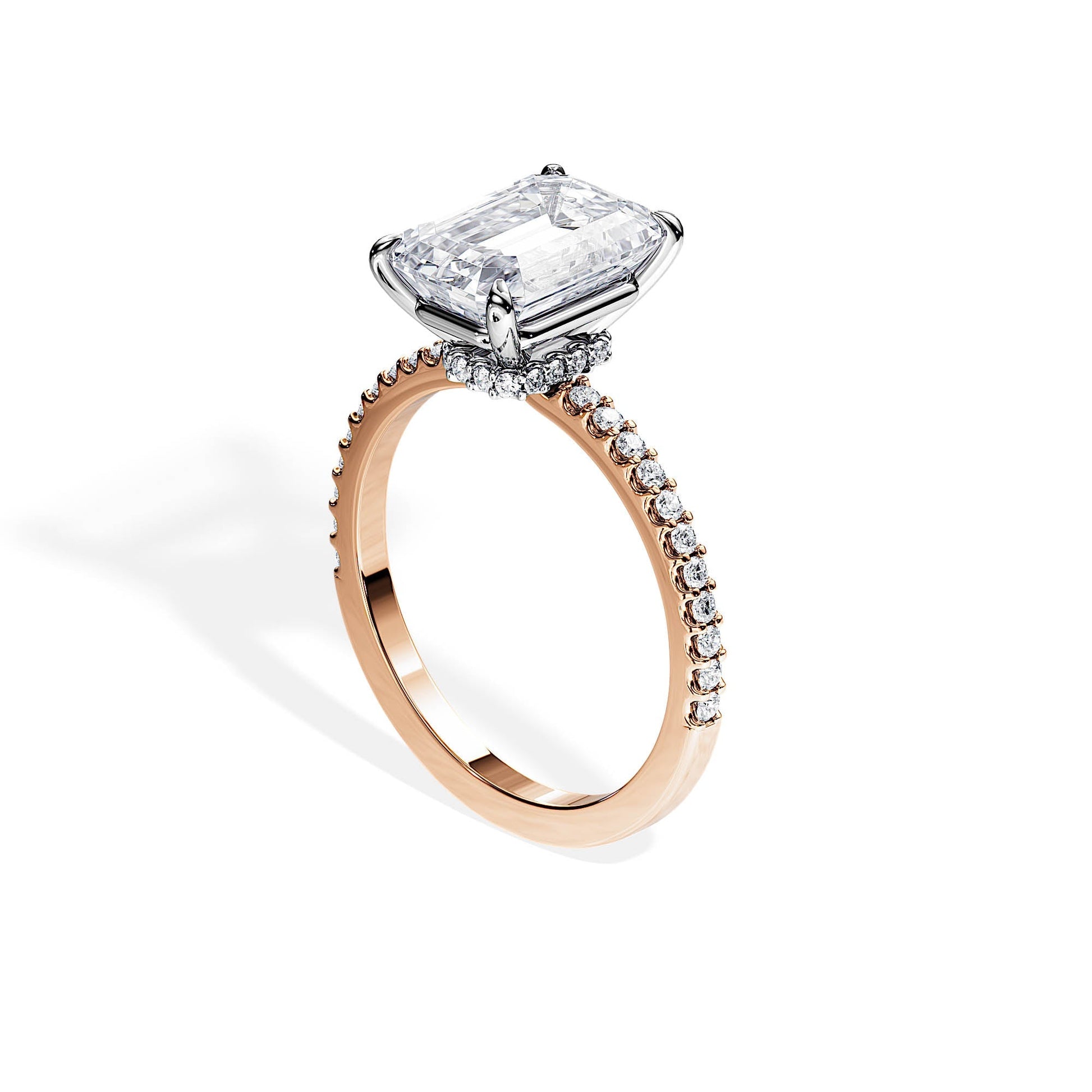 3.50 CT Emerald Cut Hidden Halo & Pave Setting Moissanite Engagement Ring