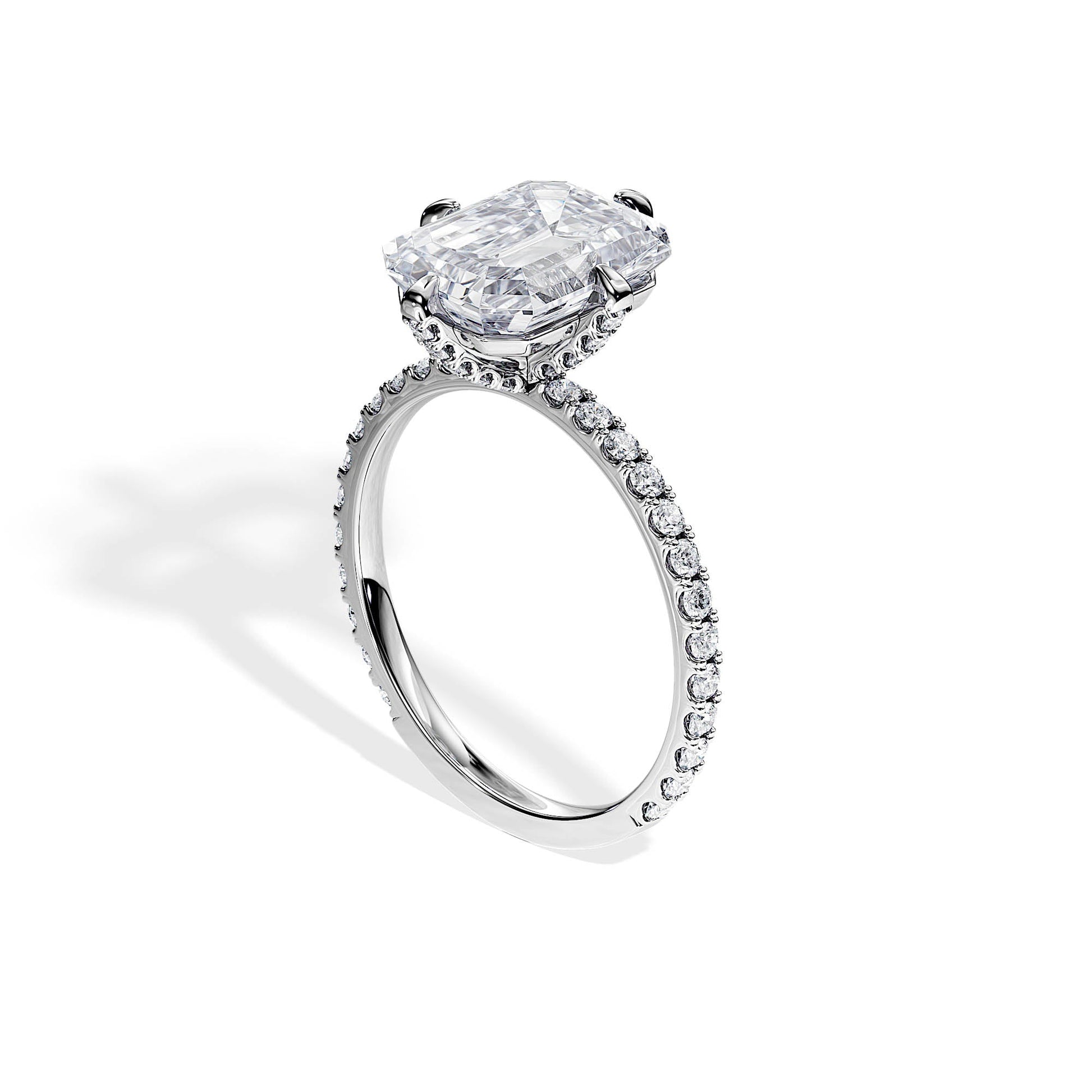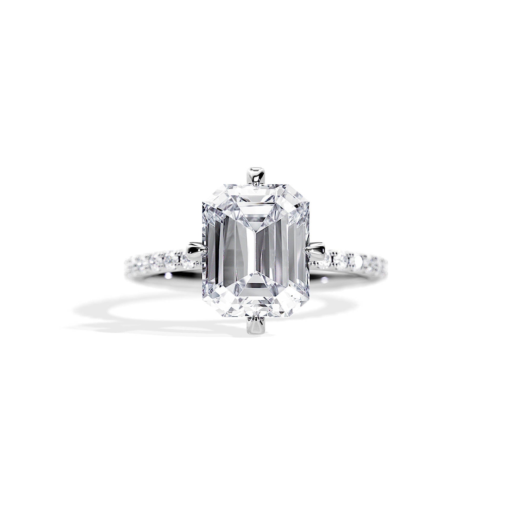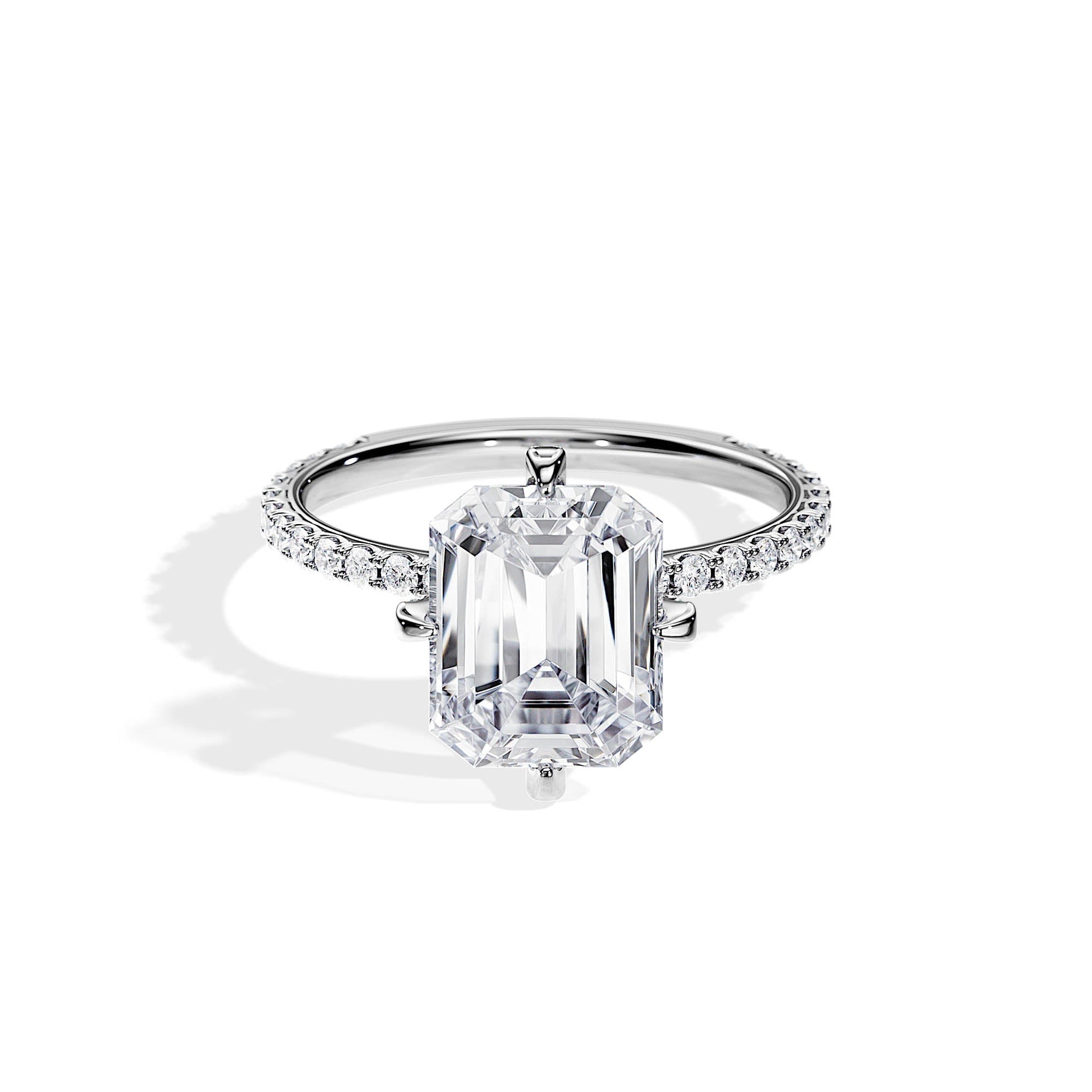 3.50 CT Emerald Moissanite Hidden Halo & Pave Engagement Ring