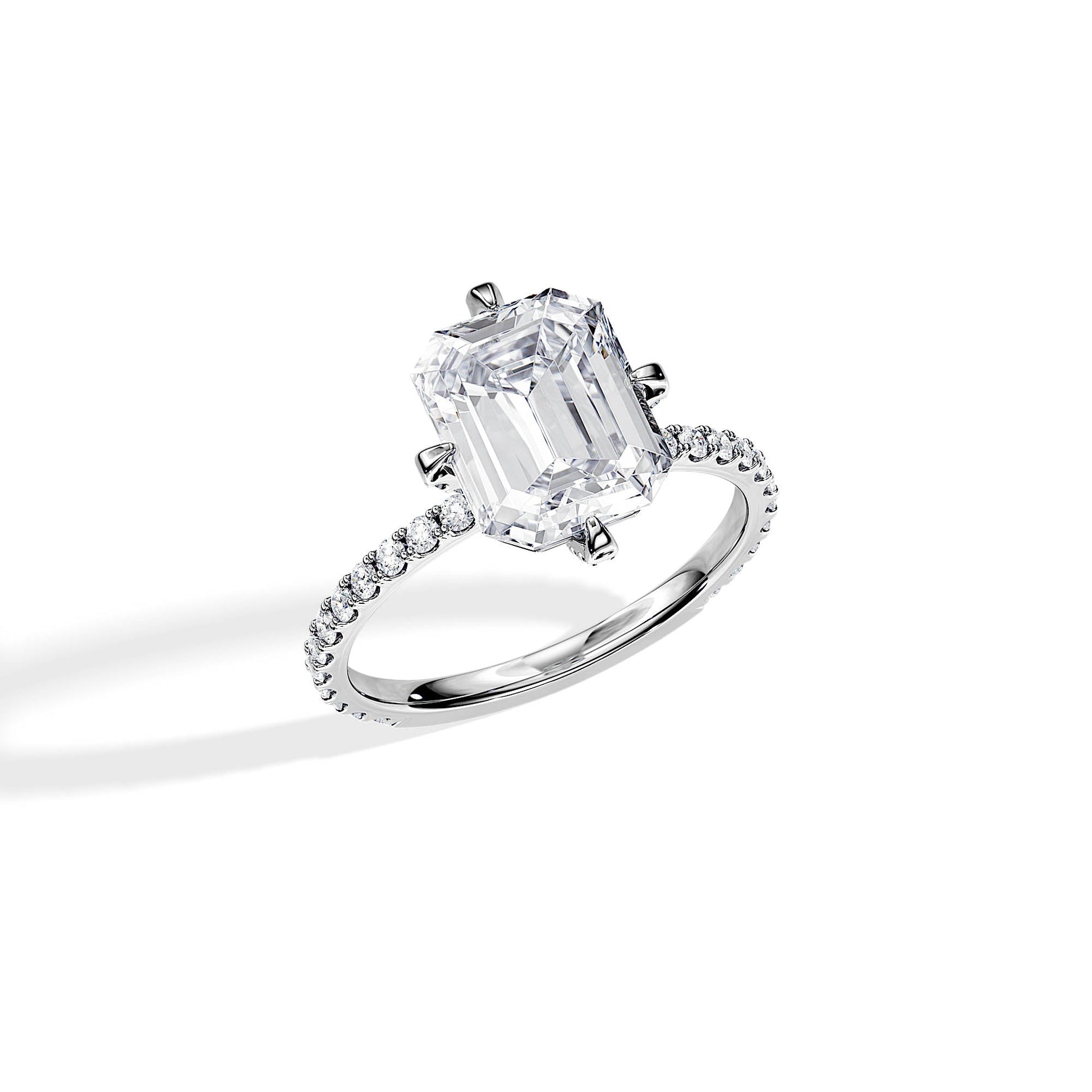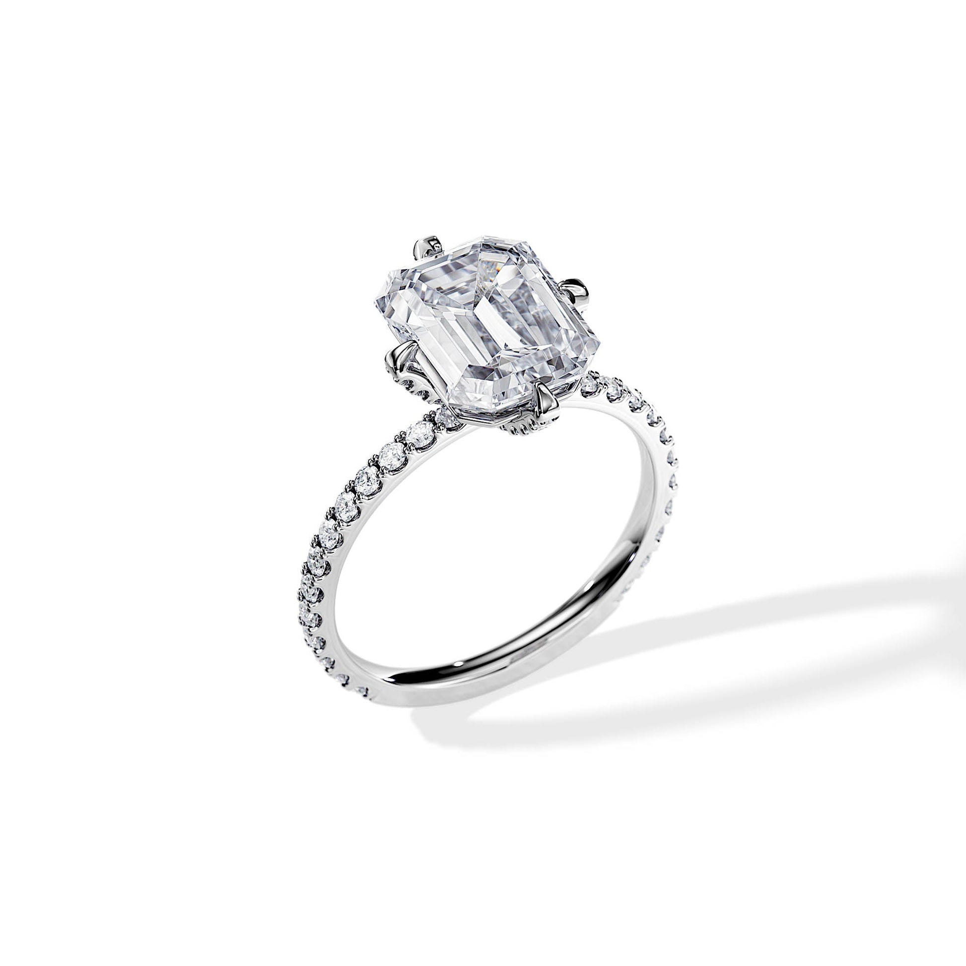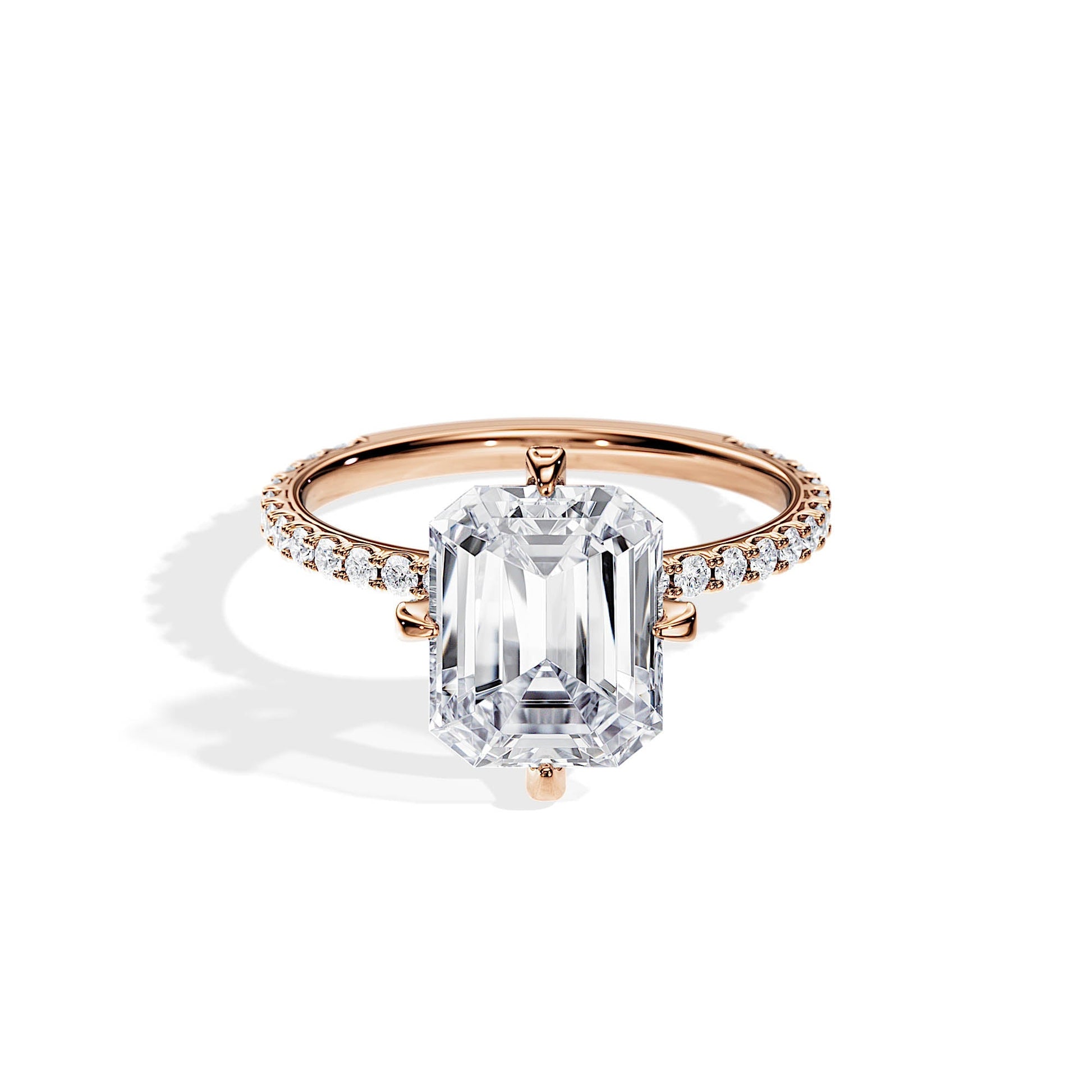 3.50 CT Emerald Moissanite Hidden Halo & Pave Engagement Ring