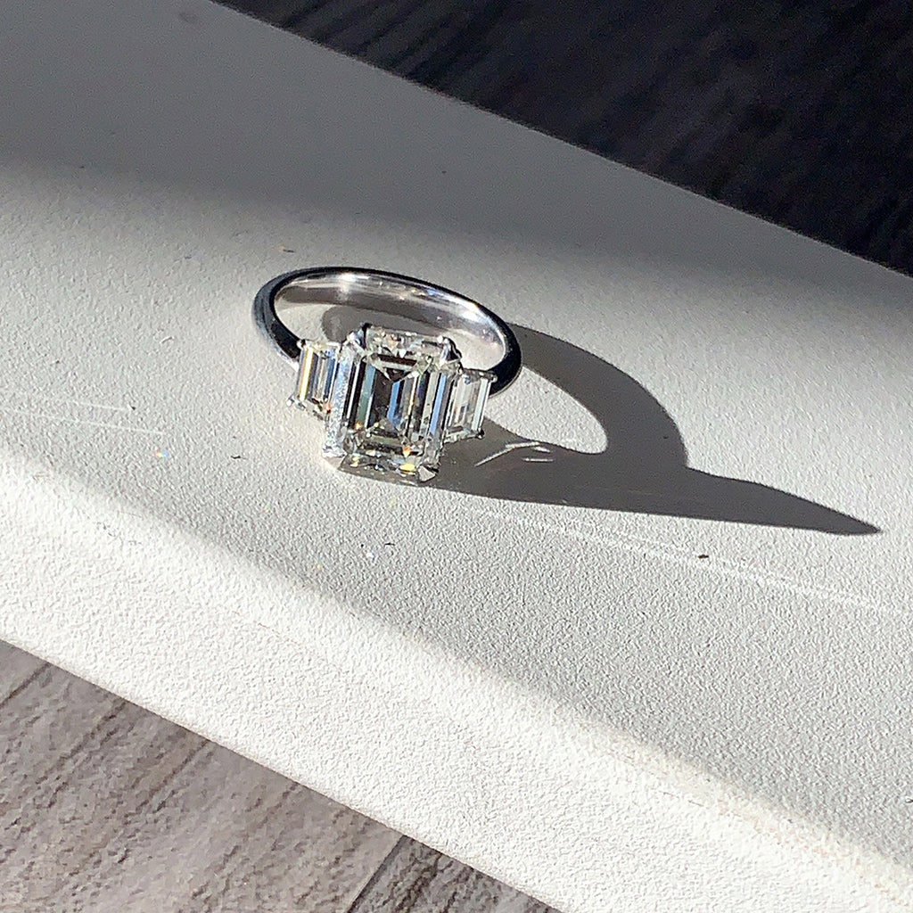3.57CT Emerald Cut 3 Stone Moissanite Diamond Engagement Ring