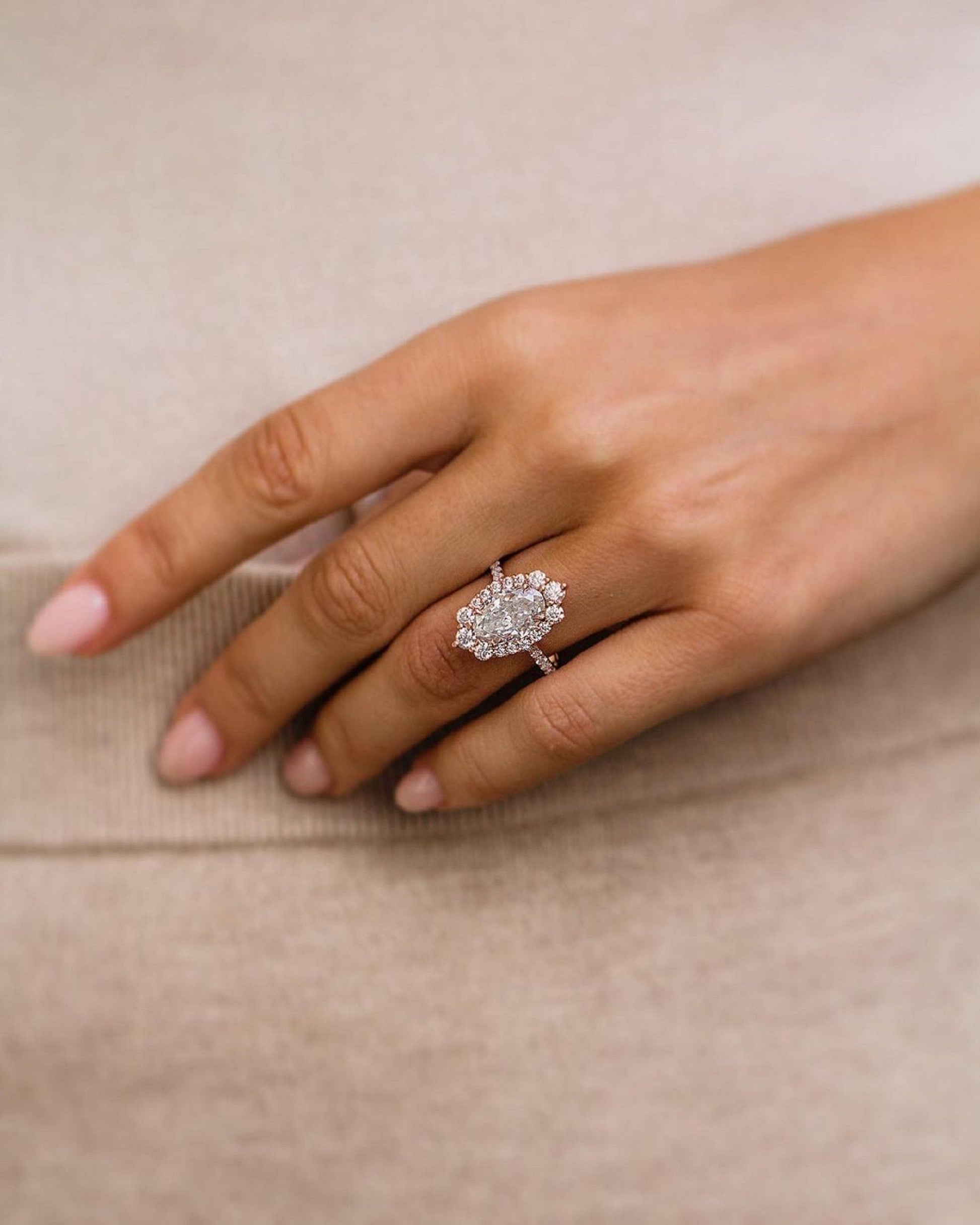 3.5ct Elongated Oval Cut Cluster Moissanite Diamond Engagement Ring For Women