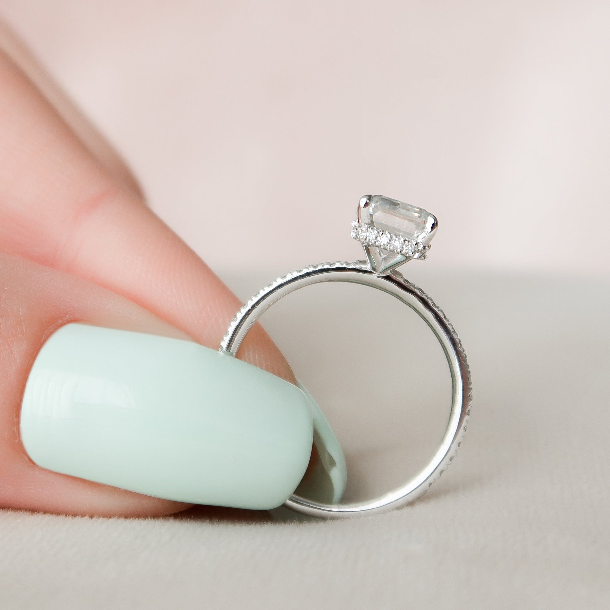 3.0CT Emerald Cut Hidden Halo Moissanite Diamond Engagement Ring