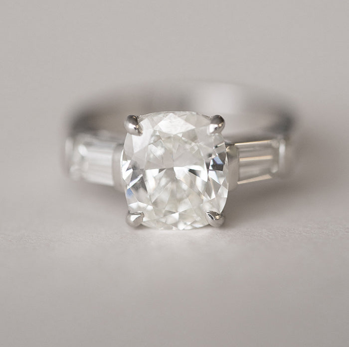 3.88CT Elongated Cushion 3 Stone Moissanite Diamond Engagement Ring