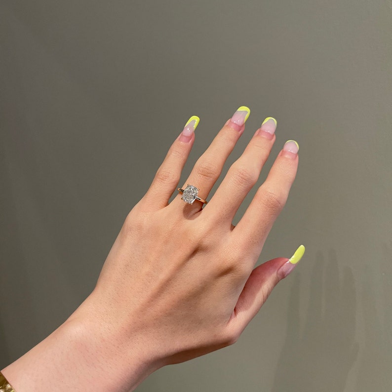 3.0CT Elongated Cushion Cut Diamond Hidden Halo Moissanite Engagement Ring