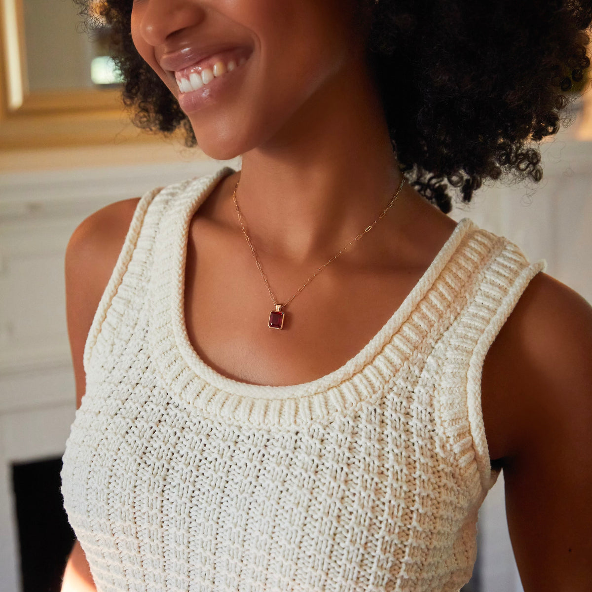 4.0CT Emerald Cut Ruby Moissanite July Birthstone Pendant Necklace
