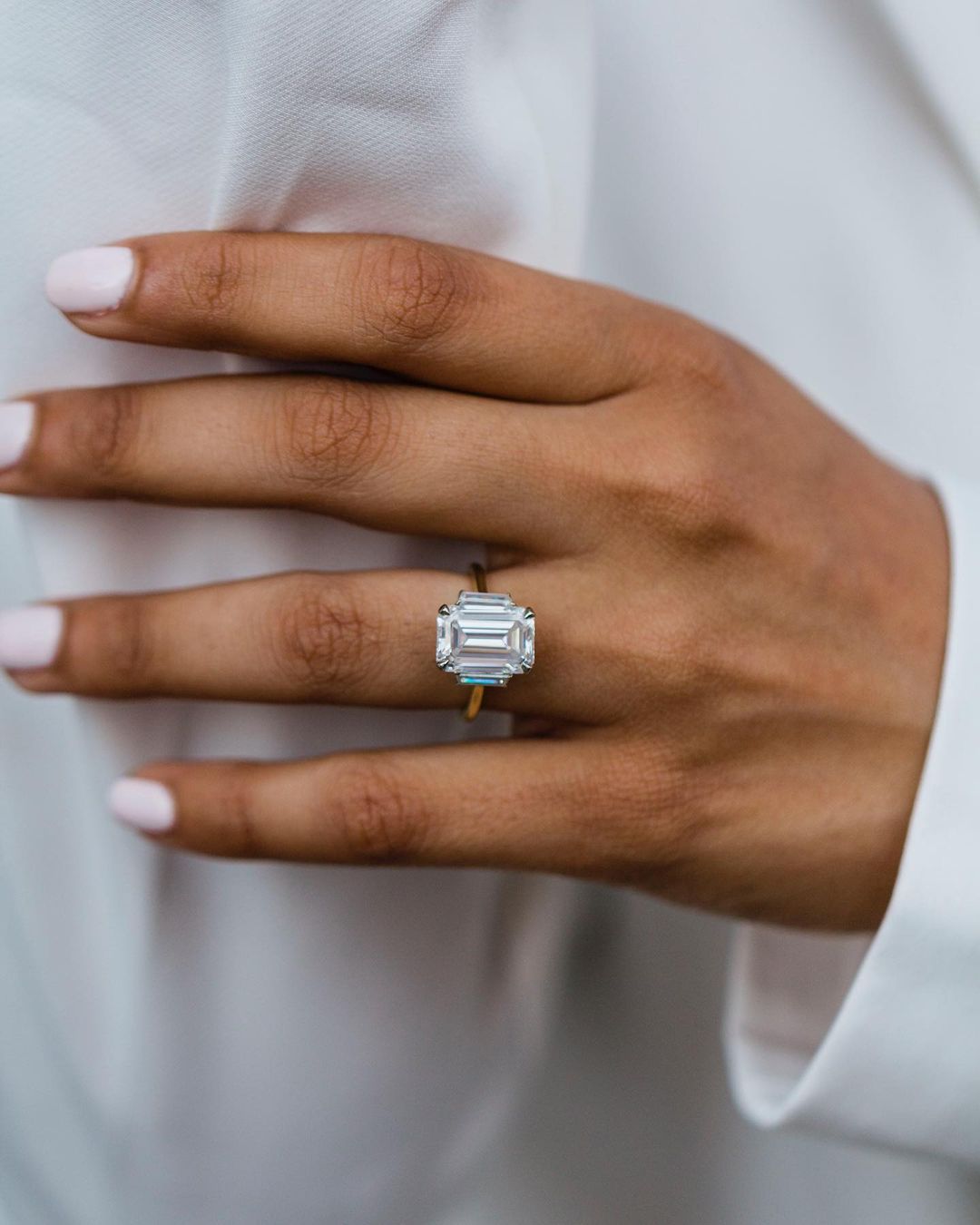 ✥ The Ring Shown in the Picture Holds a Beautiful 4.10 CT Emerald Cut Moissanite.