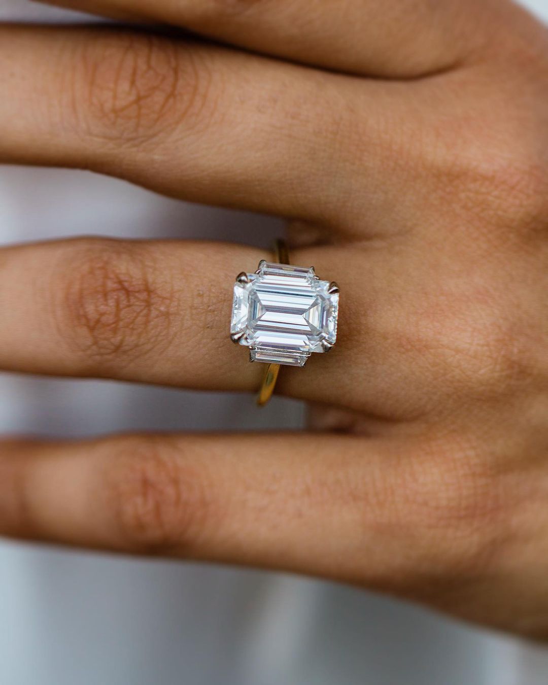 4.10 CT Emerald Three Stone Moissanite Engagement Ring