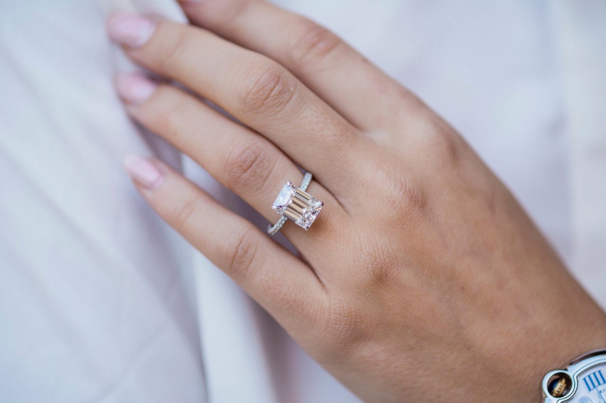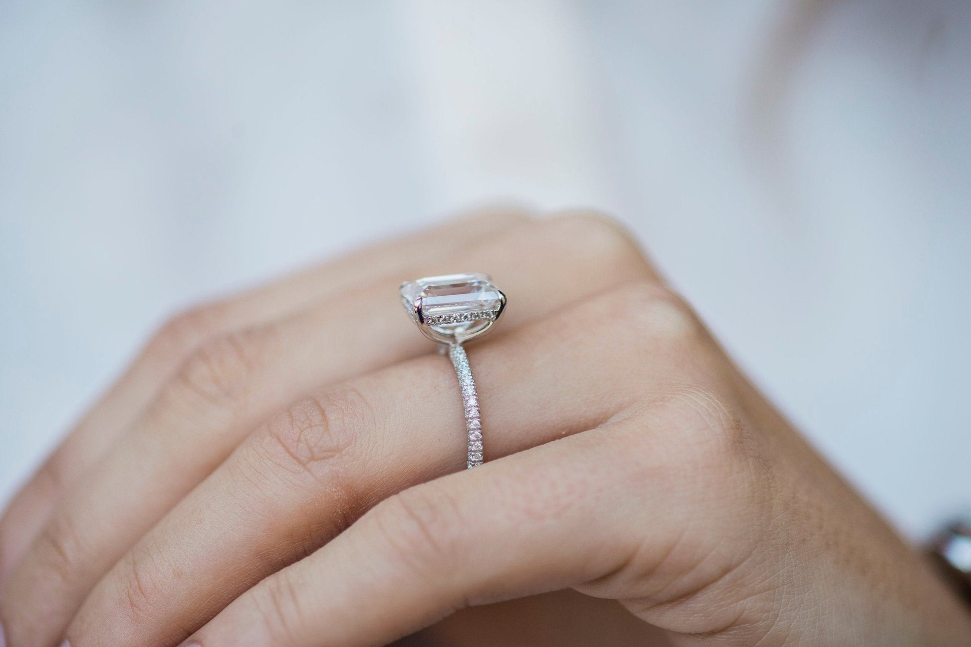 4.30CT Emerald Cut Hidden Halo Moissanite Engagement Ring