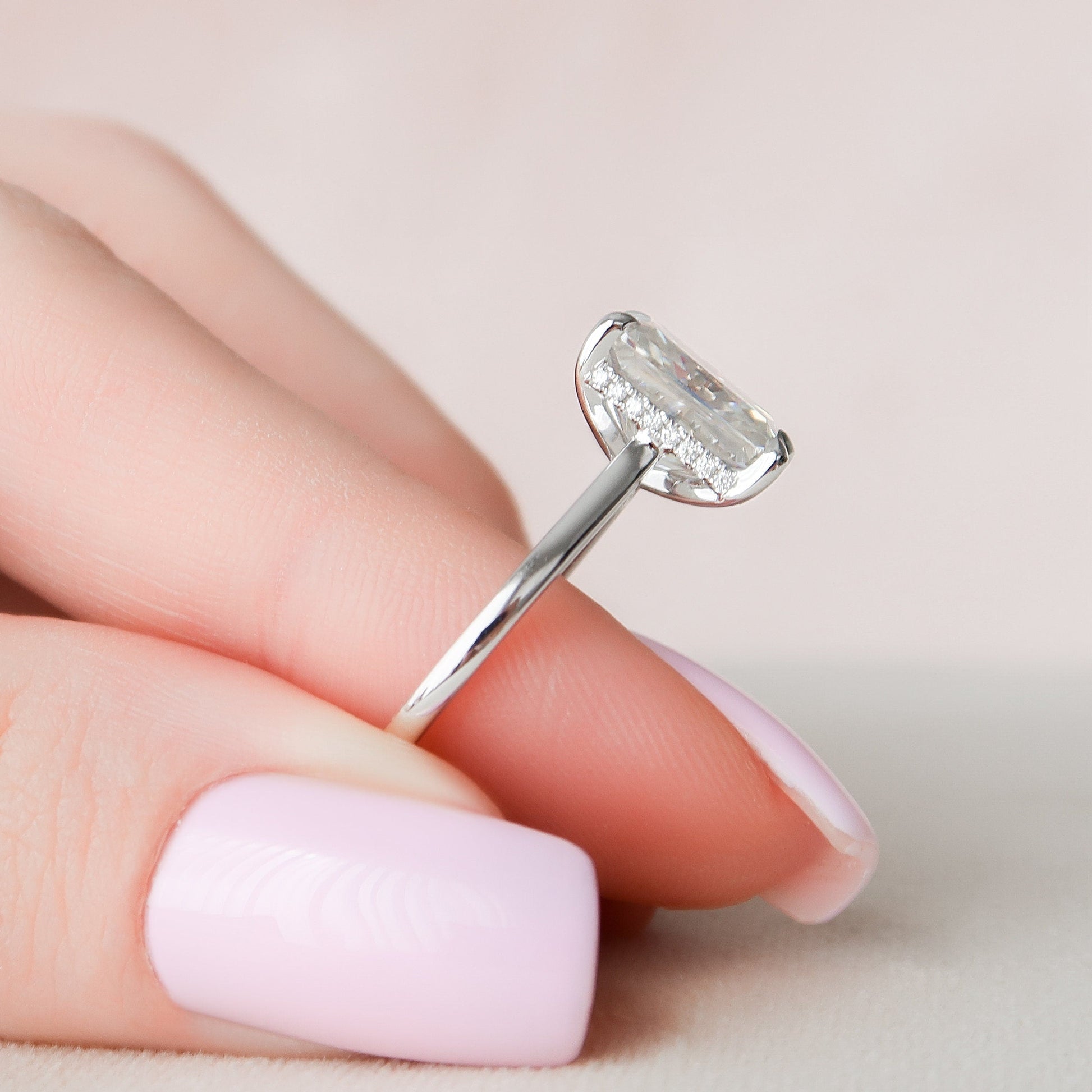 4.0CT Radiant Cut Hidden Halo Moissanite Engagement Ring