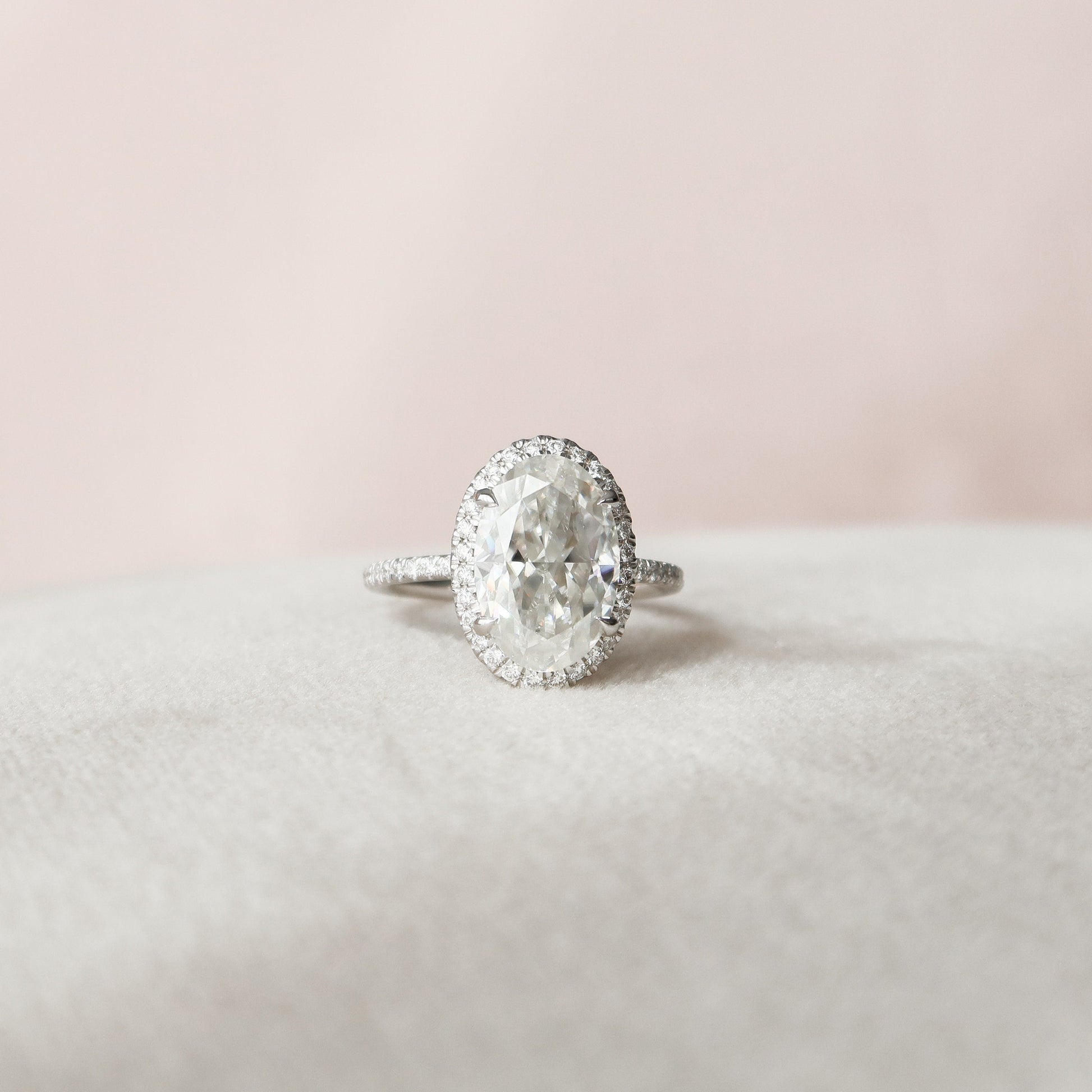 3.50CT Elongated Oval Cut Halo Moissanite Diamond Pave Engagement Ring